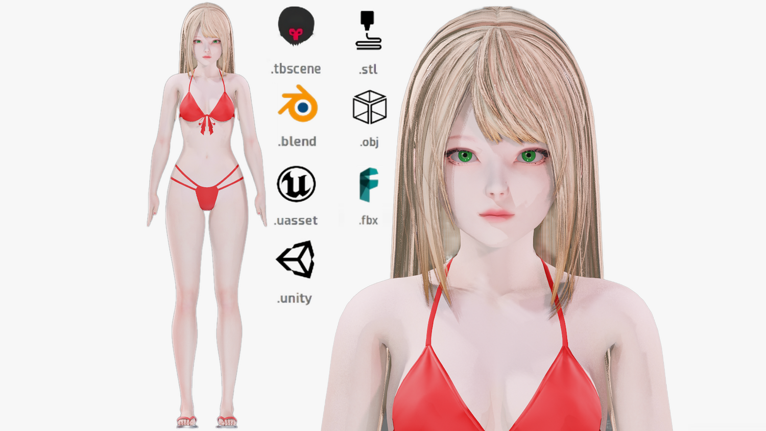 Bikini clothes 0020 - Rig - Unreal - Unity - Blender - Animated - Realistic Female Character