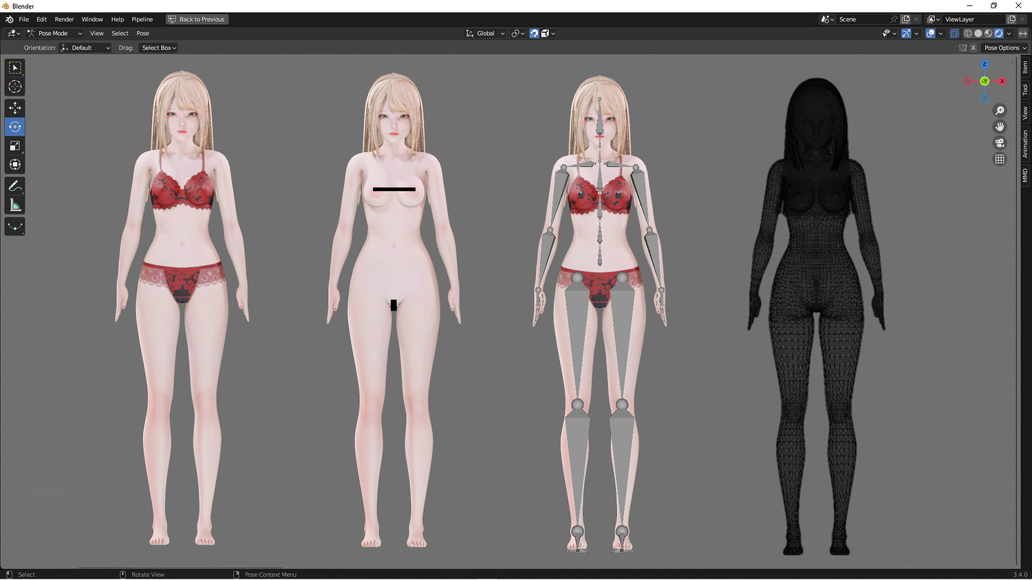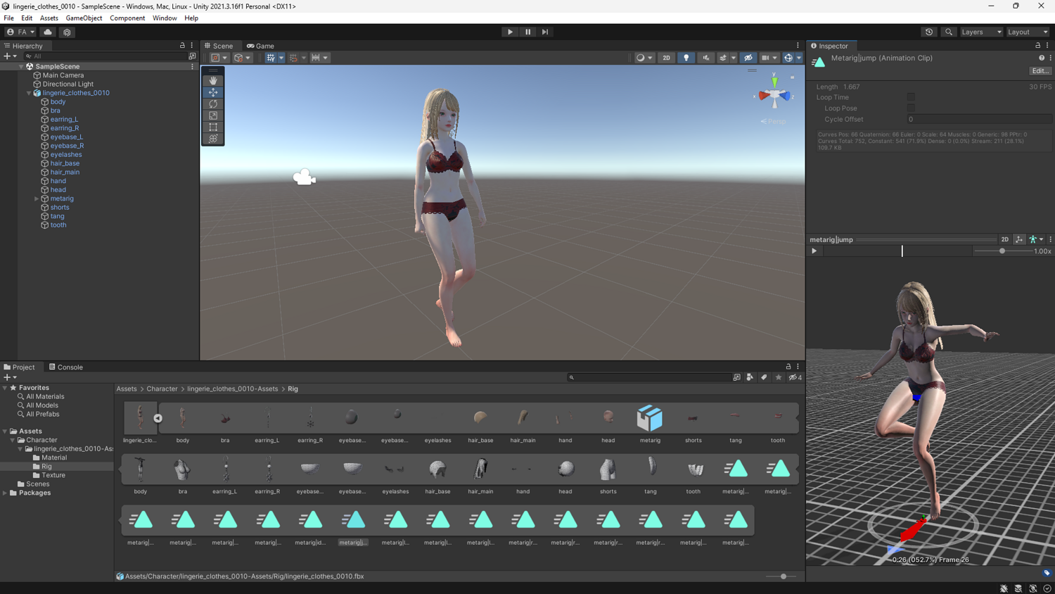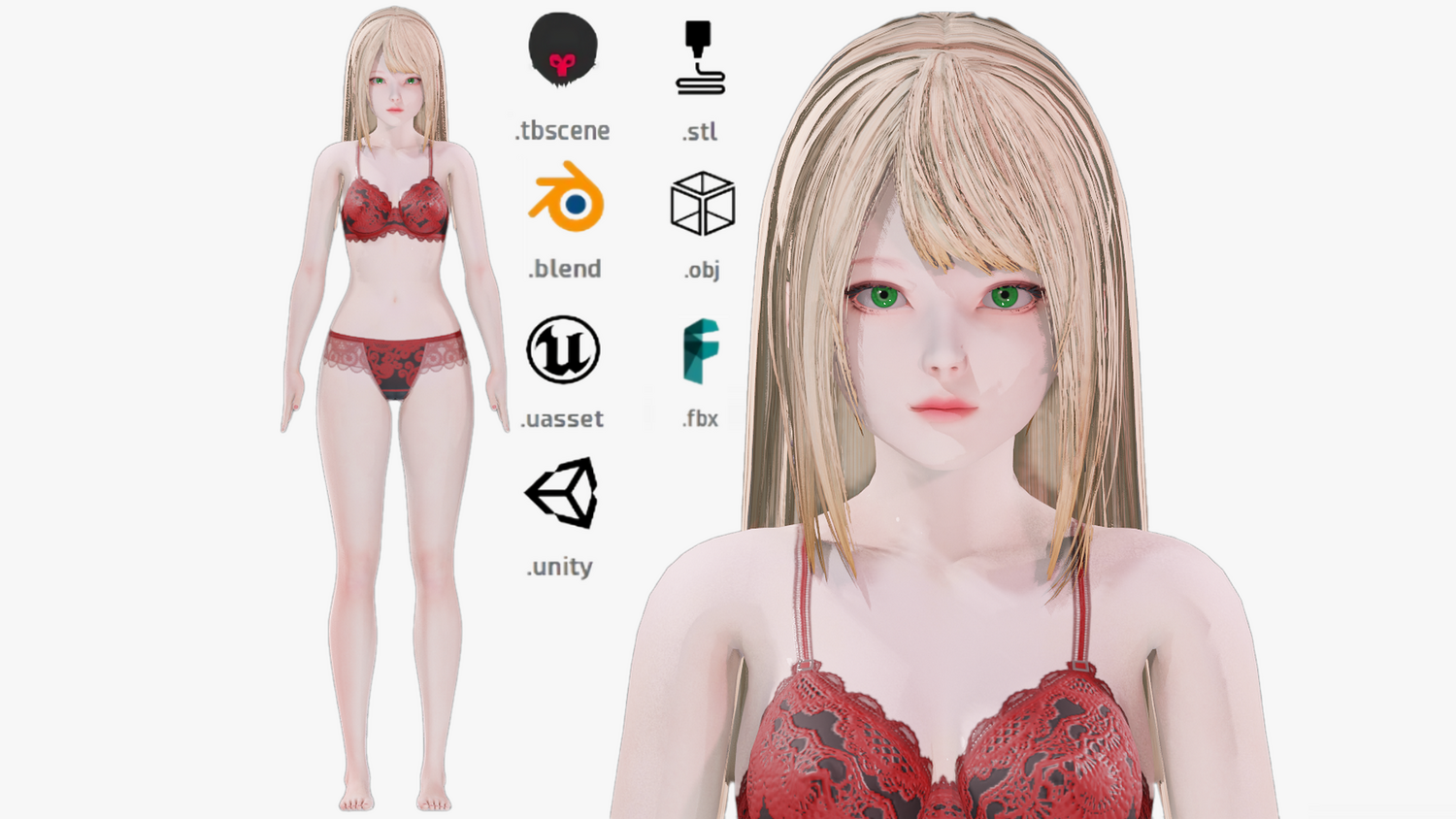 Lingerie clothes 0010 - Rigged -Unreal - Unity - Blender - Animated - Realistic Female Character