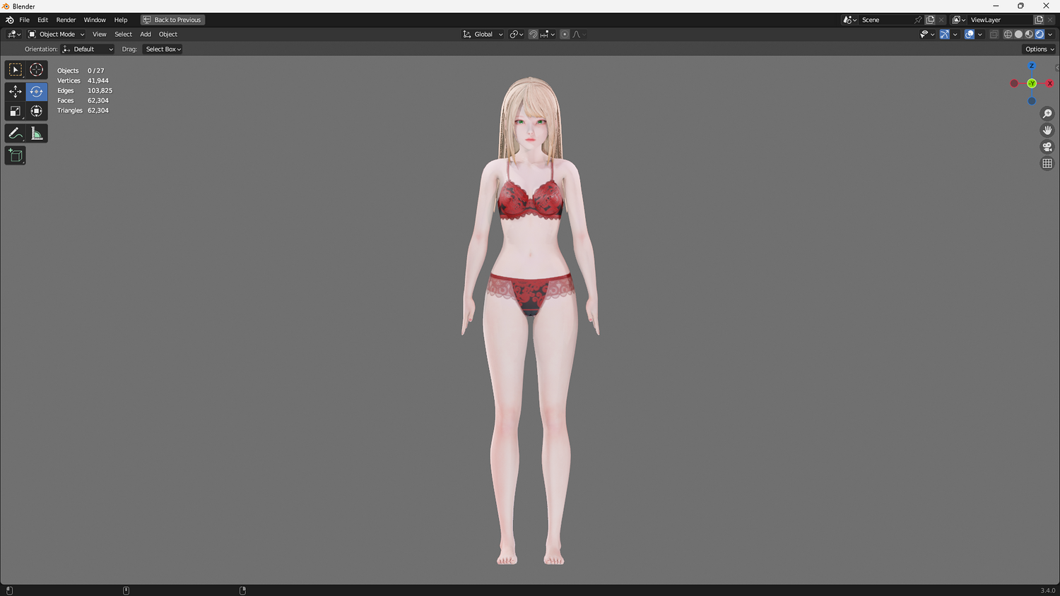 Polycount: Vertices: 41.944 Edges: 103.825 Faces: 62.304 Triangles: 62.304