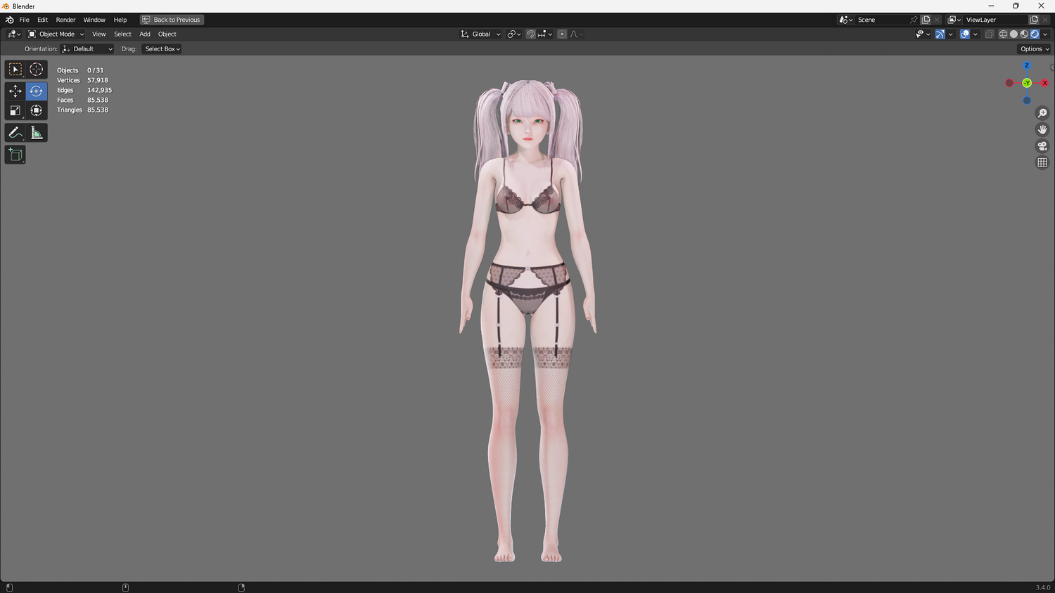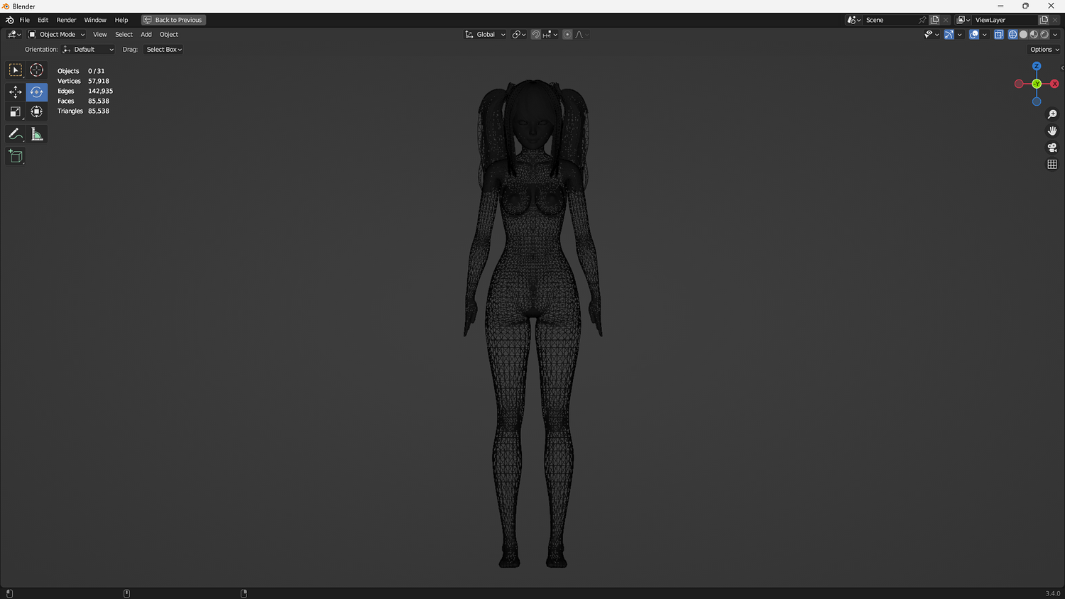 Polycount: Vertices: 57.918 Edges: 142.935 Faces: 85.538 Triangles: 85.538