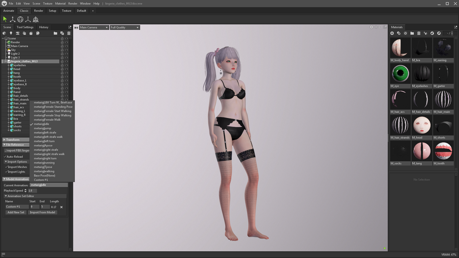 -UV mapping: Yes -Rigged: Yes -Animated: Yes -illumination: 3D lights. -Number of materials: 17 -Number of meshes/prefabs: 20 -Number of textures: 67 -Number of animation: 17 -Texture dimensions: Maximum texture resolution 4096x4096 -Guides: Animation - Cinematic - Shape Keys