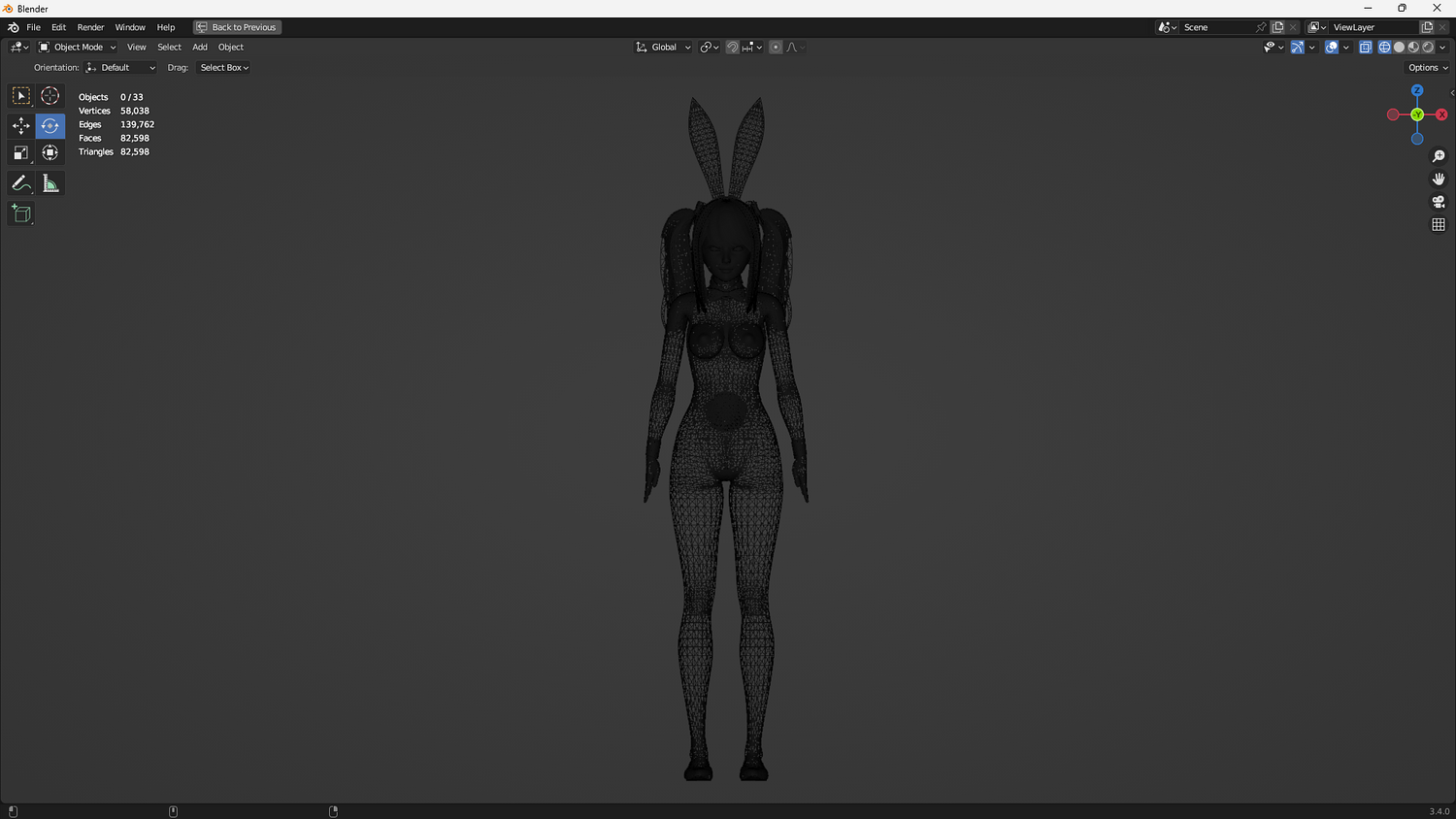 Polycount: Vertices: 58.038 Edges: 139.762 Faces: 82.598 Triangles: 82.598