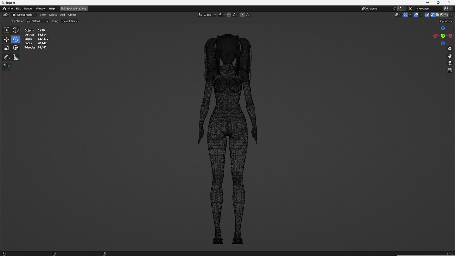 Polycount: Vertices: 54.514 Edges: 132.417 Faces: 78.442 Triangles: 78.442