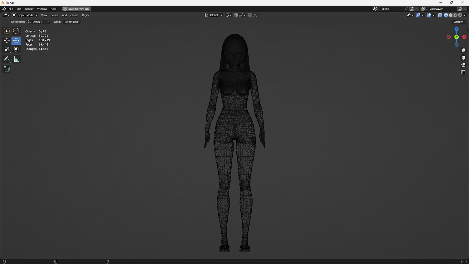 Polycount: Vertices: 39.724 Edges: 100.779 Faces: 61.446 Triangles: 61.446