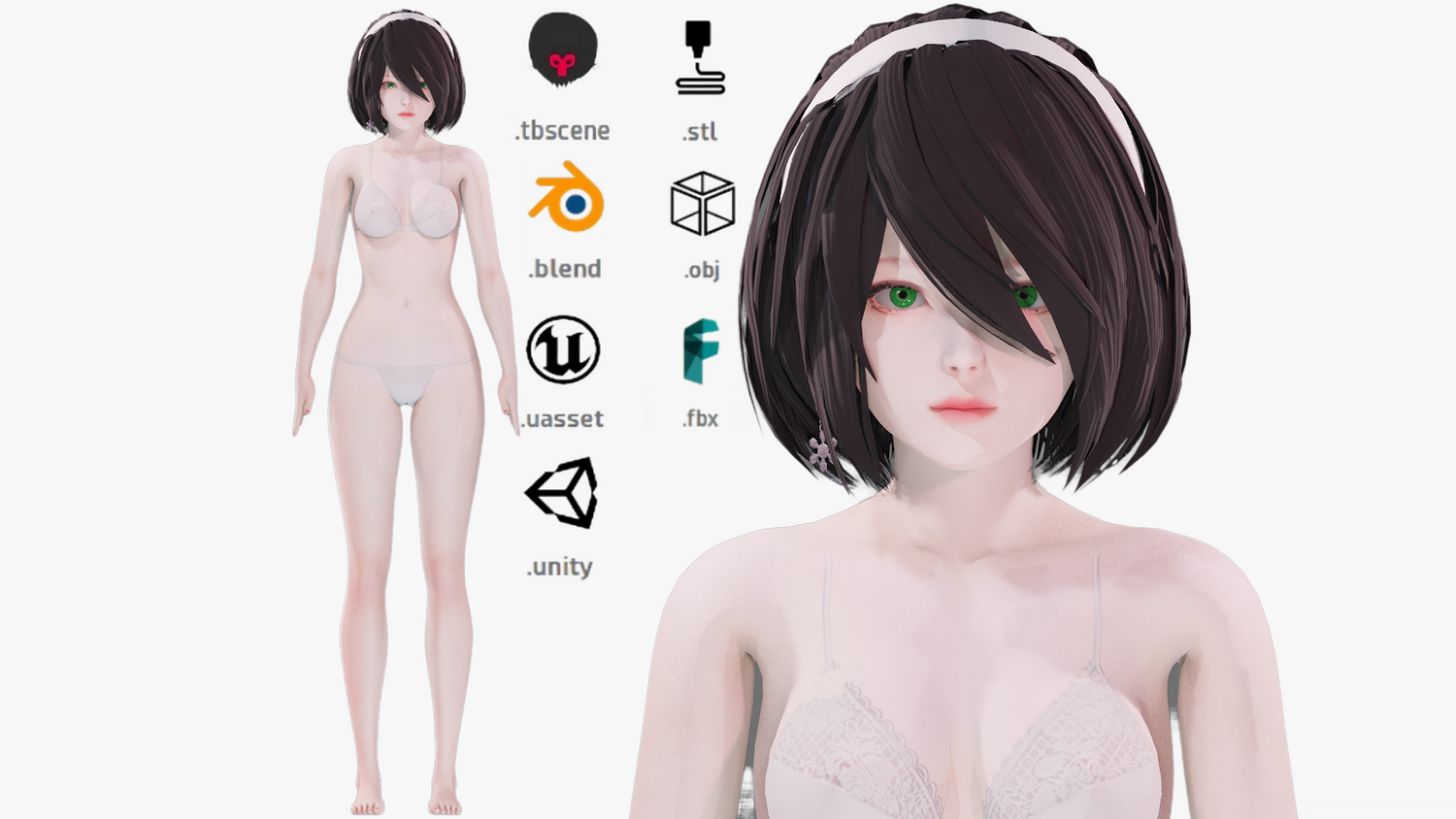 Lingerie clothes 0011 - Rigged -Unreal - Unity - Blender - Animated - Realistic Female Character