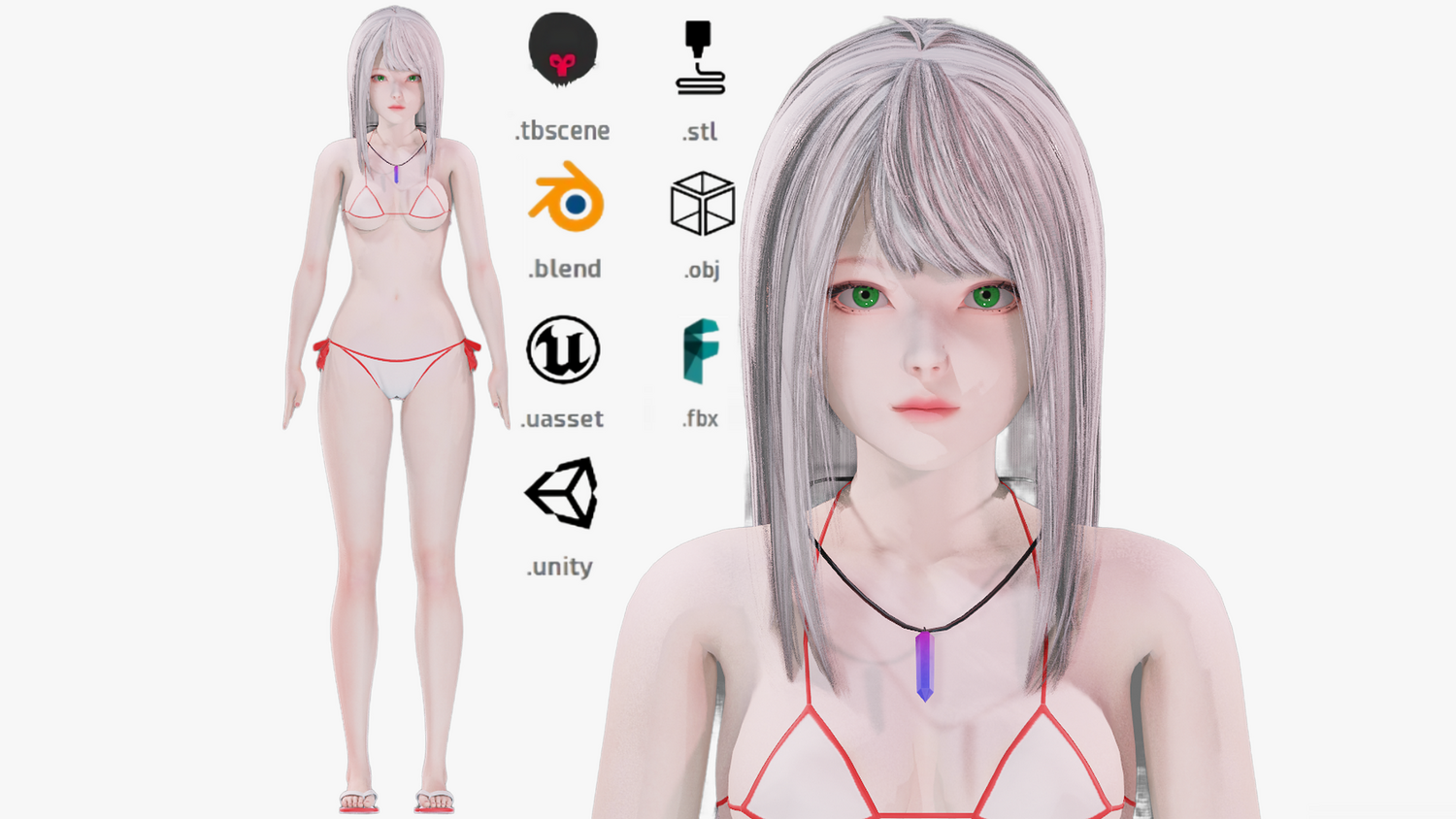 Bikini clothes 0025 - Rig - Unreal - Unity - Blender - Animated - Realistic Female Character