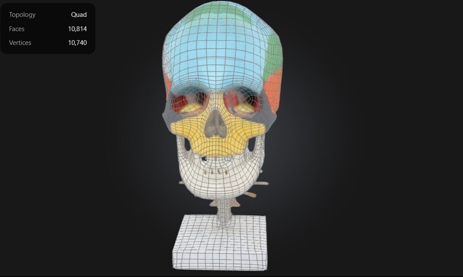 This 3D model of the Axis Scientific Didactic Skull on Cervical Vertebrae with Nerves and Arteries provides a highly detailed and anatomically accurate representation of the human skull and cervical spine. It highlights key features of the cranial and facial bones, along with the first seven cervical vertebrae, offering insights into skeletal structure, articulation, and support. The model also includes detailed depictions of major nerves and arteries, such as the vertebral arteries, carotid arteries, and cranial nerves, demonstrating their pathways and connections to the brain and upper body.