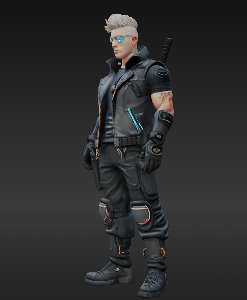 Cyberpunk Street Mercenary – 3D Animated and Printable Character Model