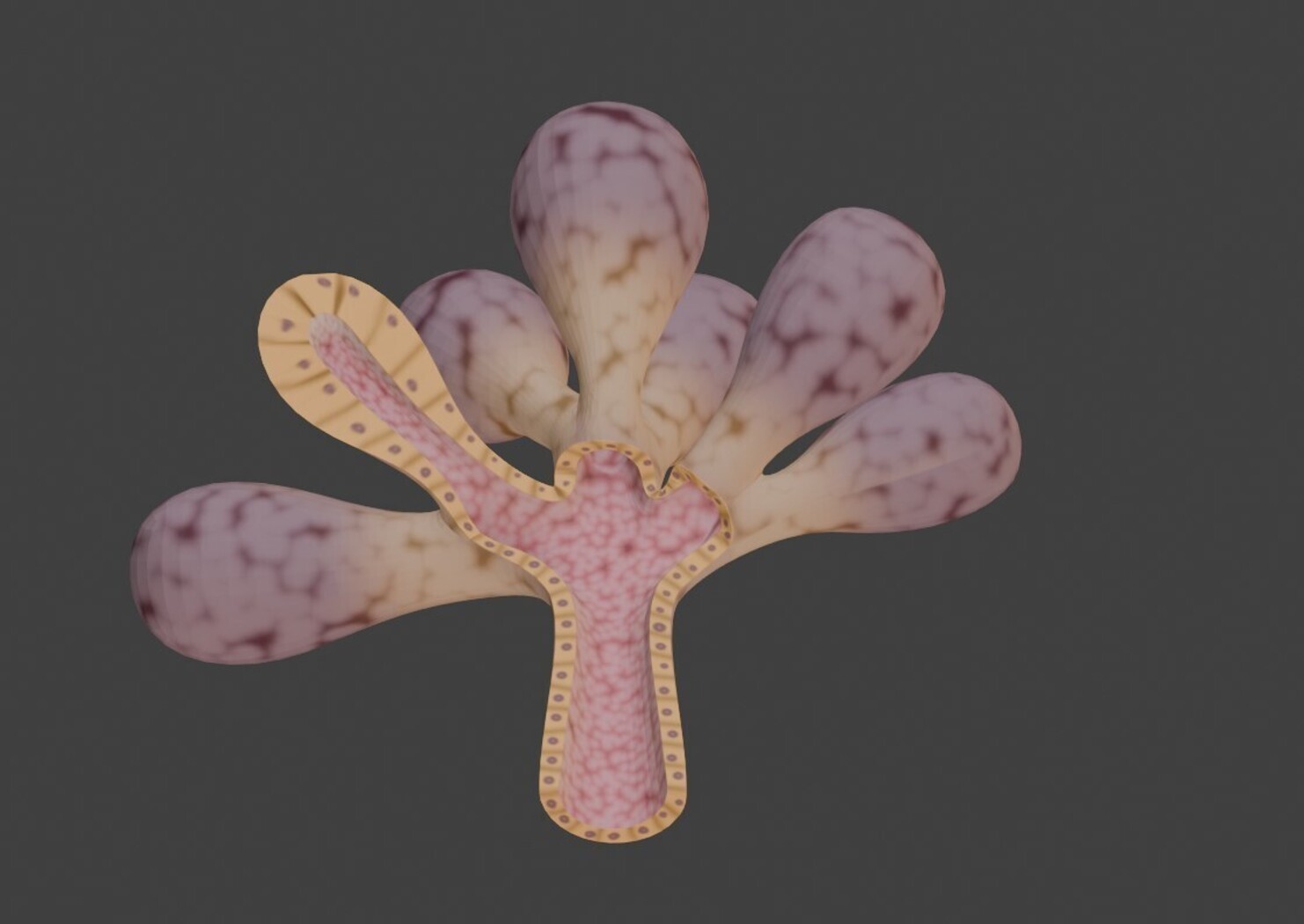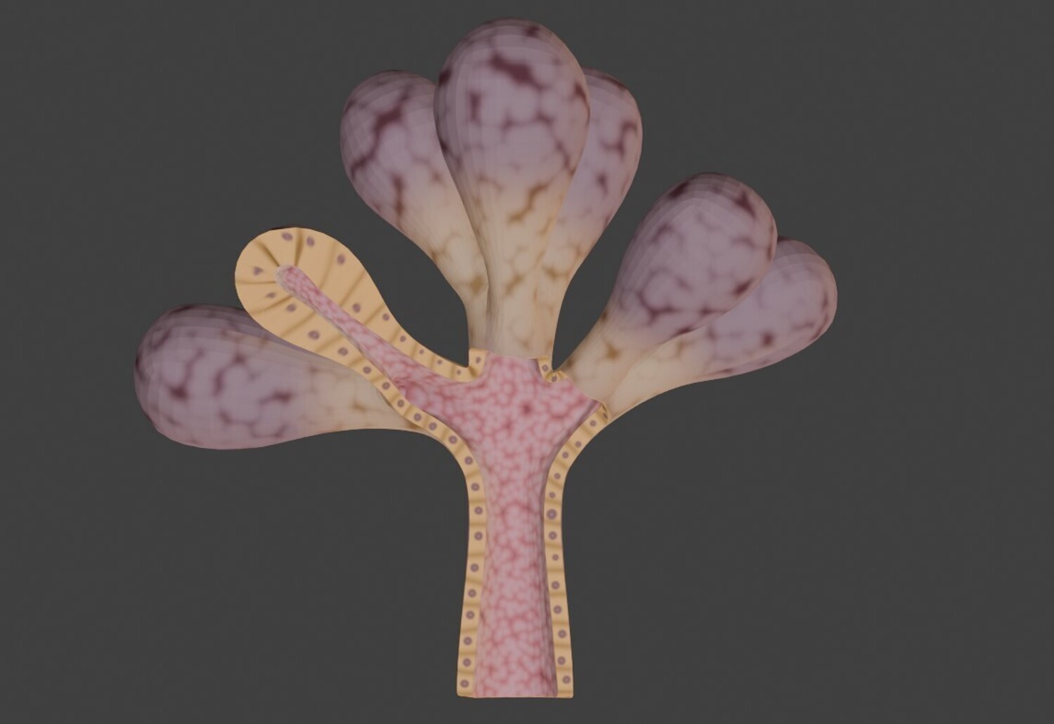 This 3D model of lacrimal gland anatomy provides a highly detailed and anatomically accurate representation of the tear-producing gland located in the upper outer region of the eye. It illustrates the gland’s structure, including its lobes and ducts, and its role in secreting tears to lubricate and protect the eye’s surface.