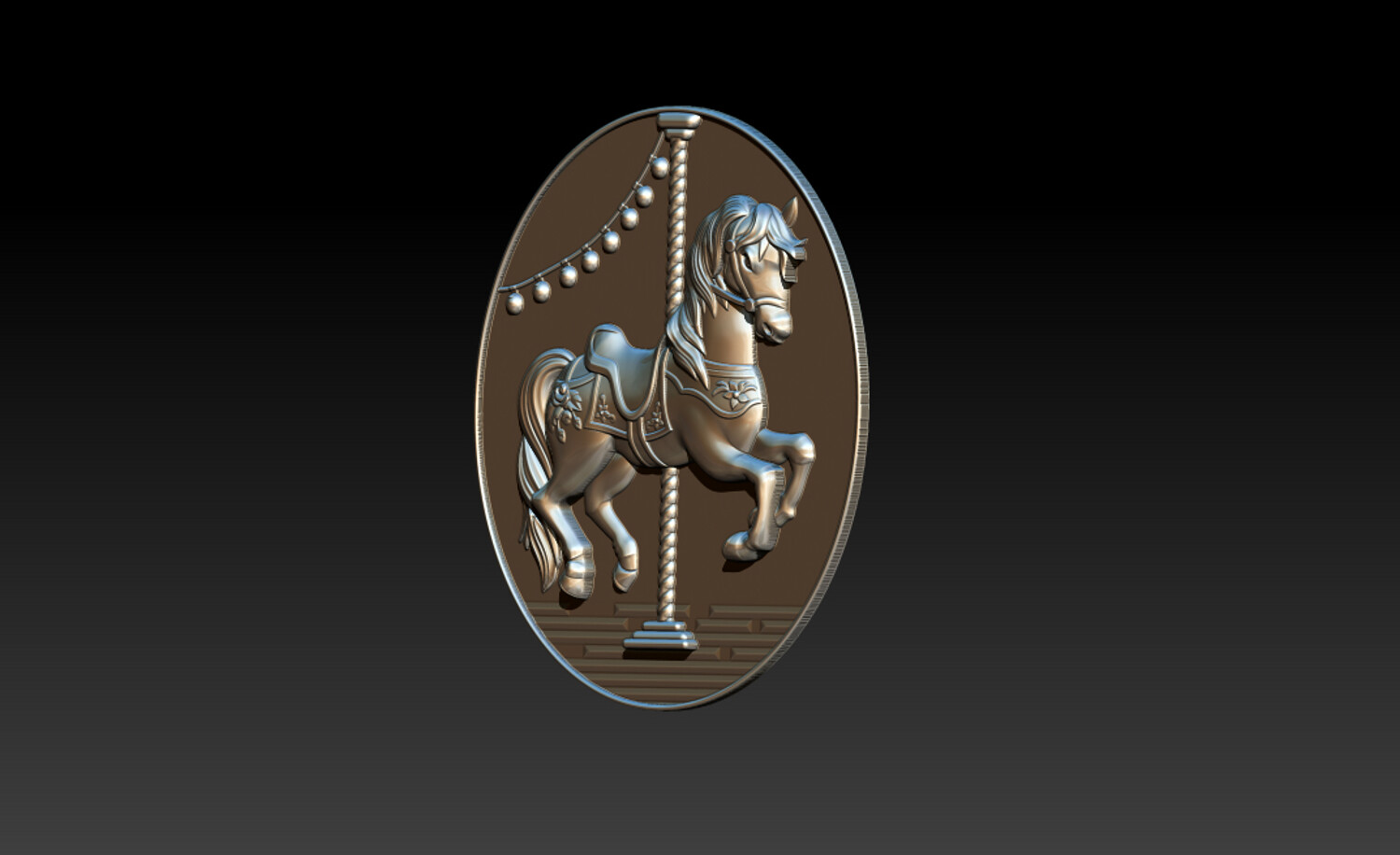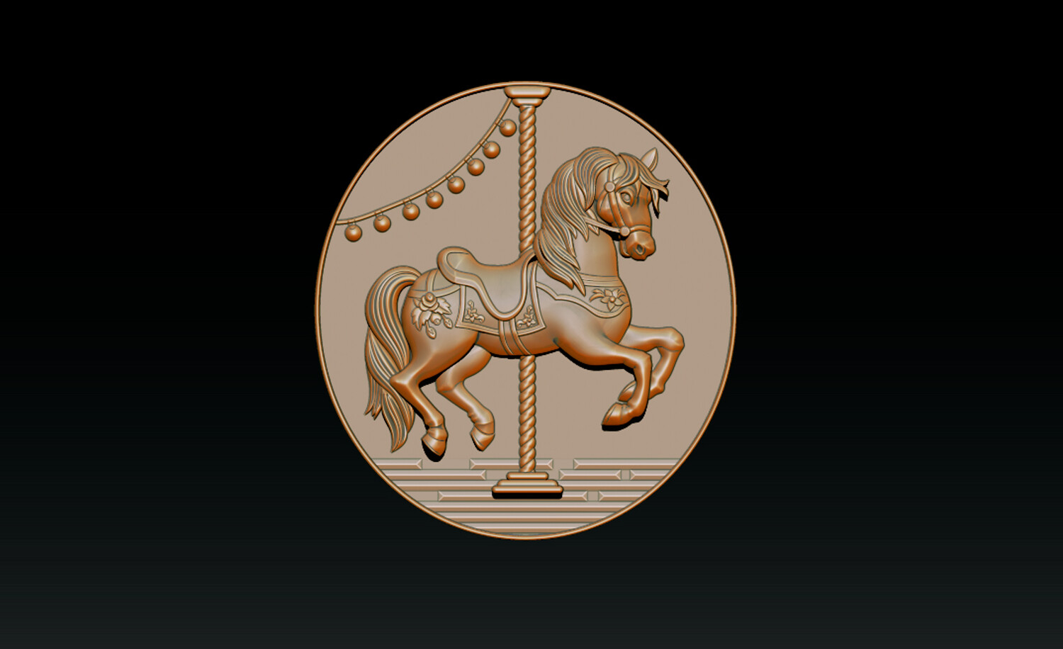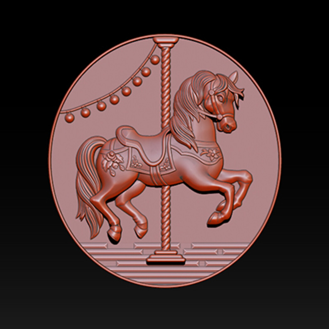 Whimsical Carousel Horse 2.5D Relief – Decorative 3D Model for CNC & 3D Print – STL, OBJ, ZTL Add a touch of vintage charm to your projects with this High-Detail Carousel Horse Relief. This 2.5D digital sculpture features a beautifully adorned merry-go-round horse, complete with flowing mane, decorative floral saddle, and a classic spiraled pole. Encased in a circular frame with festive light-bulb detailing, this model captures the nostalgic essence of a traditional fairground.