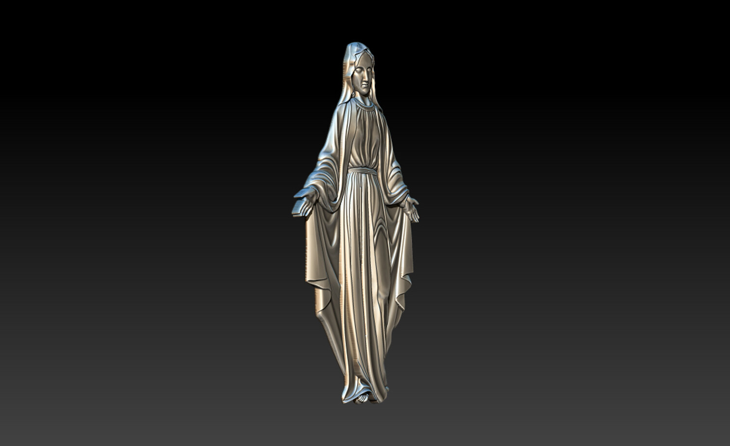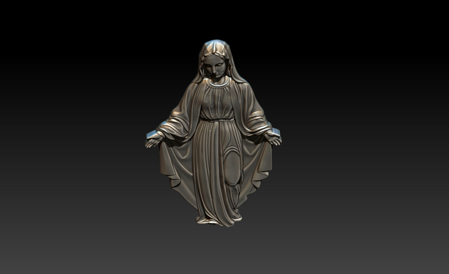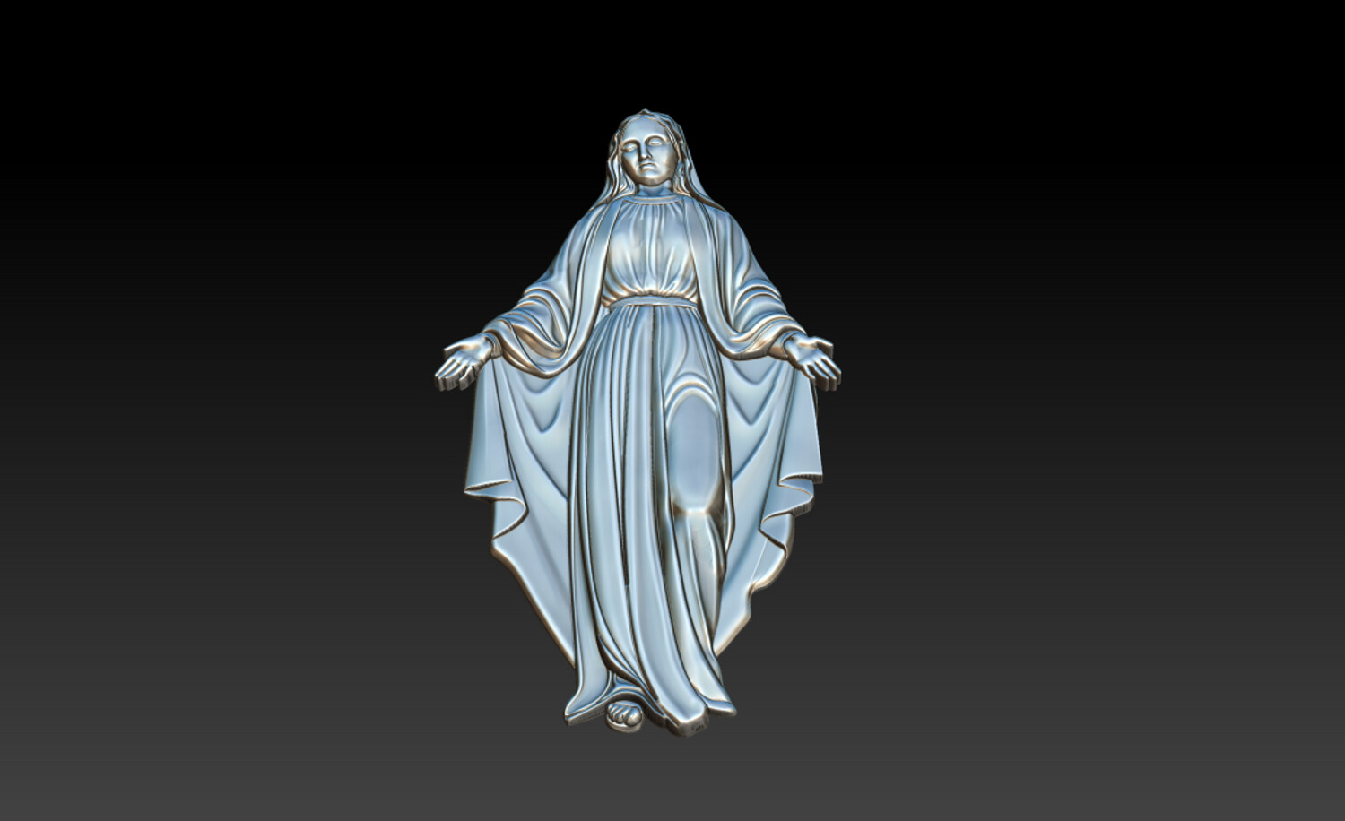 Virgin Mary Relief – 3D Model for CNC Carving and Religious Art This Virgin Mary 3D Relief Model presents a graceful and serene representation of the Blessed Mother with open arms, symbolizing love, compassion, and divine protection. The sculpture features beautifully flowing robes with soft natural folds, carefully sculpted to create depth and elegance in the relief. The gentle expression and balanced posture convey peace and spiritual comfort, making this design perfect for religious artworks and sacred decorations. Every detail has been crafted to ensure clean carving results and smooth surfaces, making the model ideal for both CNC machining and high-resolution 3D printing. This design is perfect for creating religious wall art, church decorations, memorial plaques, and devotional sculptures.