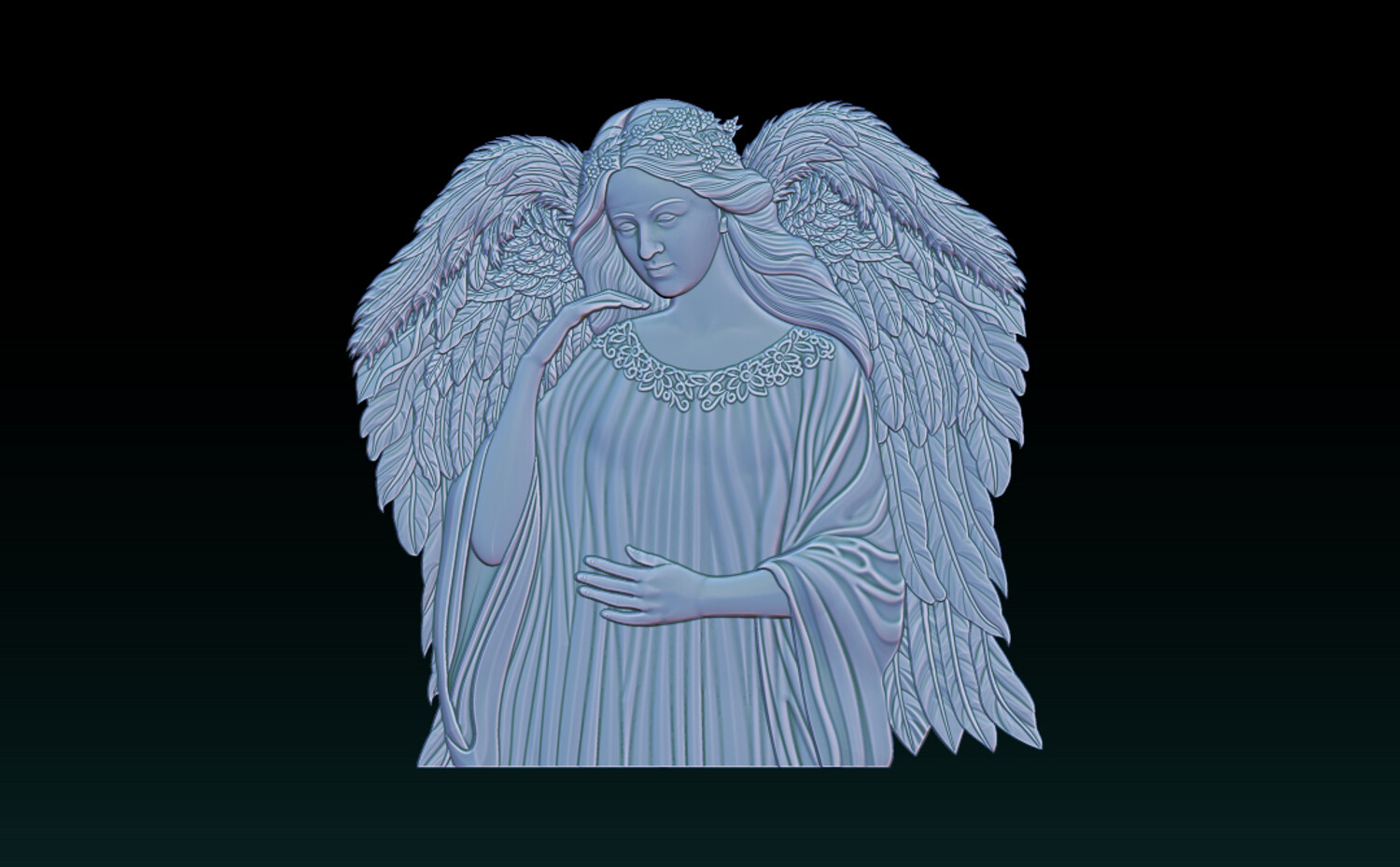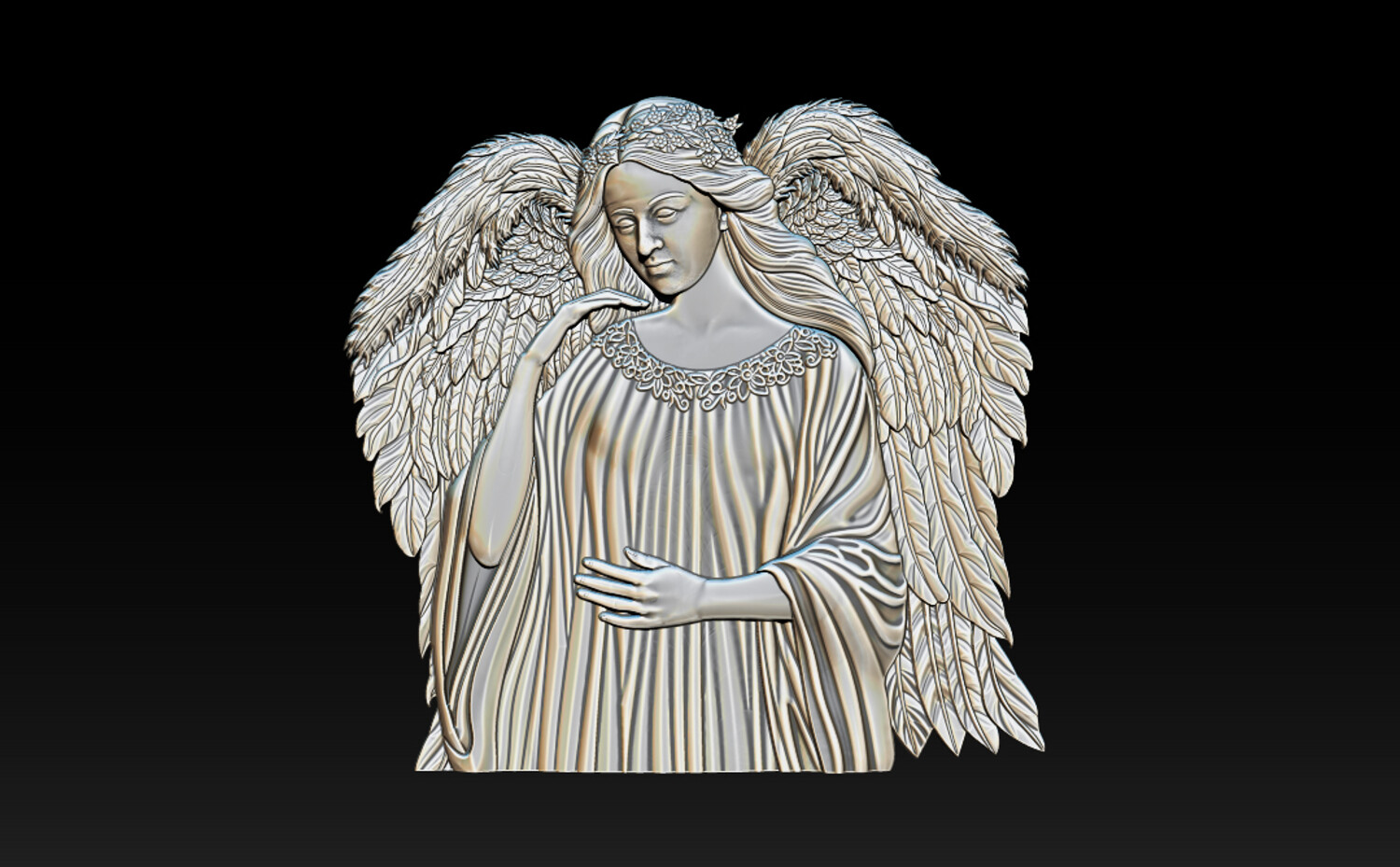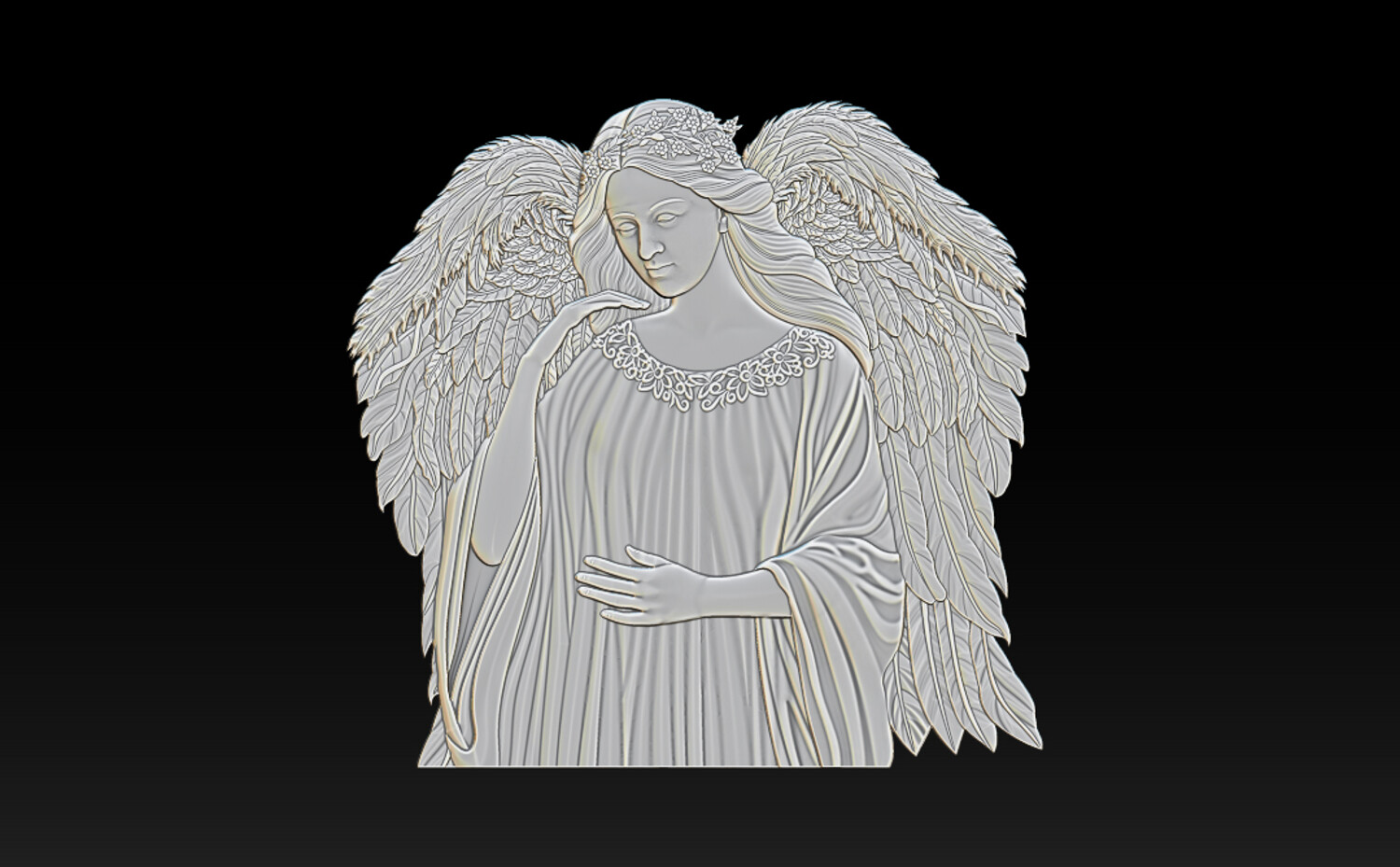 Divine Angel 3D Relief – Memorial Tombstone Sculpture for CNC & 3D Print – STL, OBJ, ZTL