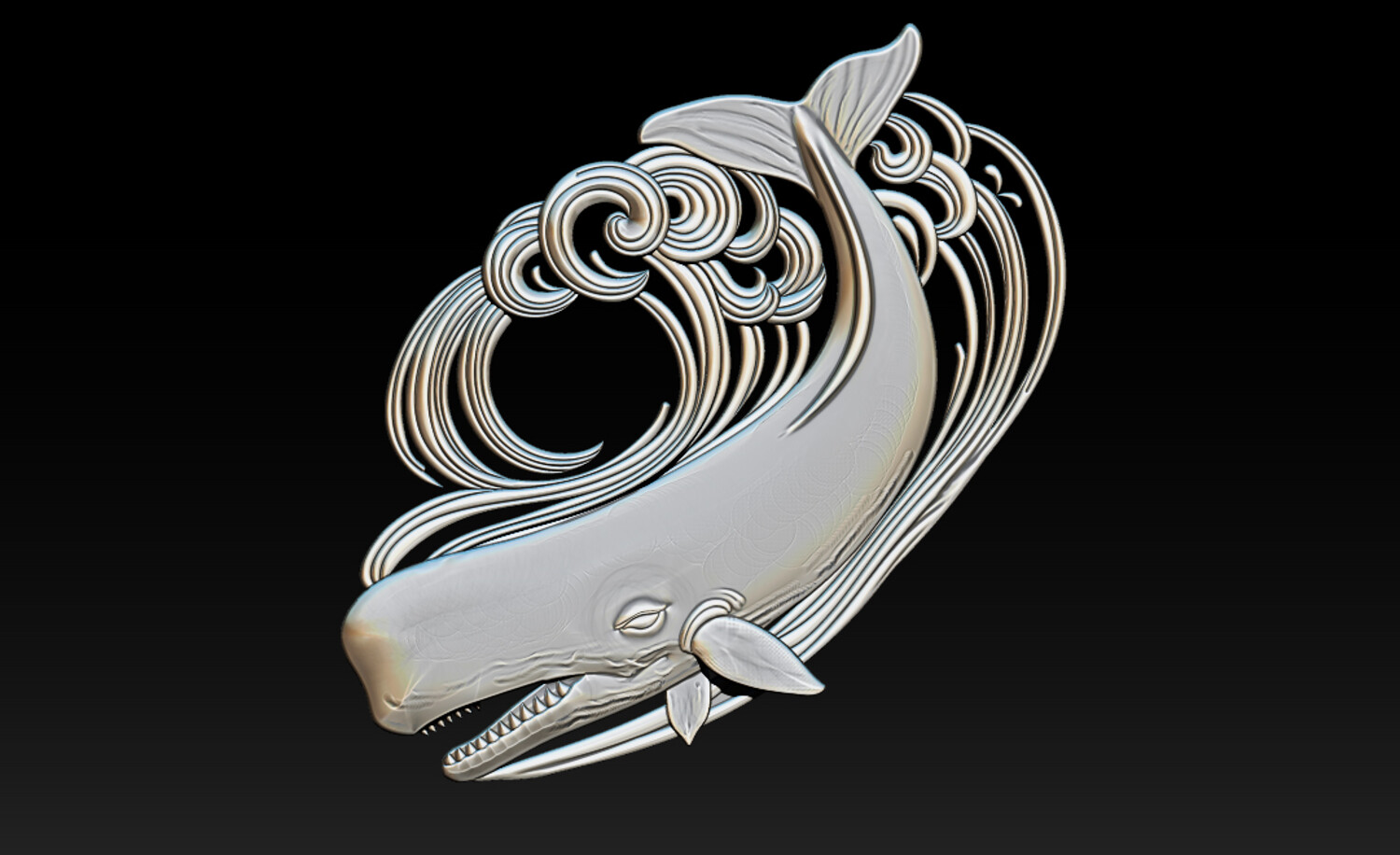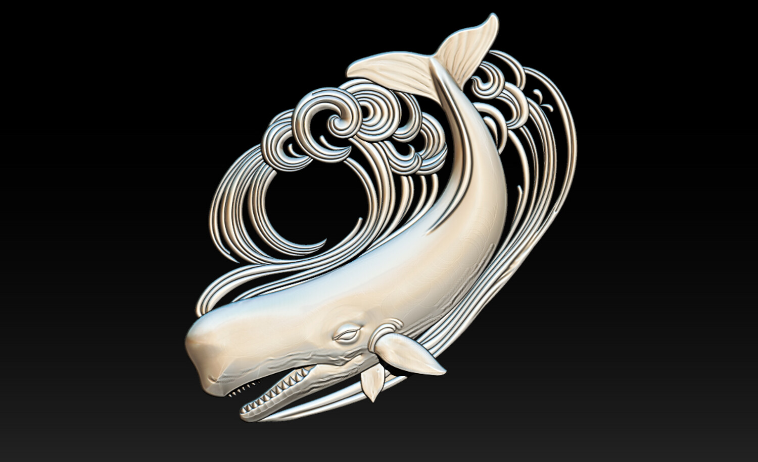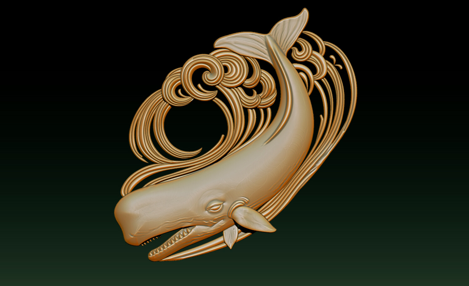 Decorative Whale CNC Relief 3D Model | STL OBJ ZTL Product Description