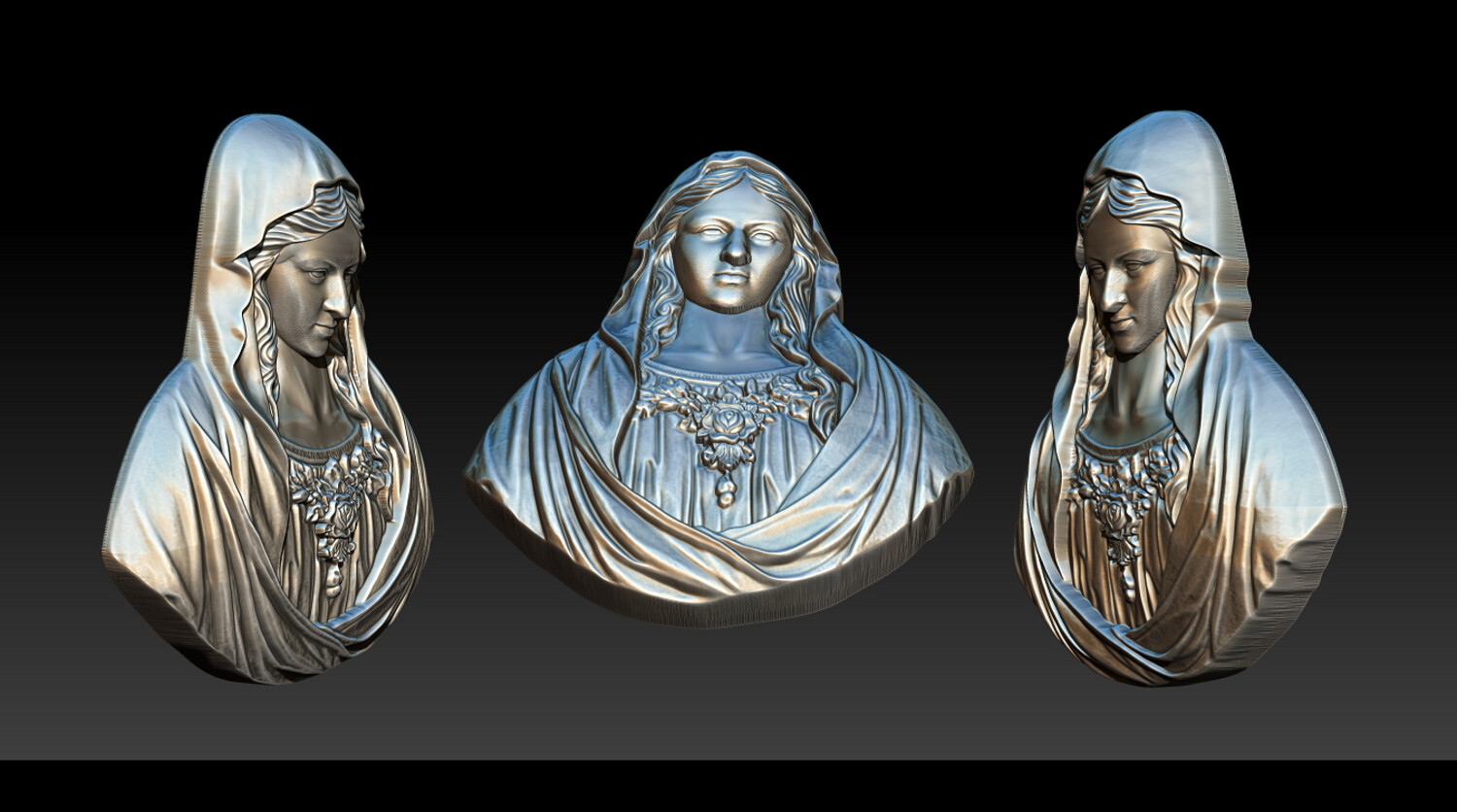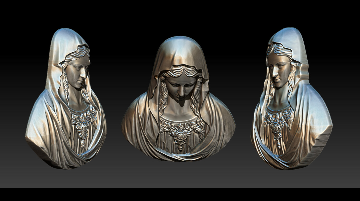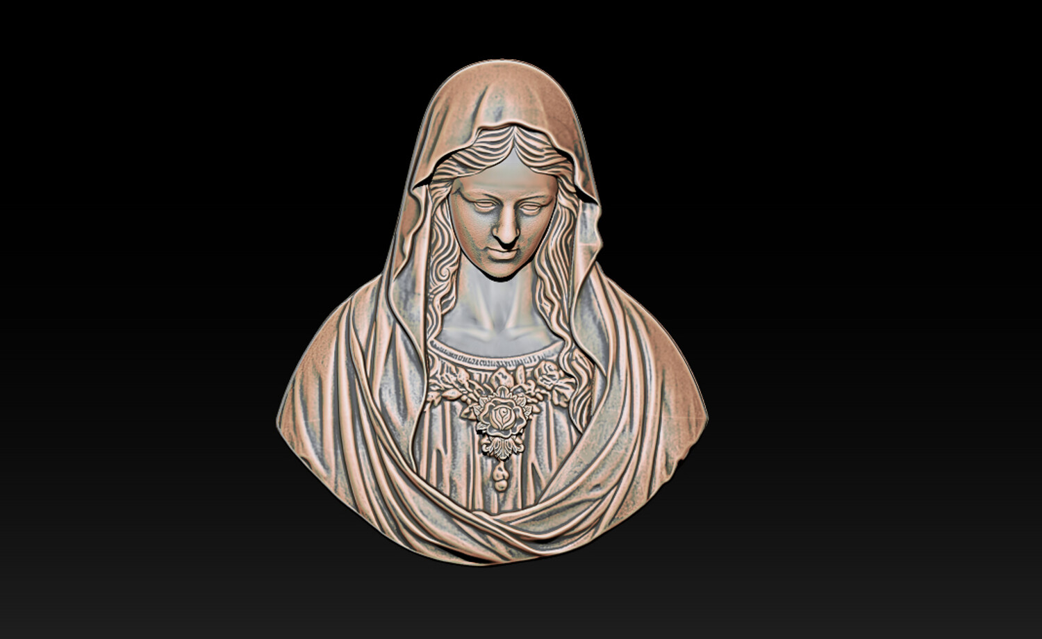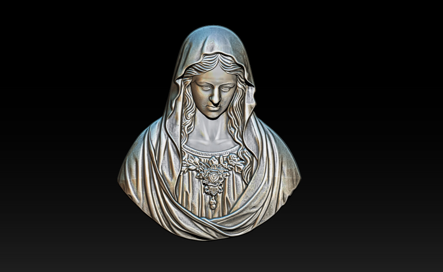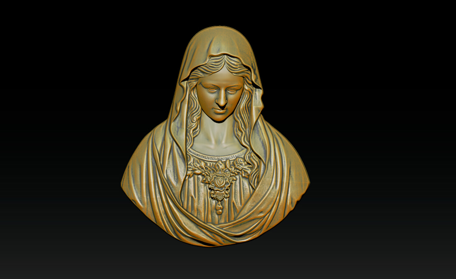 Virgin Mary Bust Relief - 3D STL Relief Model for CNC Machine and 3D Printing