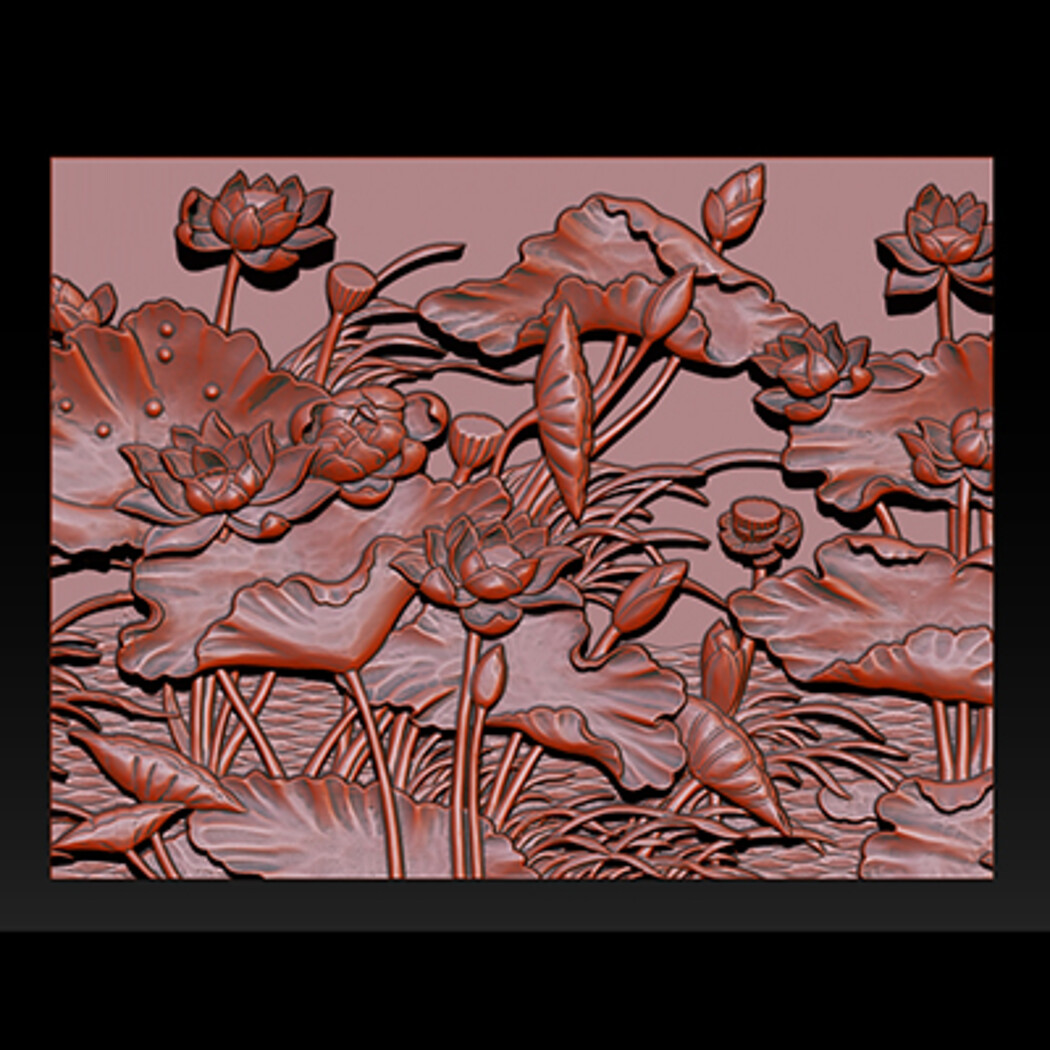 LOTUS POND BAS-RELIEF 3D MODEL - V2