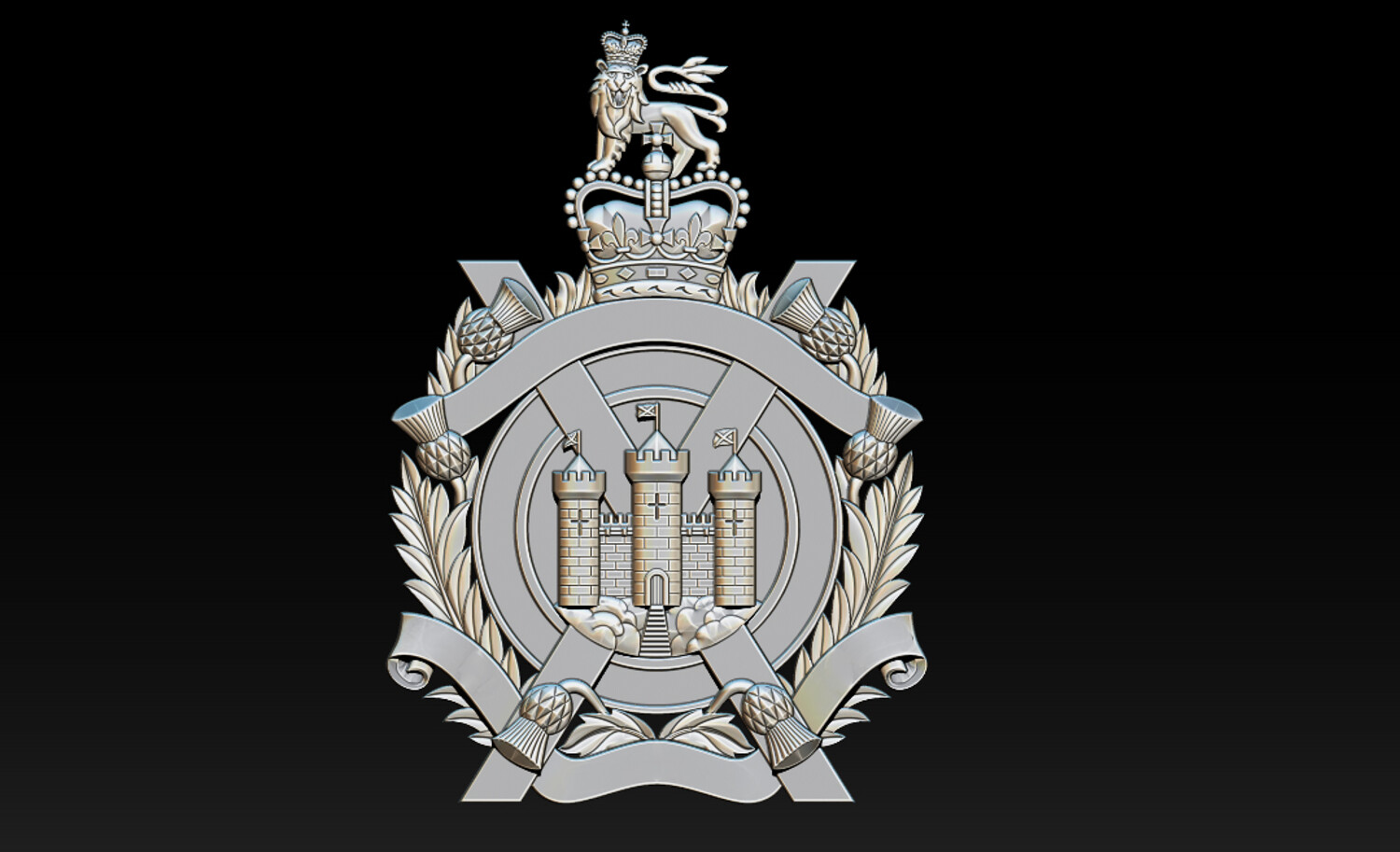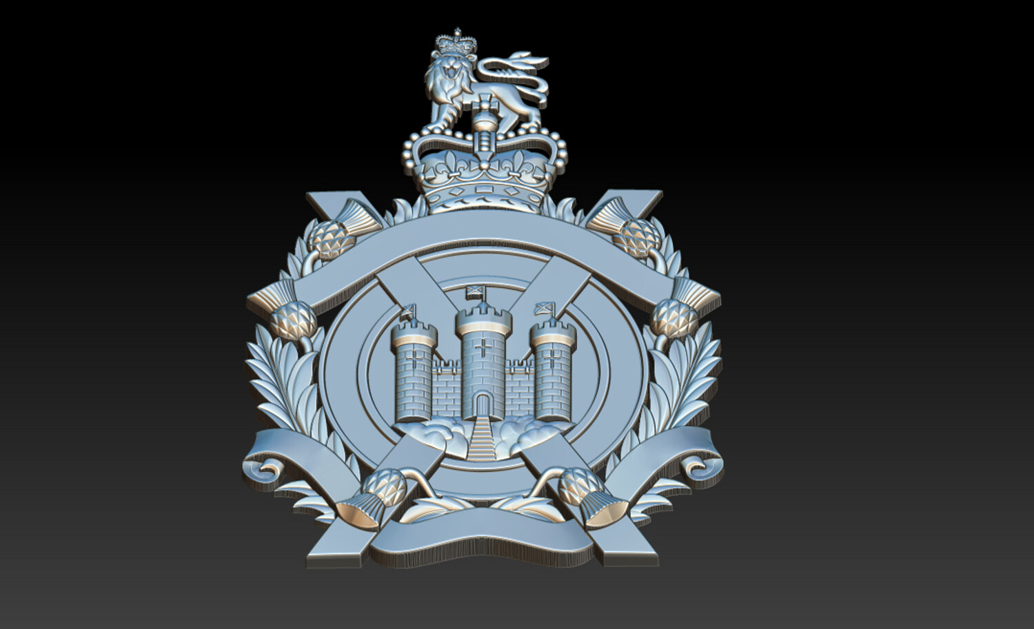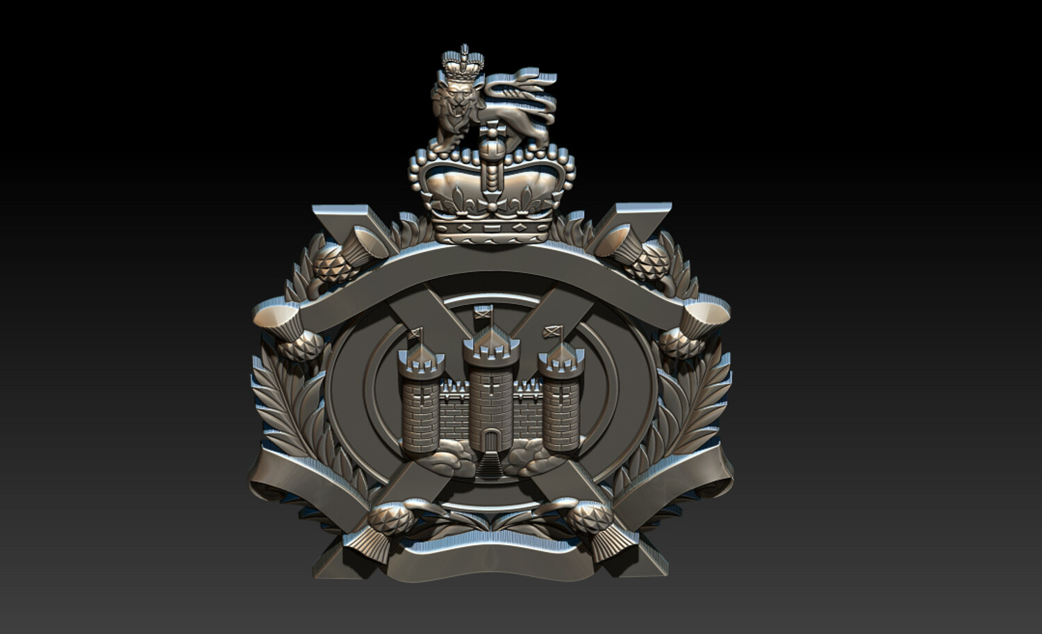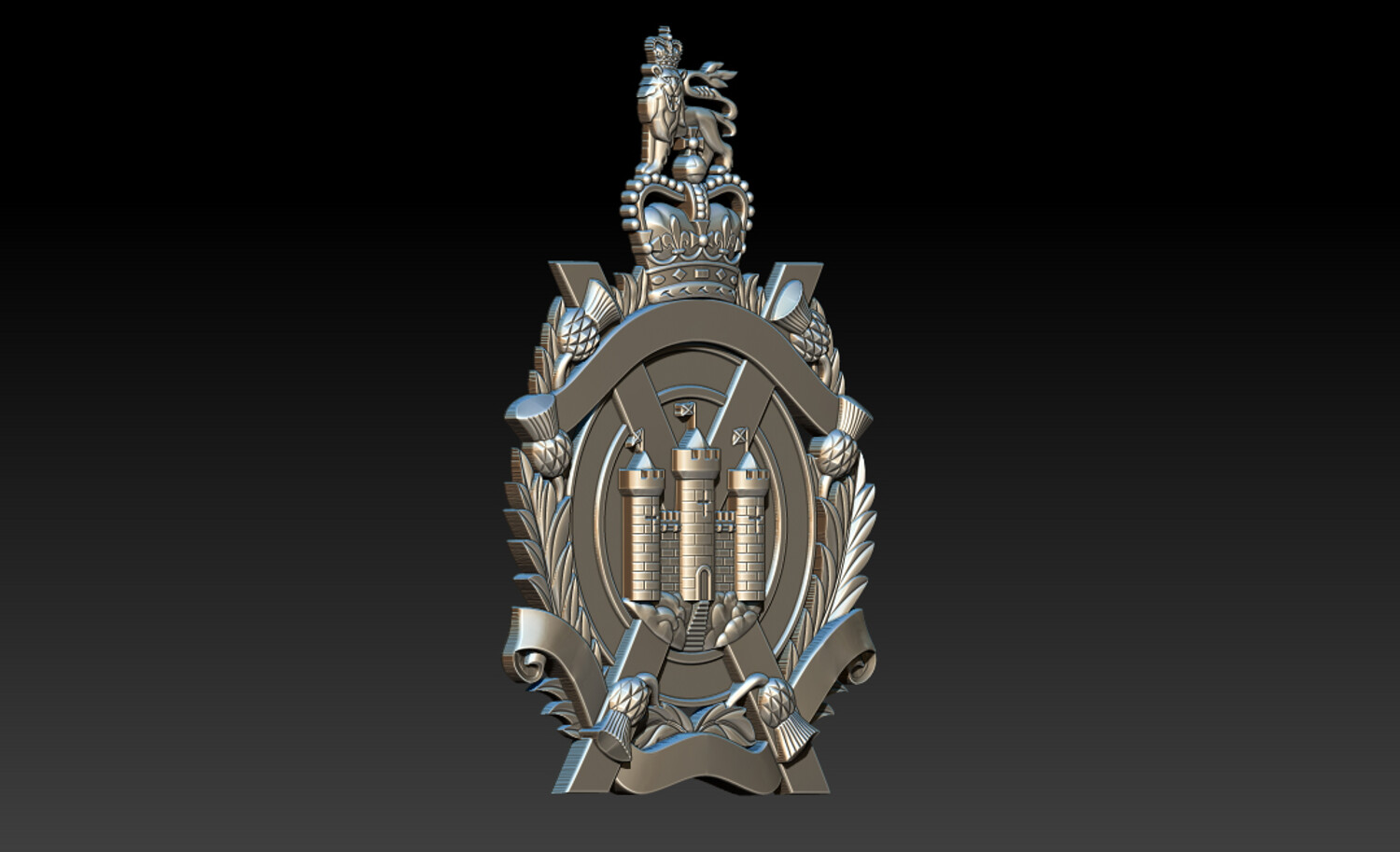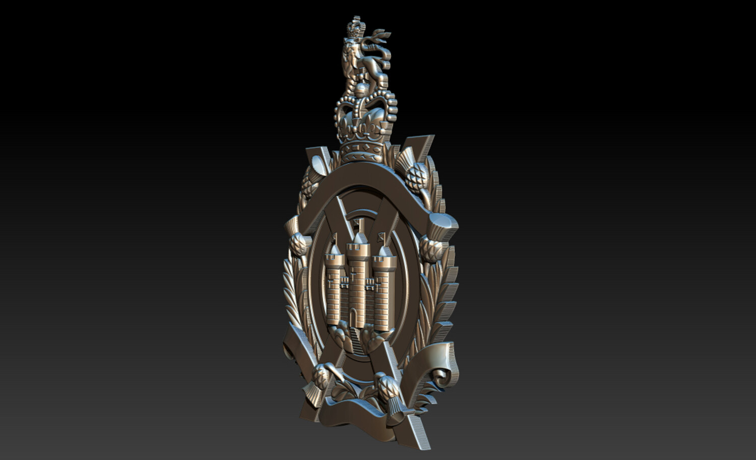 Royal Heraldic Crest CNC Relief 3D Model | STL OBJ ZTL Product Description This Royal Heraldic Crest CNC Relief 3D Model is a richly detailed 2.5D bas-relief featuring a crowned emblem, castle towers, banners, laurel leaves, and a heraldic lion—symbols of royalty, strength, authority, and heritage. Designed with balanced relief depth and crisp ornamental details, this model is optimized for professional CNC carving, delivering clean toolpaths and refined surface finishes. Perfect for coats of arms, historical emblems, architectural décor, furniture panels, luxury wall art, and branding projects.