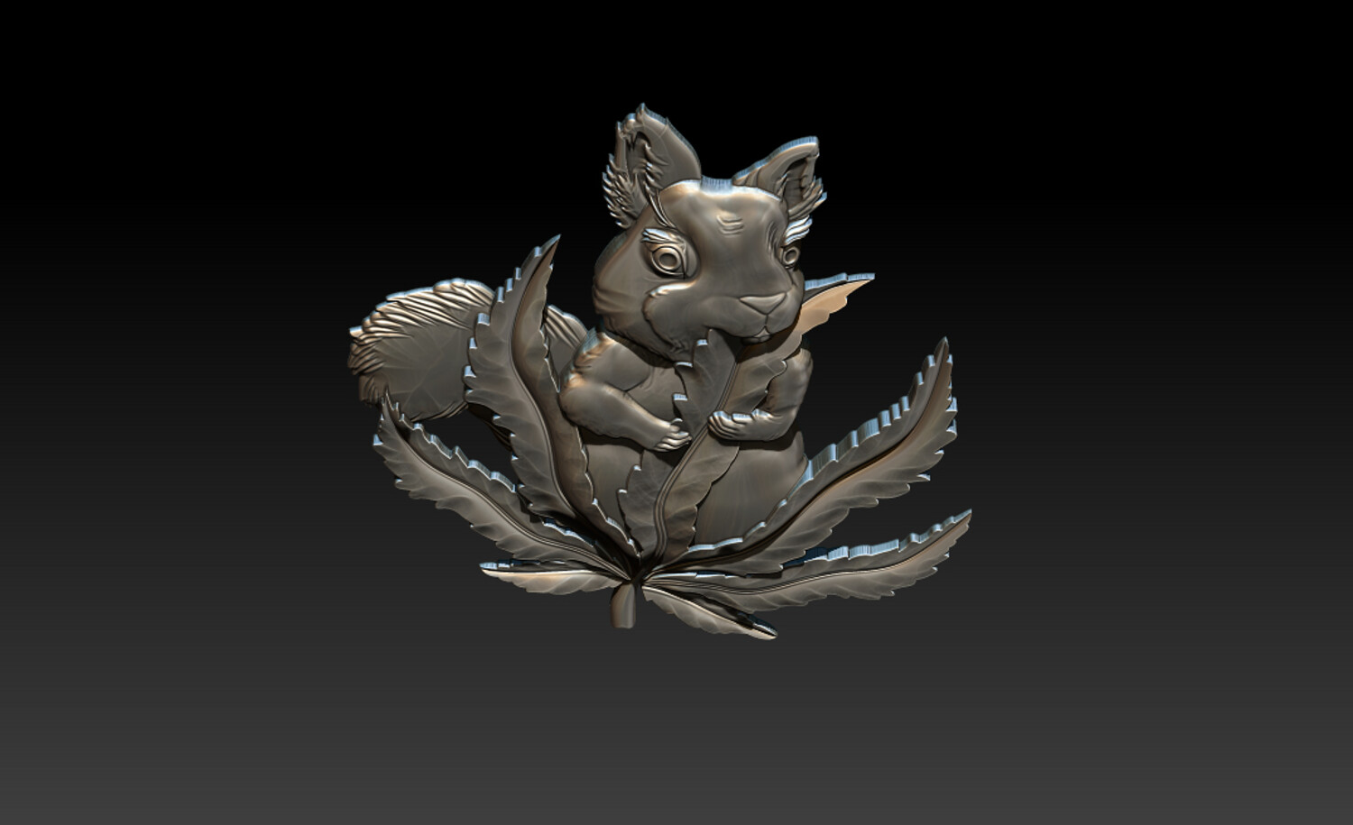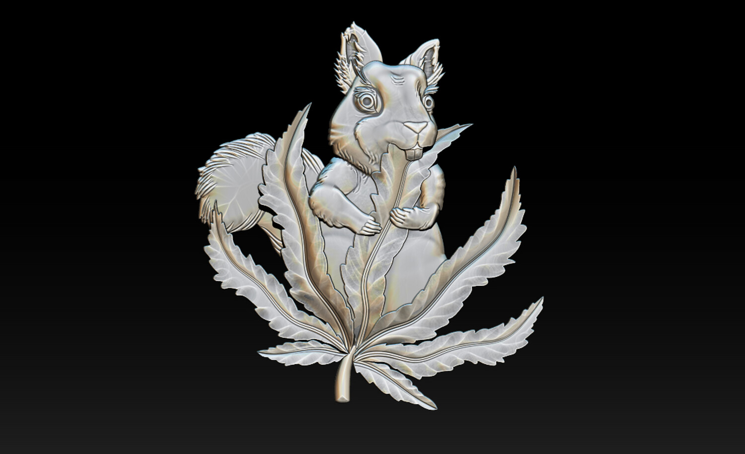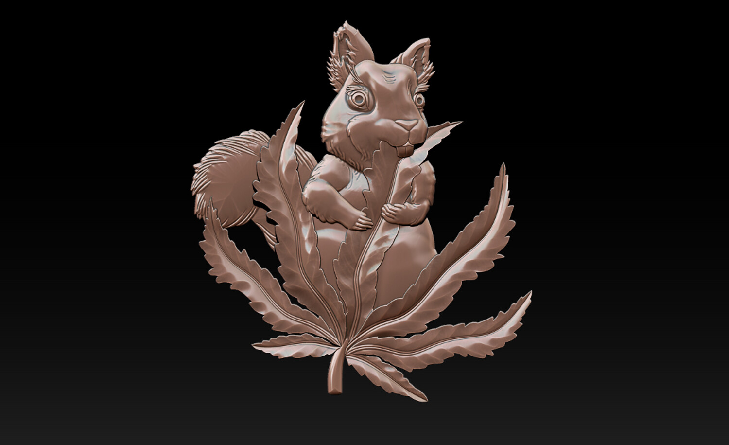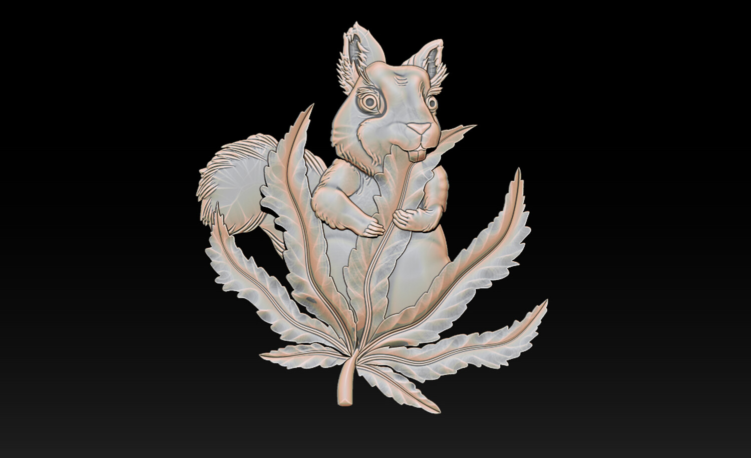 Squirrel Leaf 3D Bas-Relief – STL | OBJ | ZTL – CNC Carving