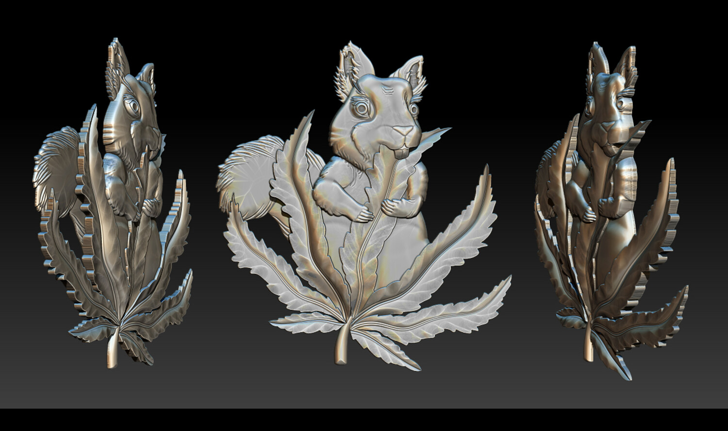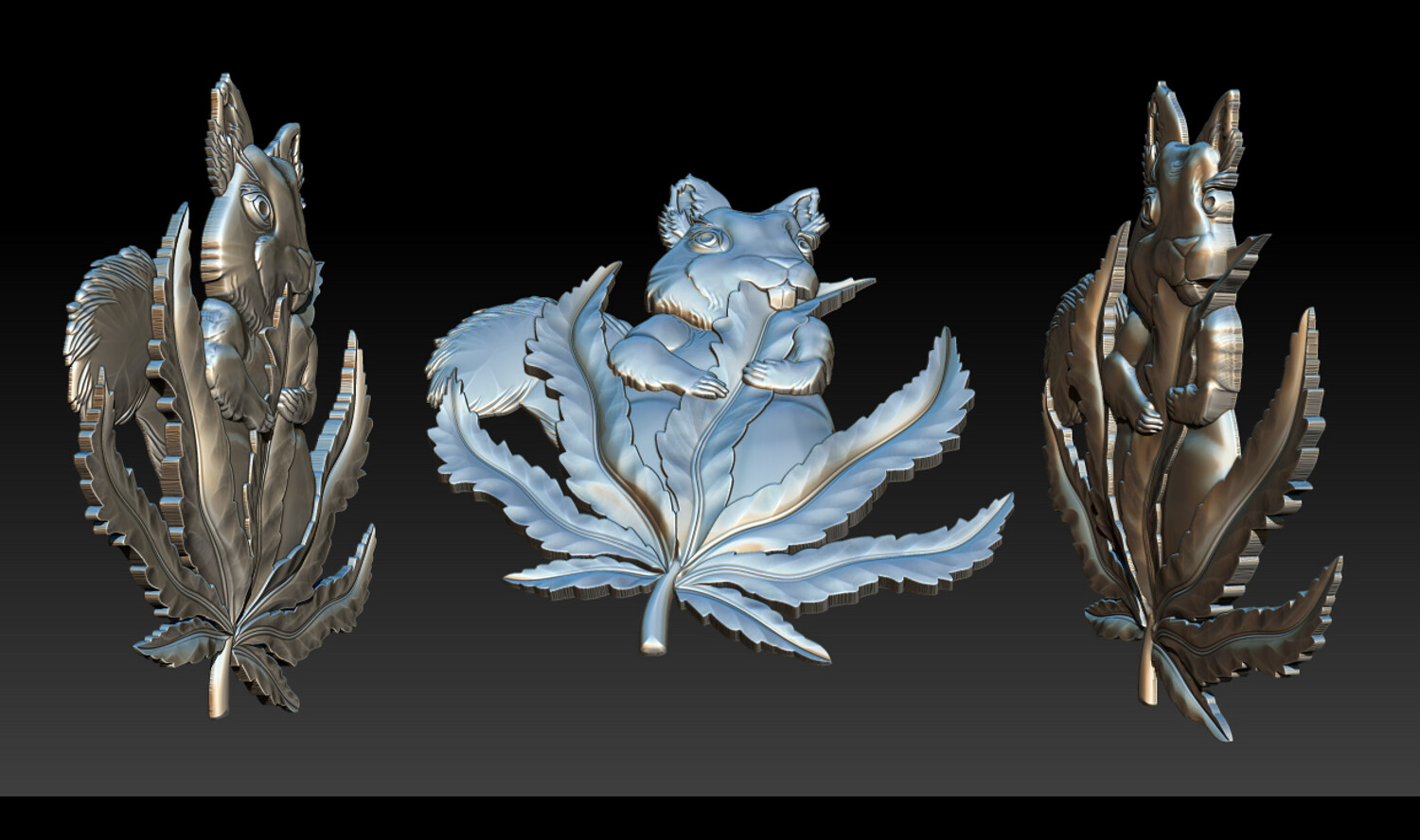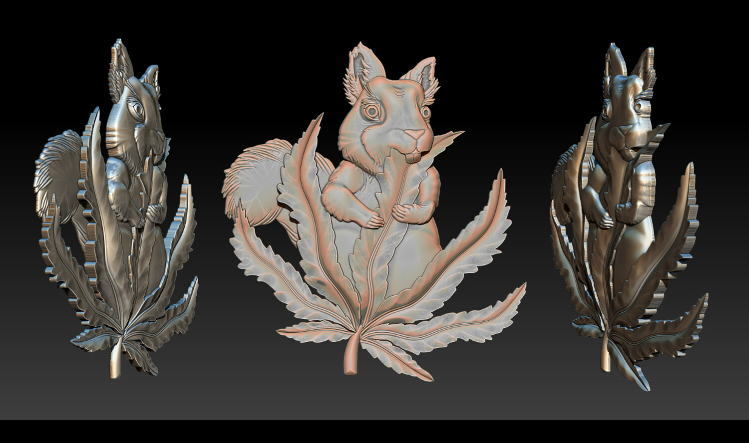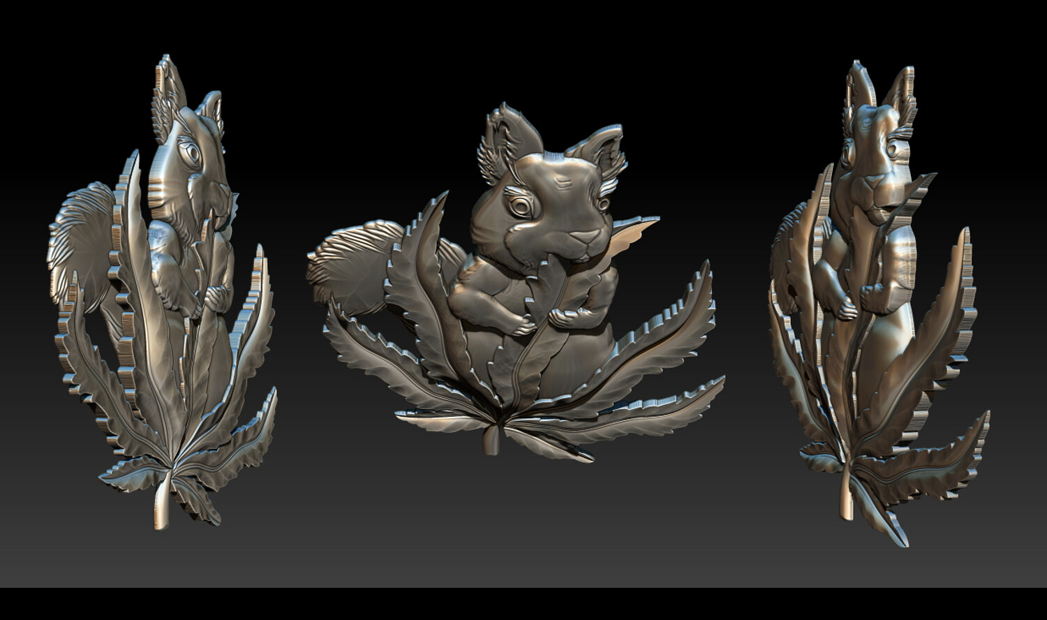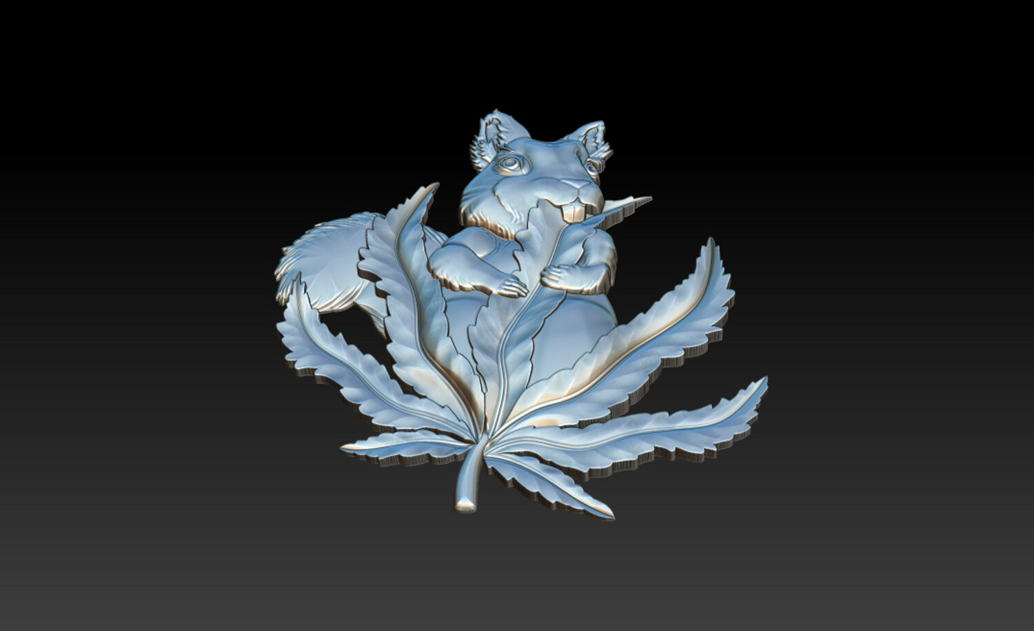Squirrel Leaf 3D Bas-Relief – STL | OBJ | ZTL – CNC Carving