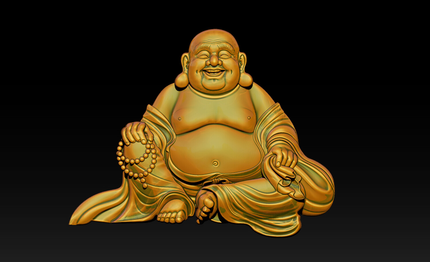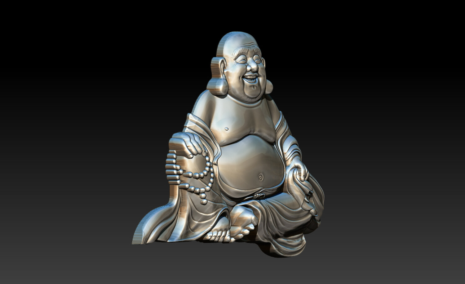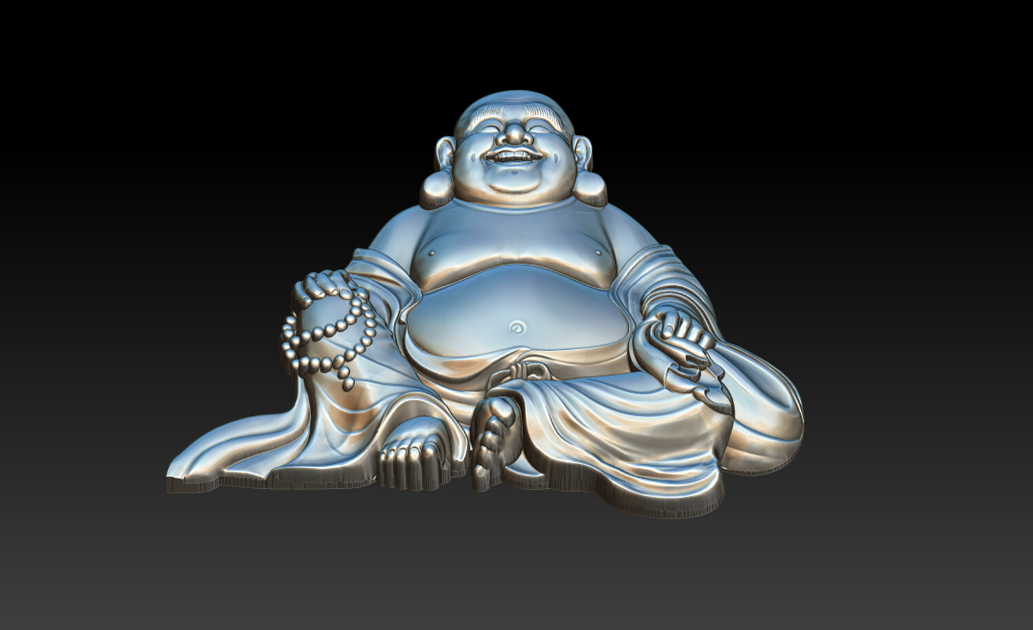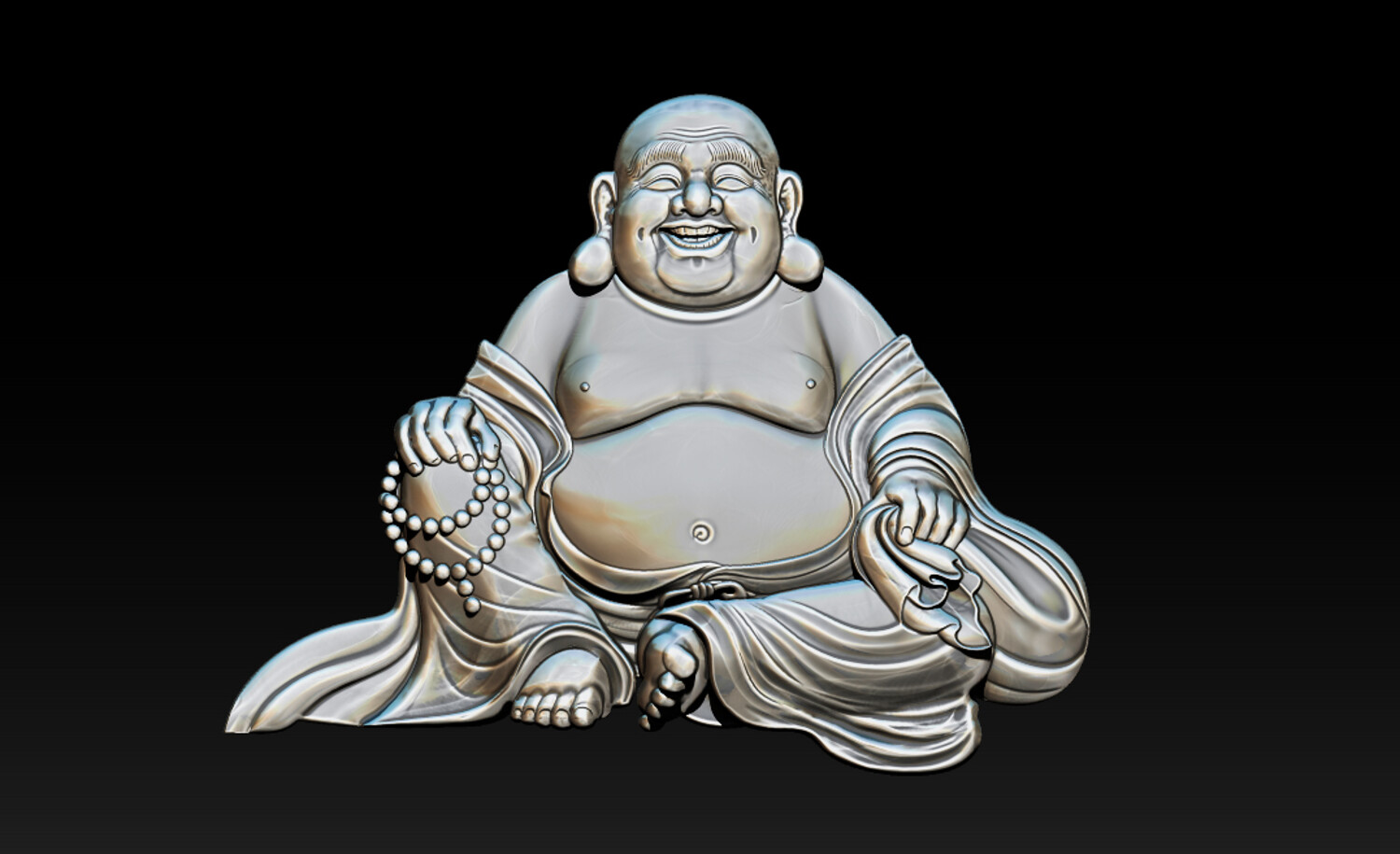 Laughing Buddha Relief – 3D Model for CNC Carving & Jewelry Casting This Laughing Buddha (Budai) 3D Relief Model is a symbol of happiness, prosperity, abundance, and good fortune. The model features a joyful Buddha sitting peacefully with a big smile, large belly, and flowing robe details. The sculpture includes a beautiful bead bracelet in hand, adding extra spiritual and decorative value to the design. This relief is carefully sculpted with smooth surfaces and clean depth transitions, ensuring excellent results for both CNC carving and 3D printing production. The overall composition is balanced, highly detailed, and ideal for spiritual décor projects, feng shui artwork, and decorative sculptures.