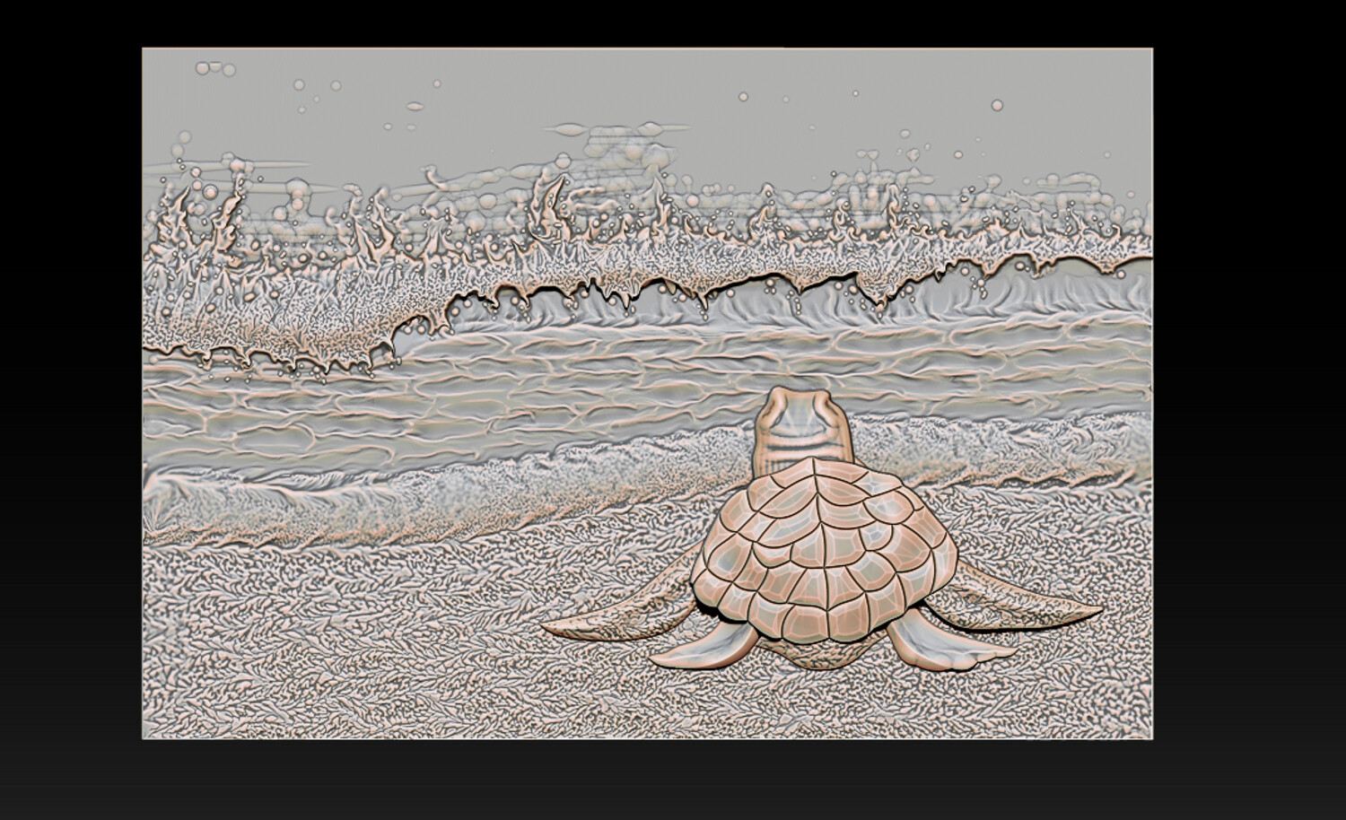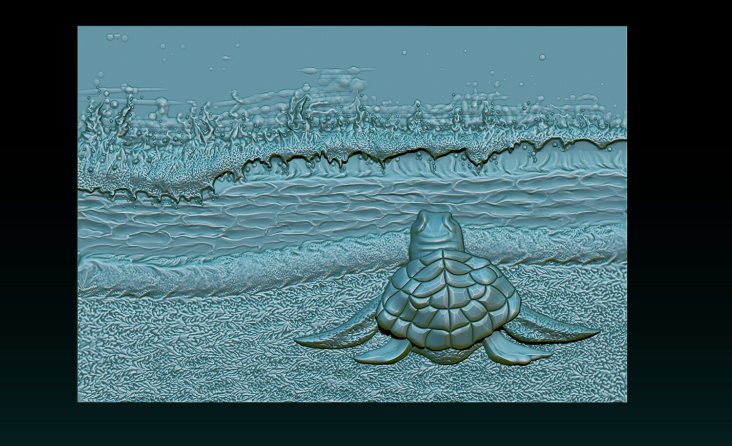 Sea Turtle Bas-Relief 3D STL Model