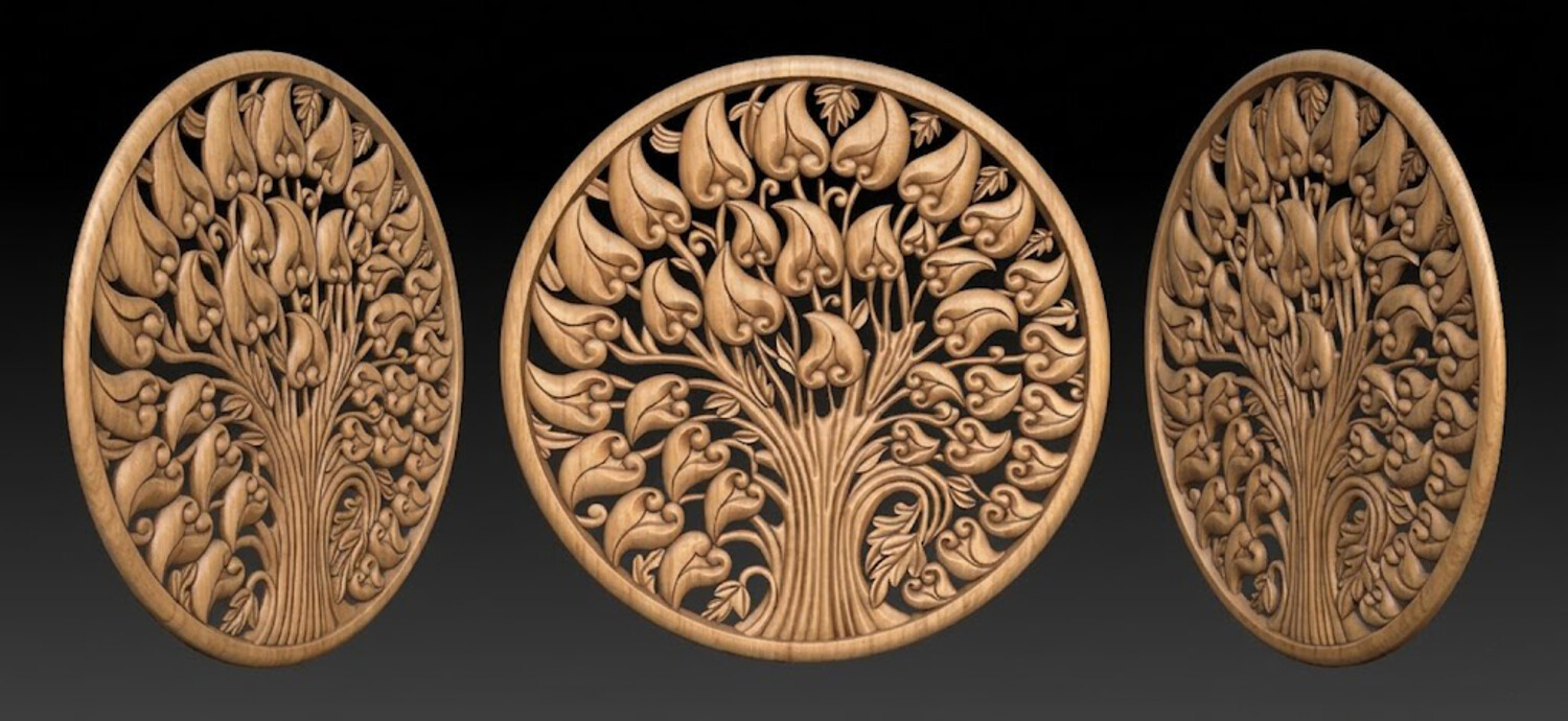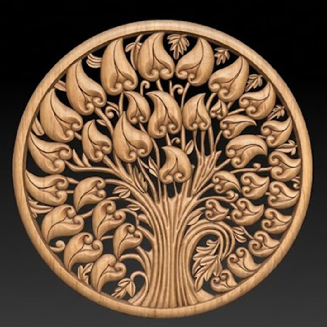 Model Features Beautiful circular tree composition Strong relief depth with smooth carving transitions Clean geometry for CNC machining High detail leaves and branches Perfect round medallion frame included Suitable for large wall panels or smaller décor pieces Works great in wood, resin, gypsum, or metal casting