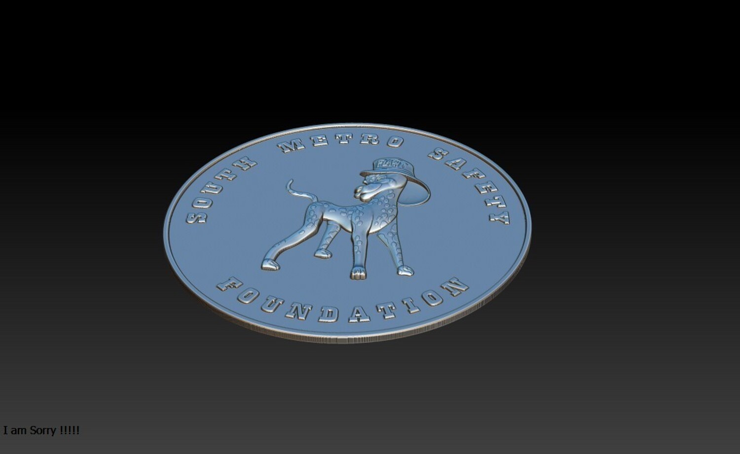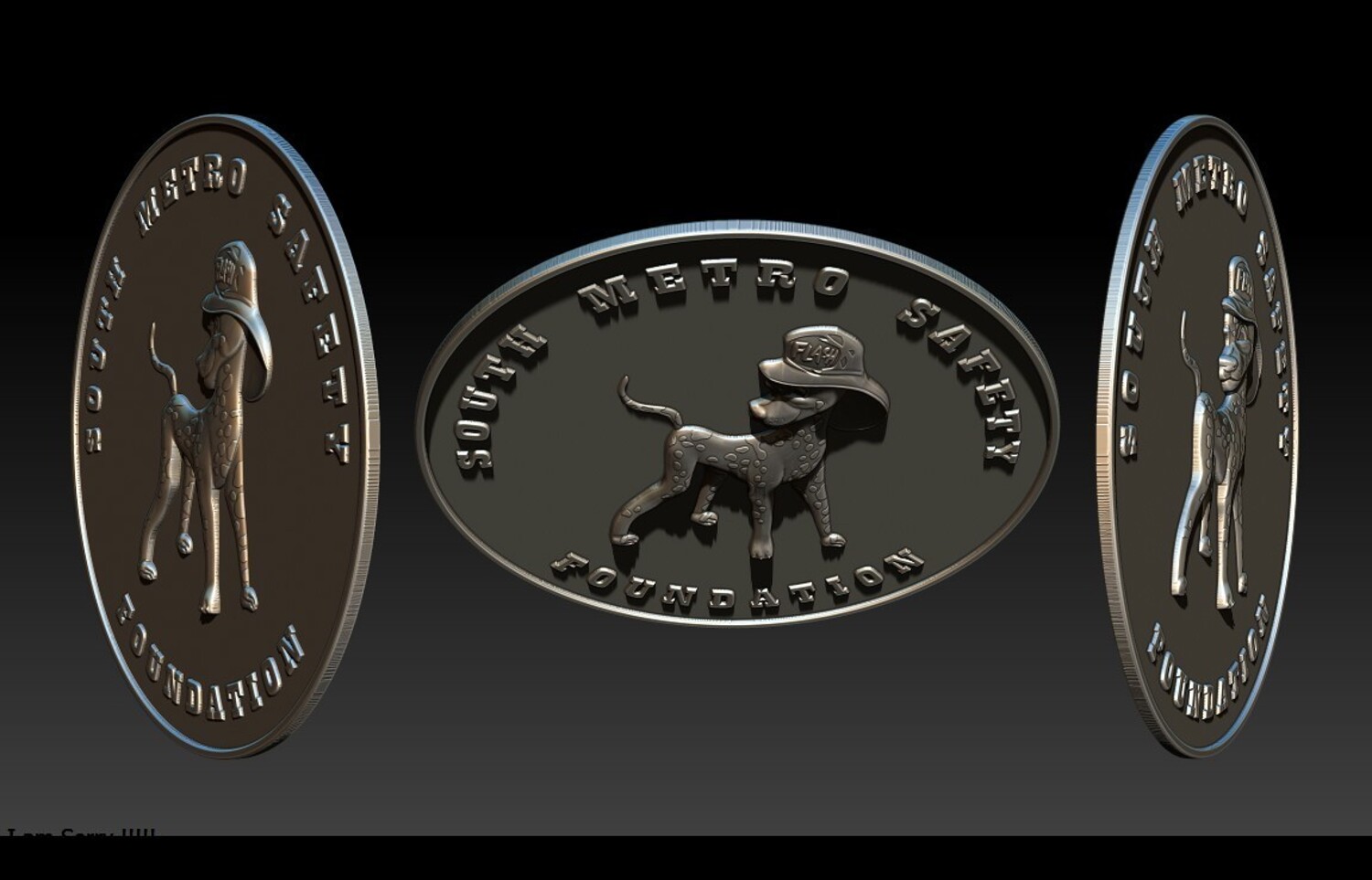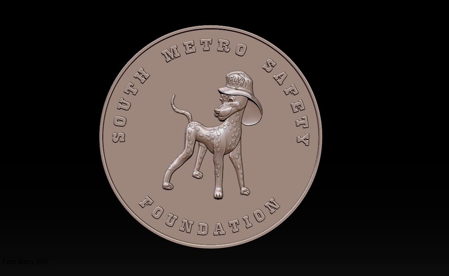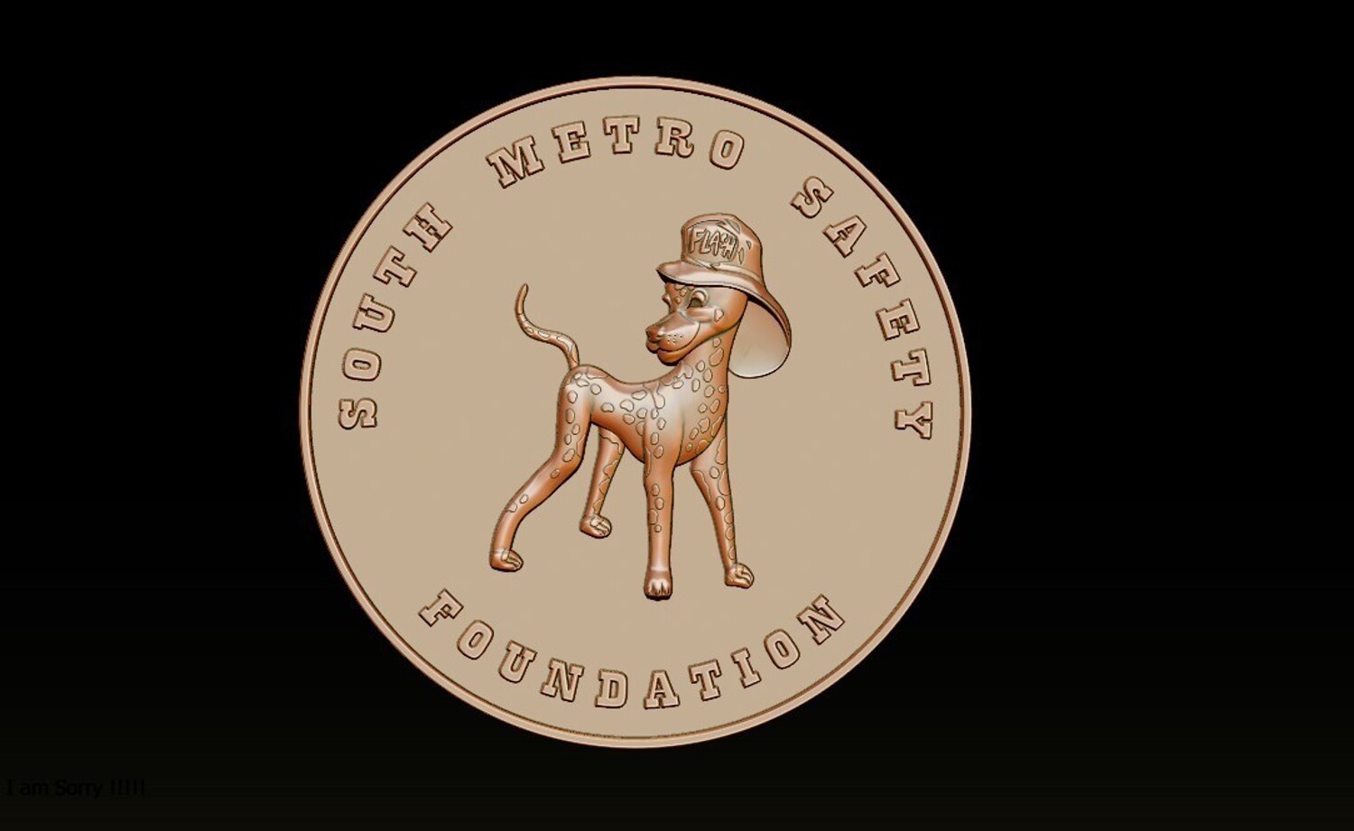 3D STL Bas-Relief Dog Emblem – South Metro Safety Foundation Coin CNC & 3D Printing Ready | High-Detail Relief Model