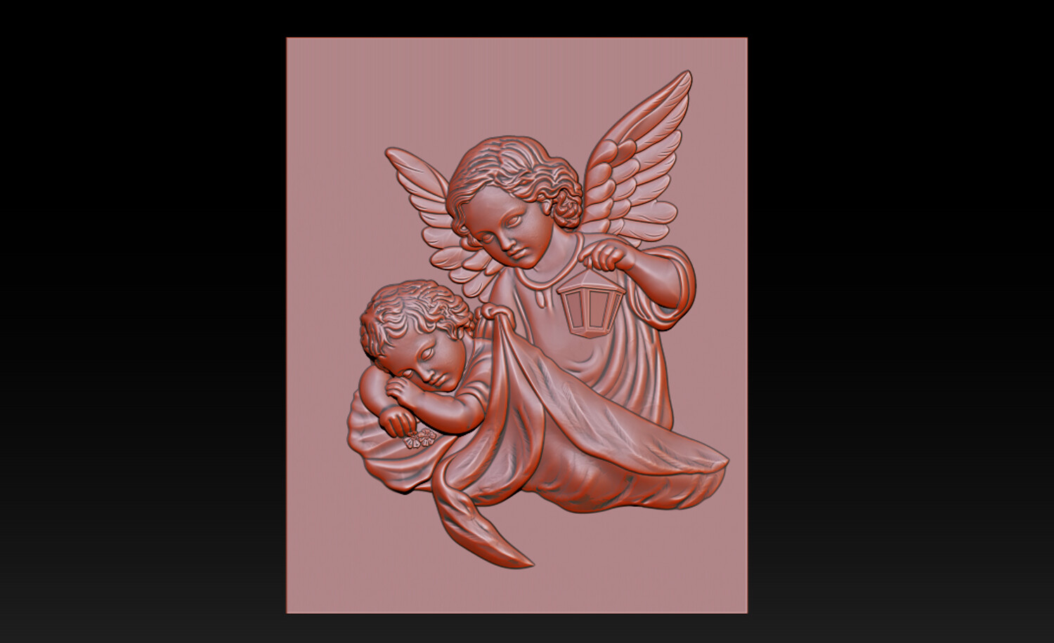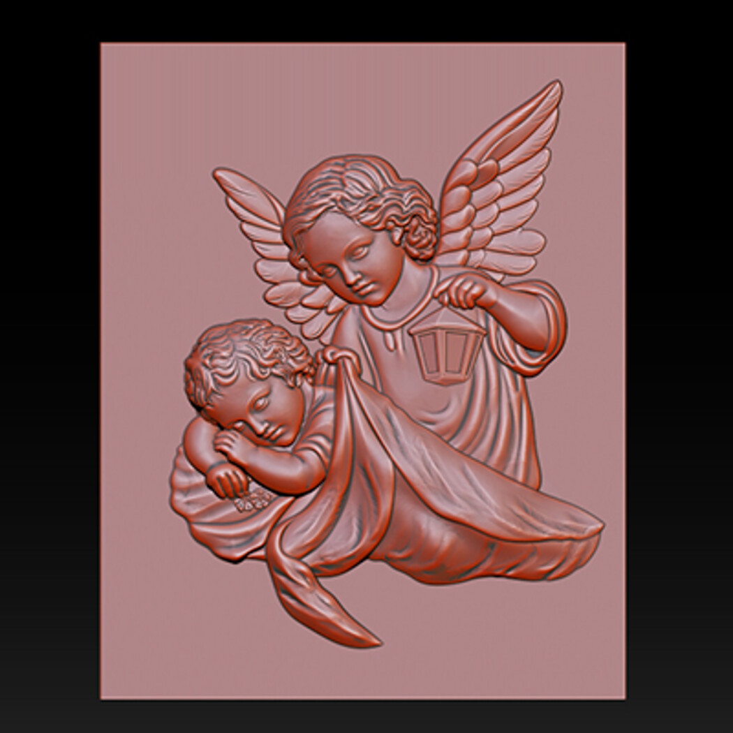 Guardian Angel with Child CNC Relief 3D Model STL OBJ ZTL Product Description This Guardian Angel with Child CNC Relief 3D Model is a beautifully detailed 2.5D bas-relief depicting a gentle angel protecting a sleeping child while holding a lantern, symbolizing care, guidance, faith, and protection. The soft facial expressions, flowing drapery, and finely sculpted wings make this model ideal for religious CNC carvings, memorial art, wall decorations, and spiritual interior projects. Optimized relief depth ensures smooth toolpaths and excellent carving results on CNC routers. Perfect for church decor, memorial plaques, home altars, wall panels, and fine wood or stone carving.