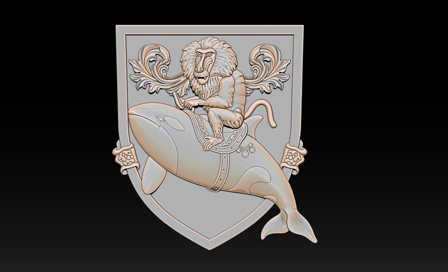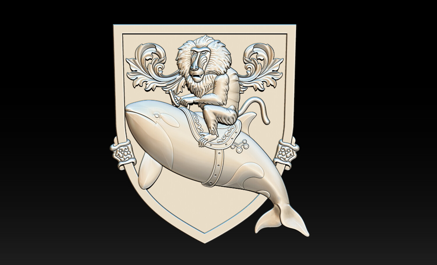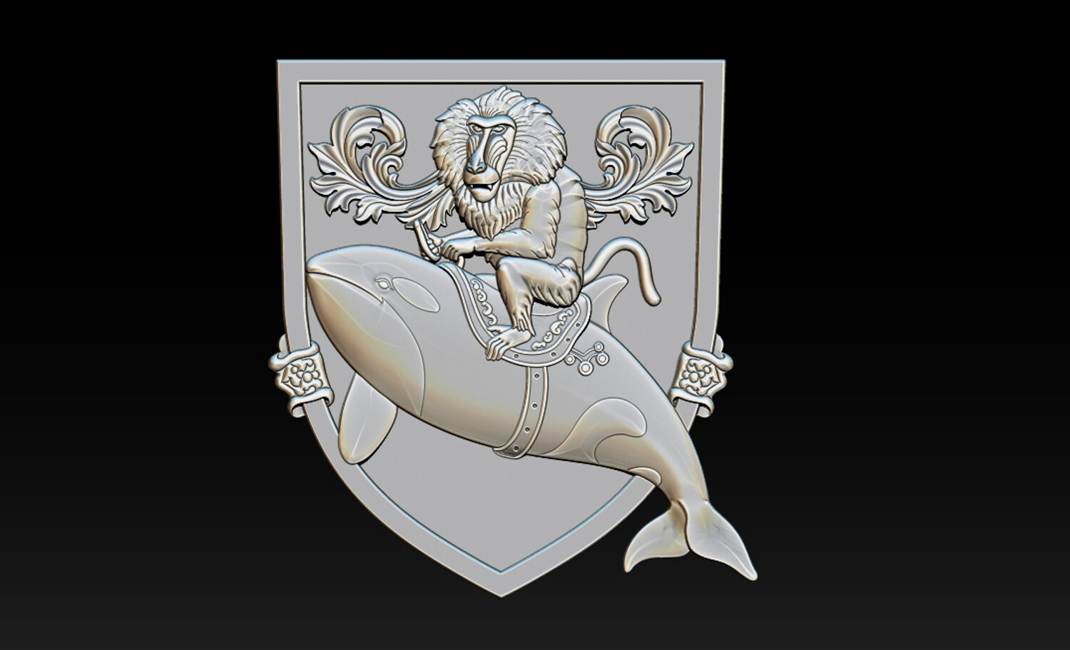 Whimsical Baboon Riding Orca Crest – 3D Relief for CNC & 3D Printing – STL, OBJ, ZTL