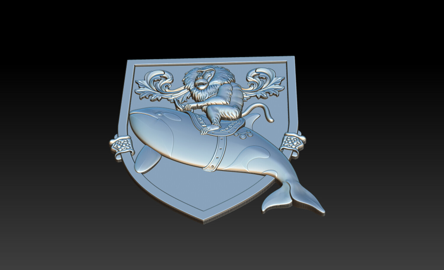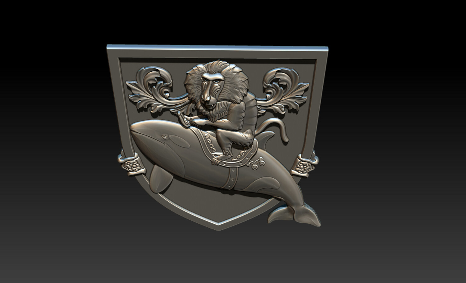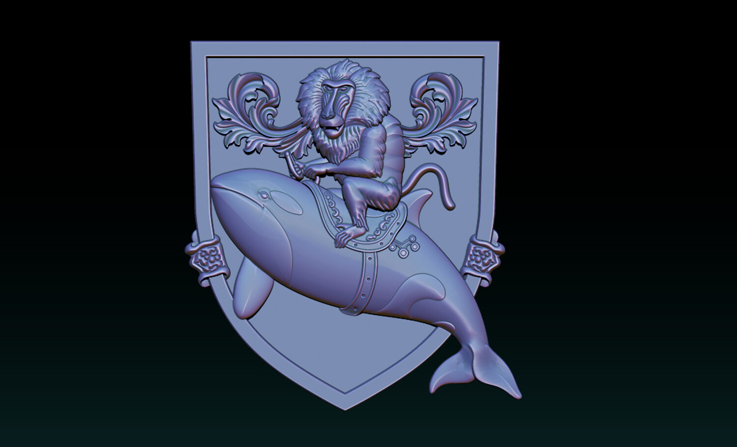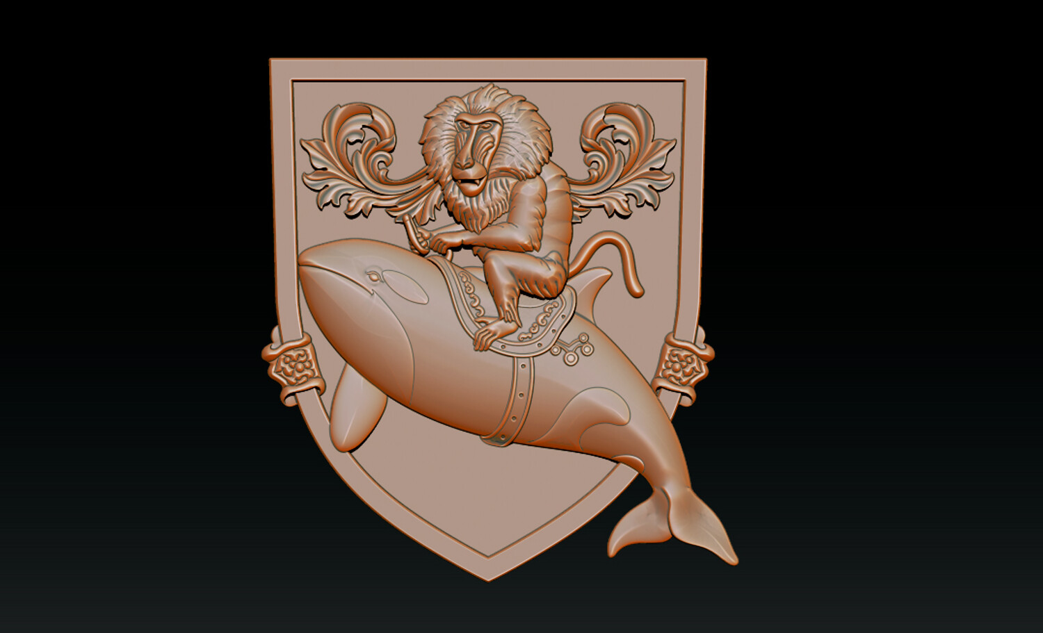 Whimsical Baboon Riding Orca Crest – 3D Relief for CNC & 3D Printing – STL, OBJ, ZTL