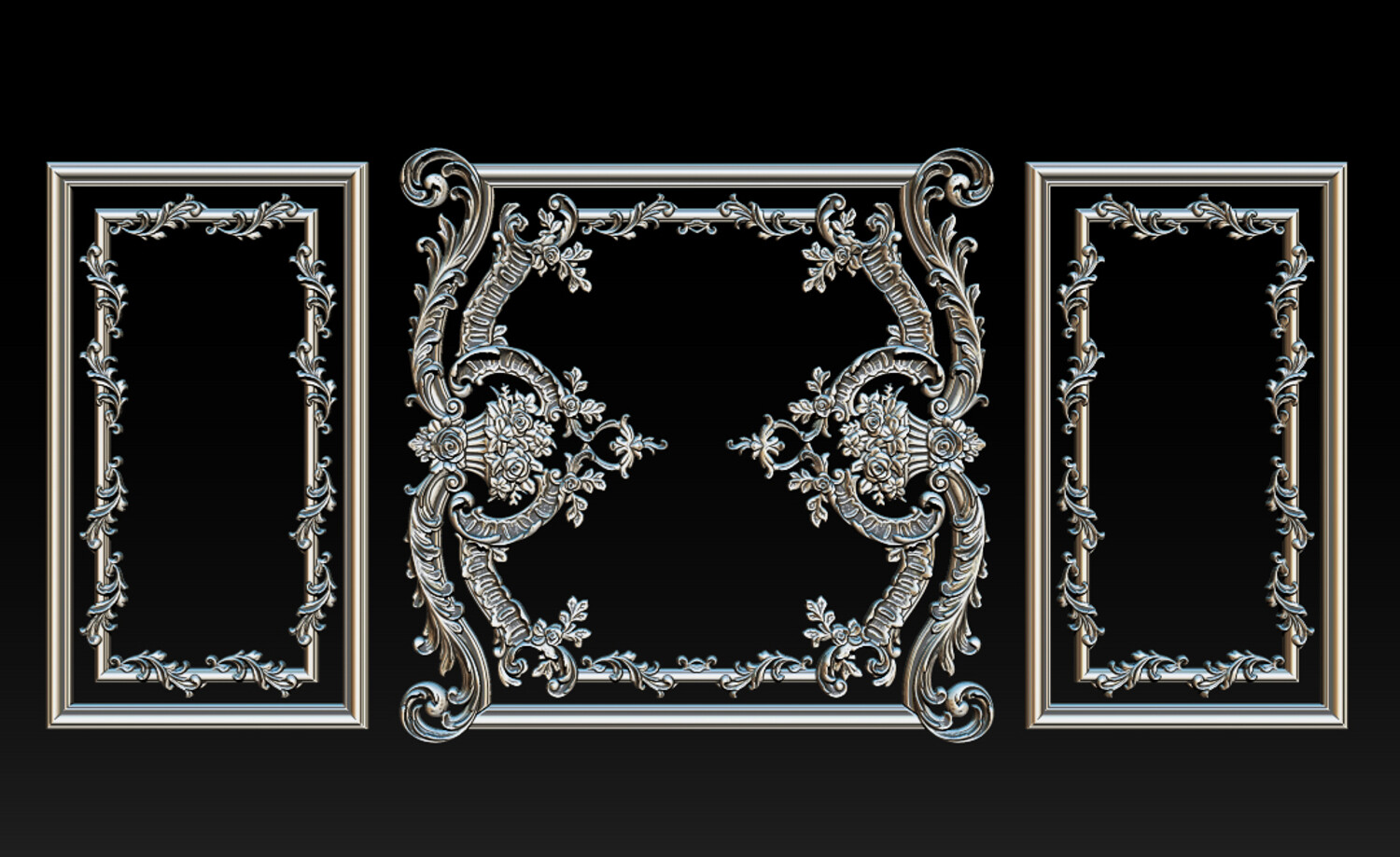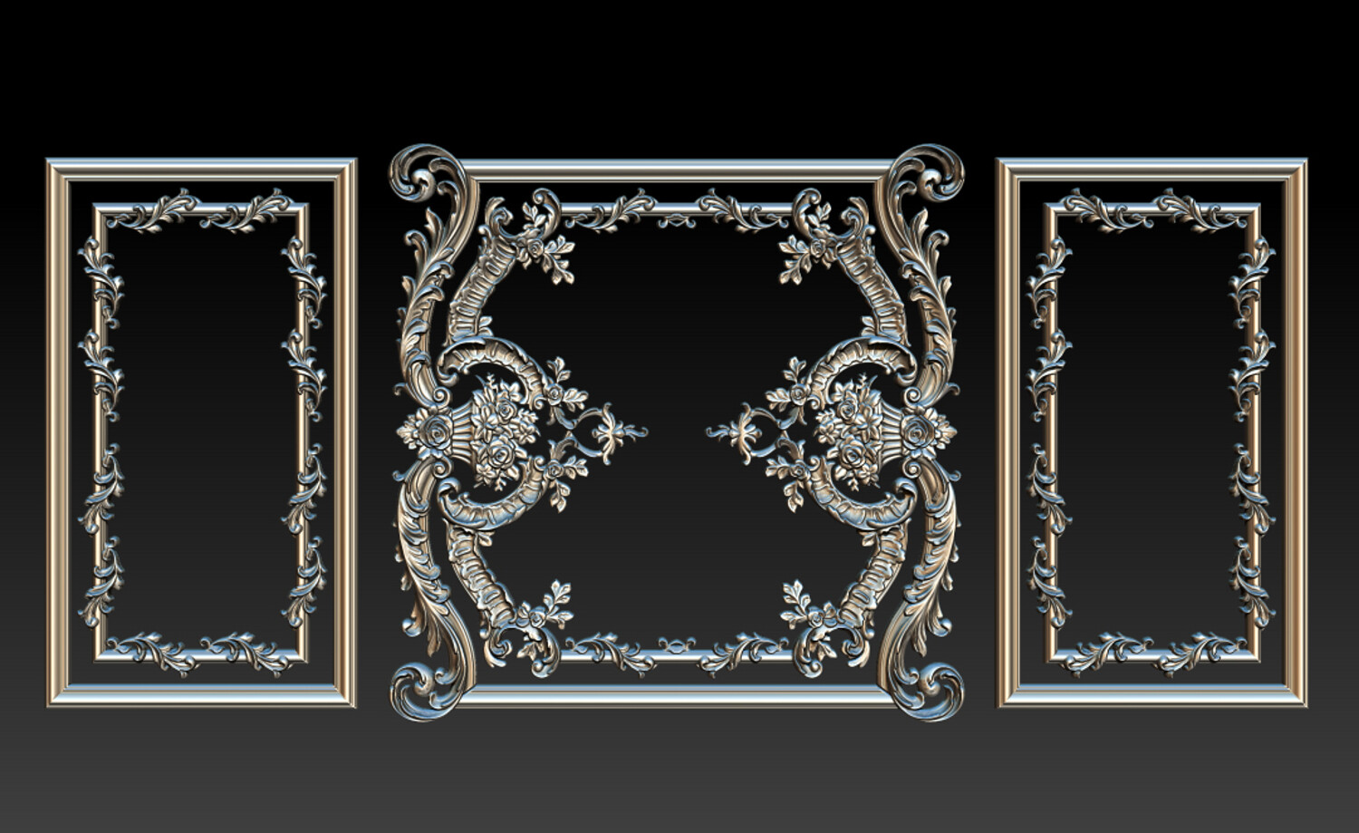 Applications Wooden door CNC carving Decorative wall panels and interior ornaments Classic & neoclassical furniture Architectural wood carving projects Key Features Classic European / Baroque ornamental style Deep, clean relief optimized for CNC routers High-detail floral and scrollwork elements STL-ready for production, OBJ for preview, ZTL for ZBrush inspection Suitable for professional workshops and high-end interior projects.