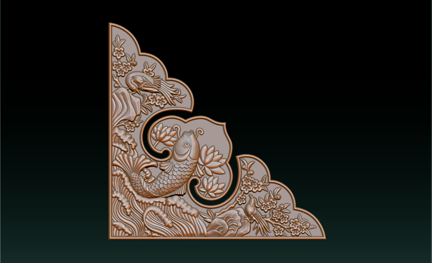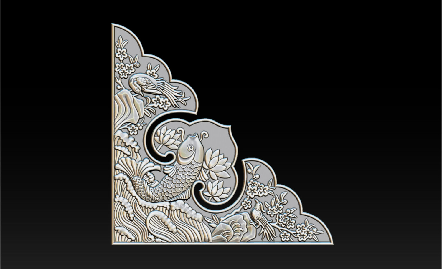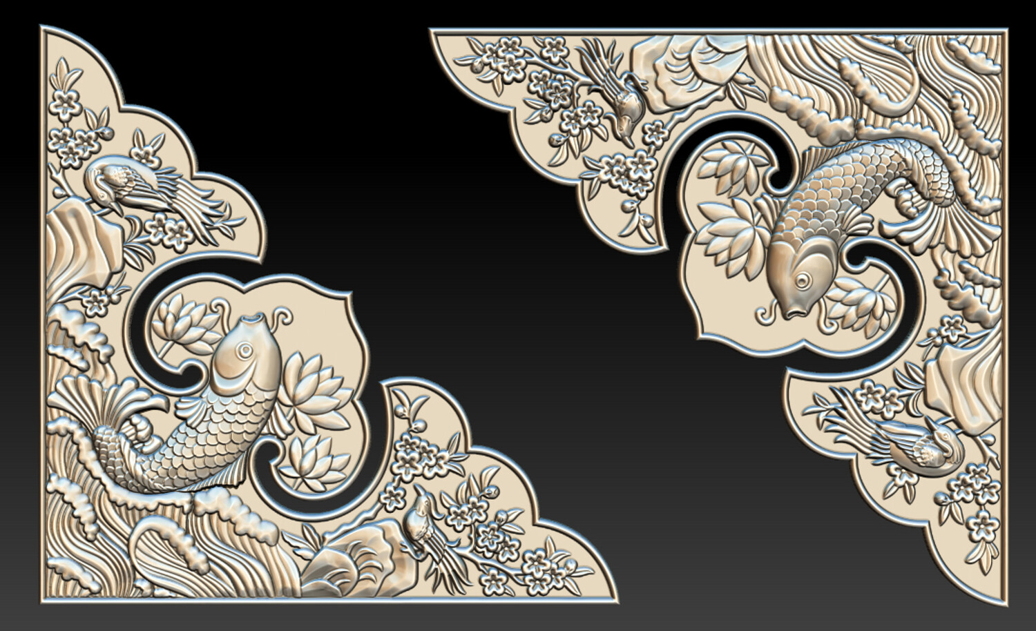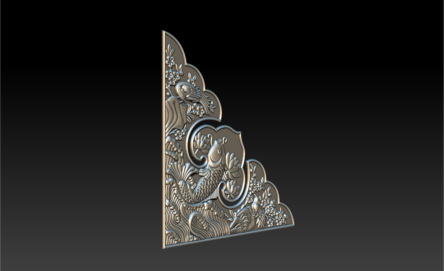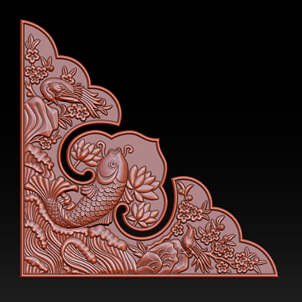 Oriental Koi Fish Corner Relief – 3D Model for Woodworking & CNC – STL, OBJ, ZTL