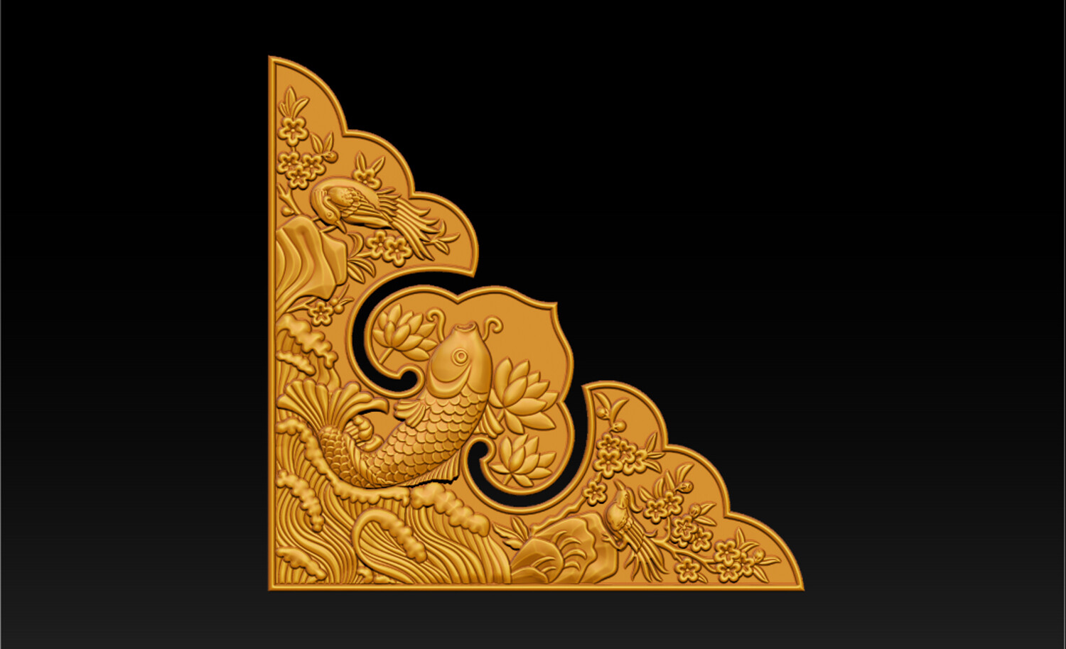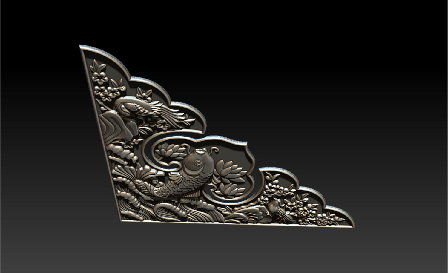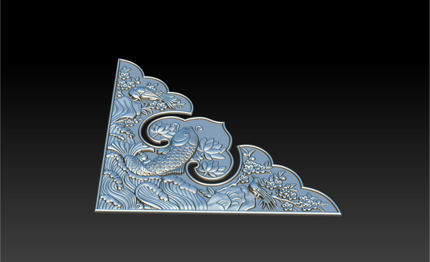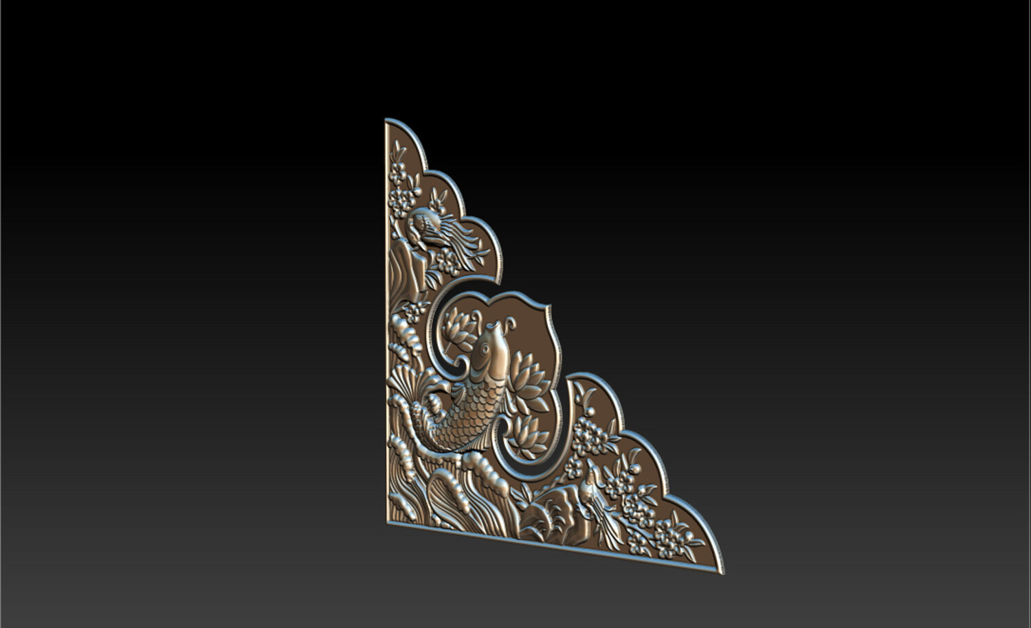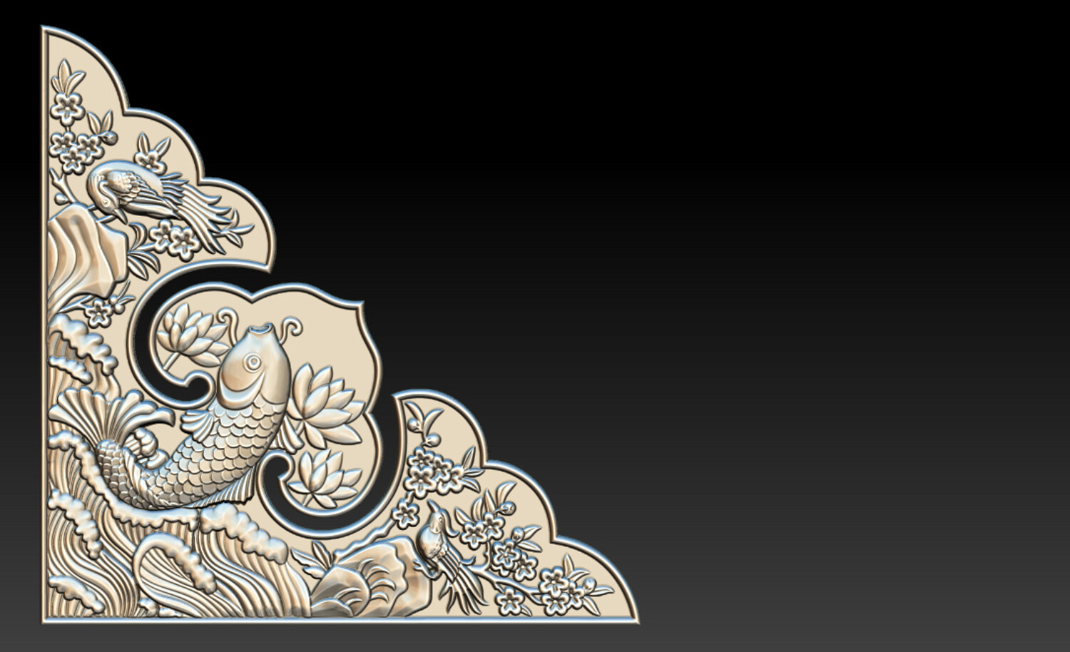 Oriental Koi Fish Corner Relief – 3D Model for Woodworking & CNC – STL, OBJ, ZTL