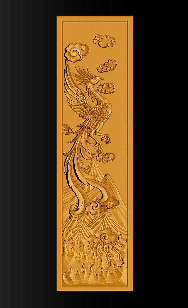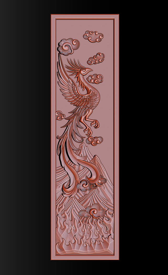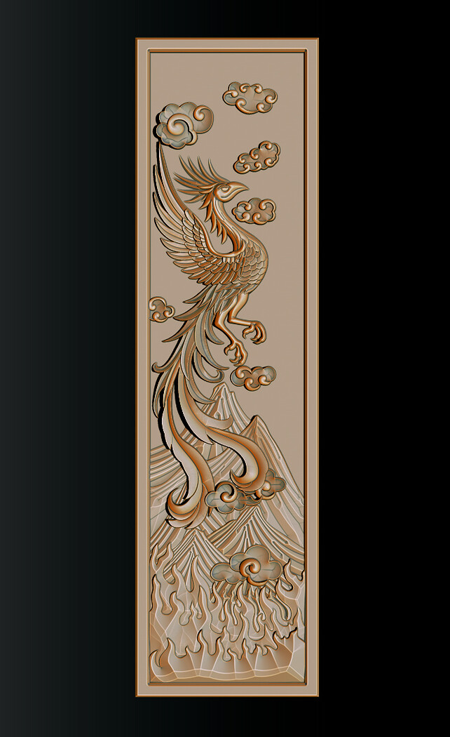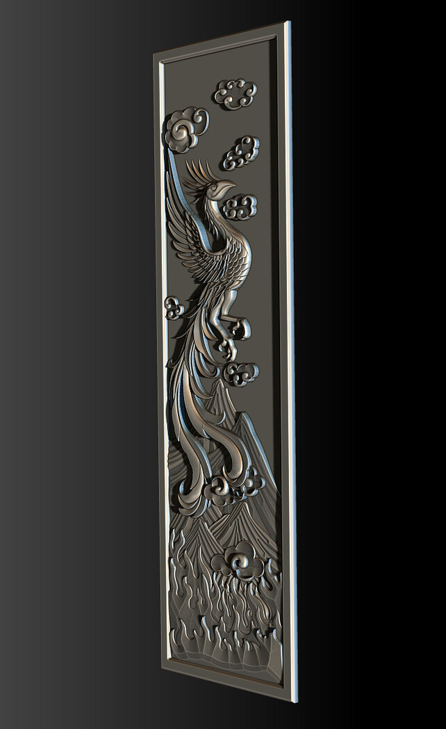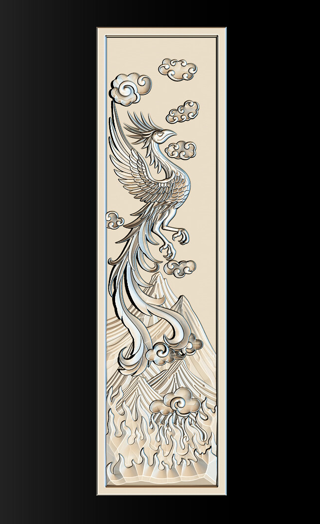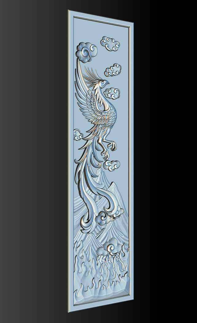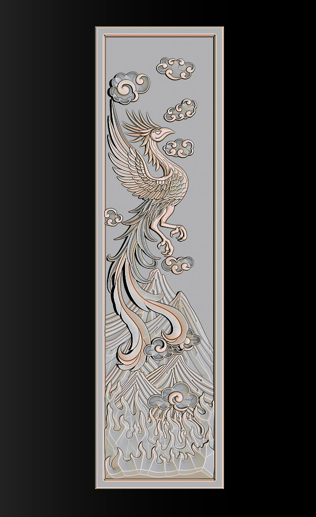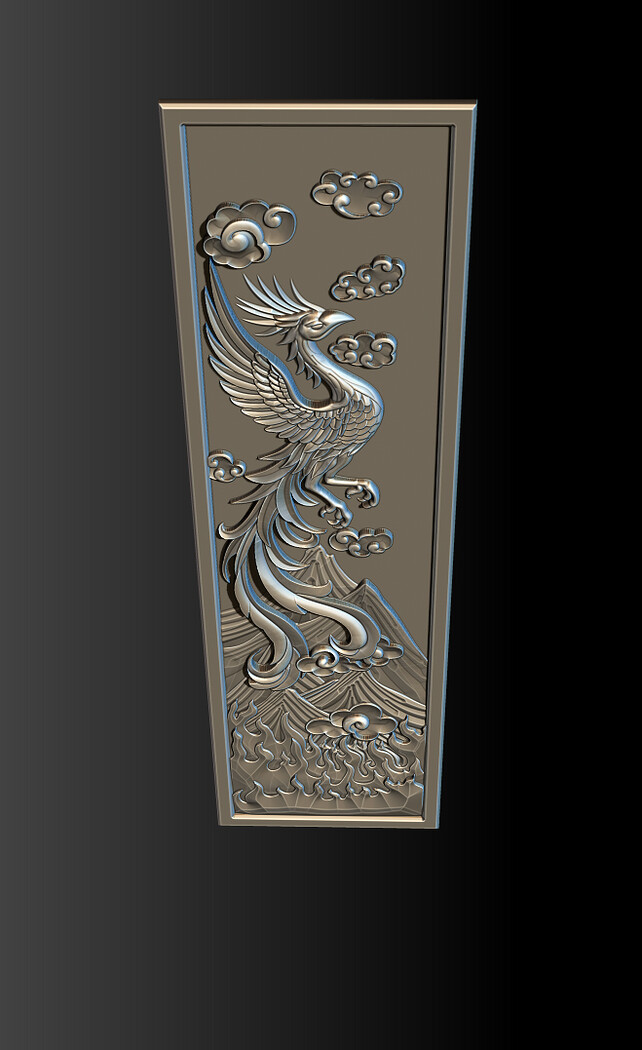 Phoenix Relief Panel – 2.5D CNC & 3D Print Model The Phoenix Relief Panel symbolizes rebirth, prosperity, grace, and noble power in Eastern culture. This elegant vertical composition features: A majestic phoenix rising above mountain peaks Flowing tail feathers full of movement and elegance Traditional swirling clouds Flame elements representing rebirth and energy Deep layered carving for strong shadow and dimensional effect Every feather is sculpted with refined detailing, creating a dynamic and luxurious appearance when carved in wood or cast in other materials. The tall vertical layout makes it ideal for architectural decoration, temple panels, interior wall art, or statement furniture pieces.
