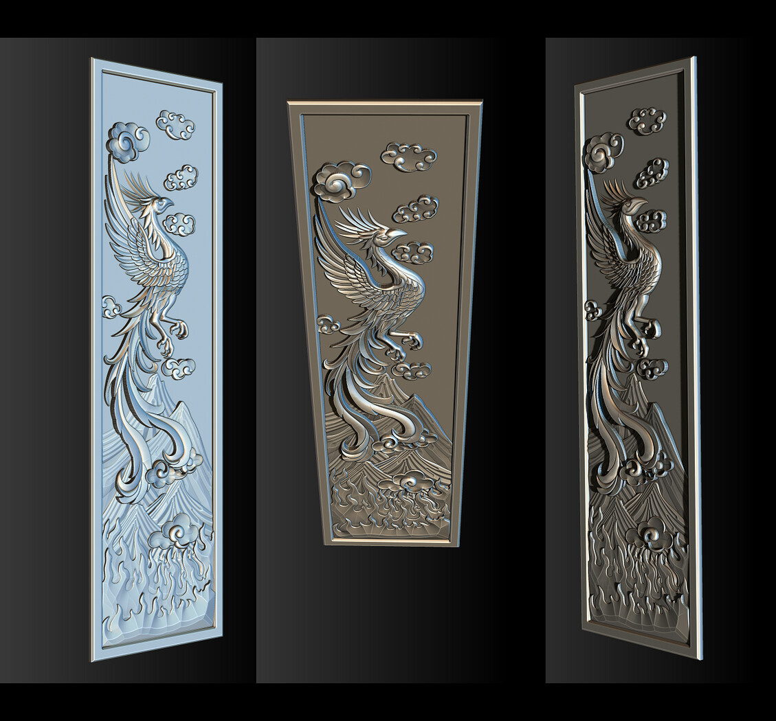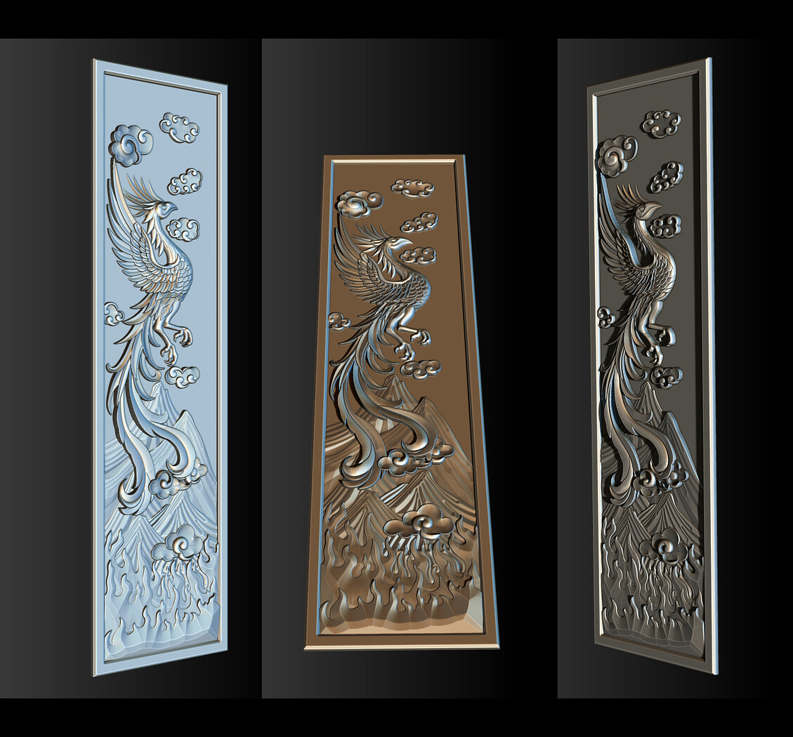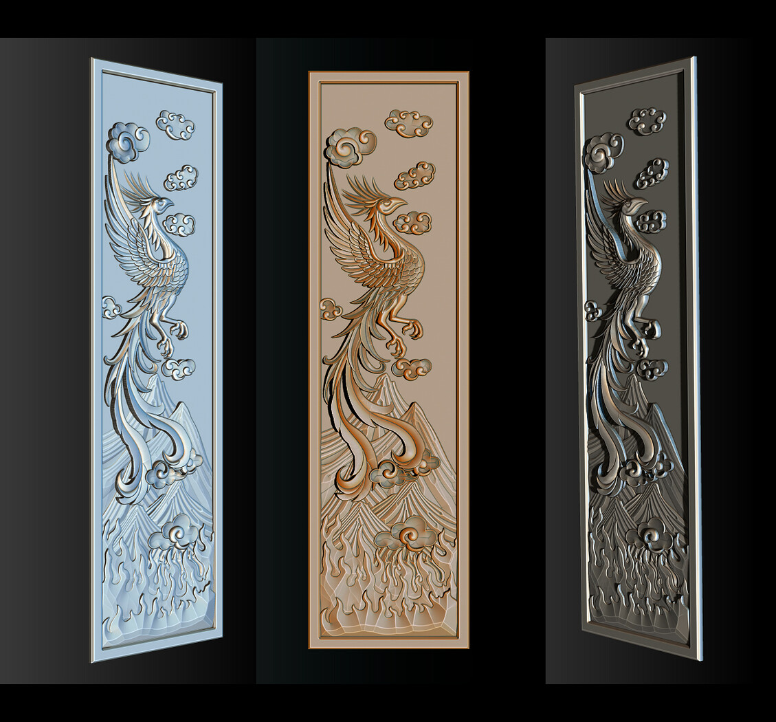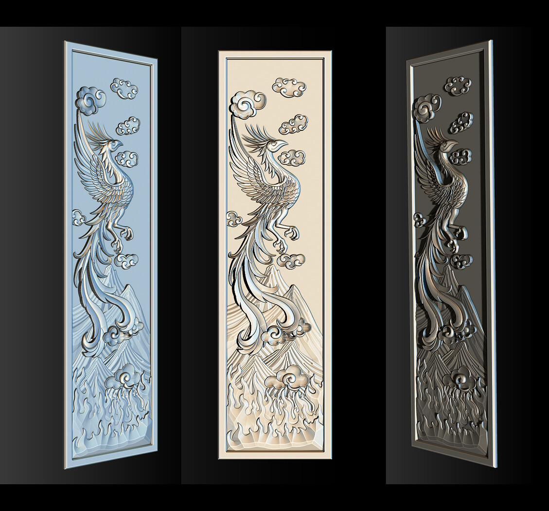 Phoenix Relief Panel – 2.5D CNC & 3D Print Model The Phoenix Relief Panel symbolizes rebirth, prosperity, grace, and noble power in Eastern culture. This elegant vertical composition features: A majestic phoenix rising above mountain peaks Flowing tail feathers full of movement and elegance Traditional swirling clouds Flame elements representing rebirth and energy Deep layered carving for strong shadow and dimensional effect Every feather is sculpted with refined detailing, creating a dynamic and luxurious appearance when carved in wood or cast in other materials. The tall vertical layout makes it ideal for architectural decoration, temple panels, interior wall art, or statement furniture pieces.