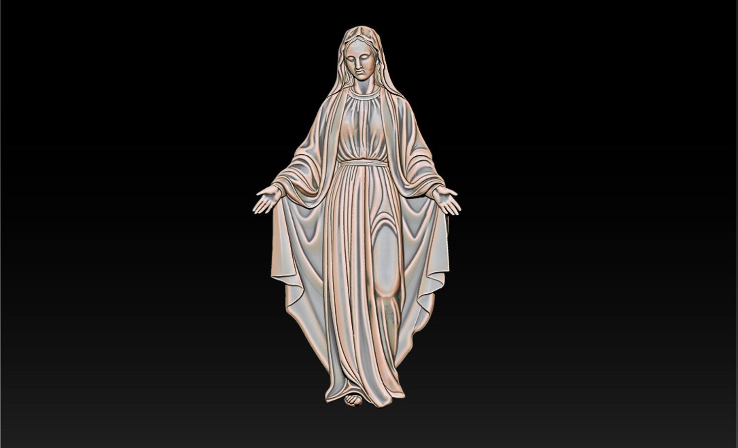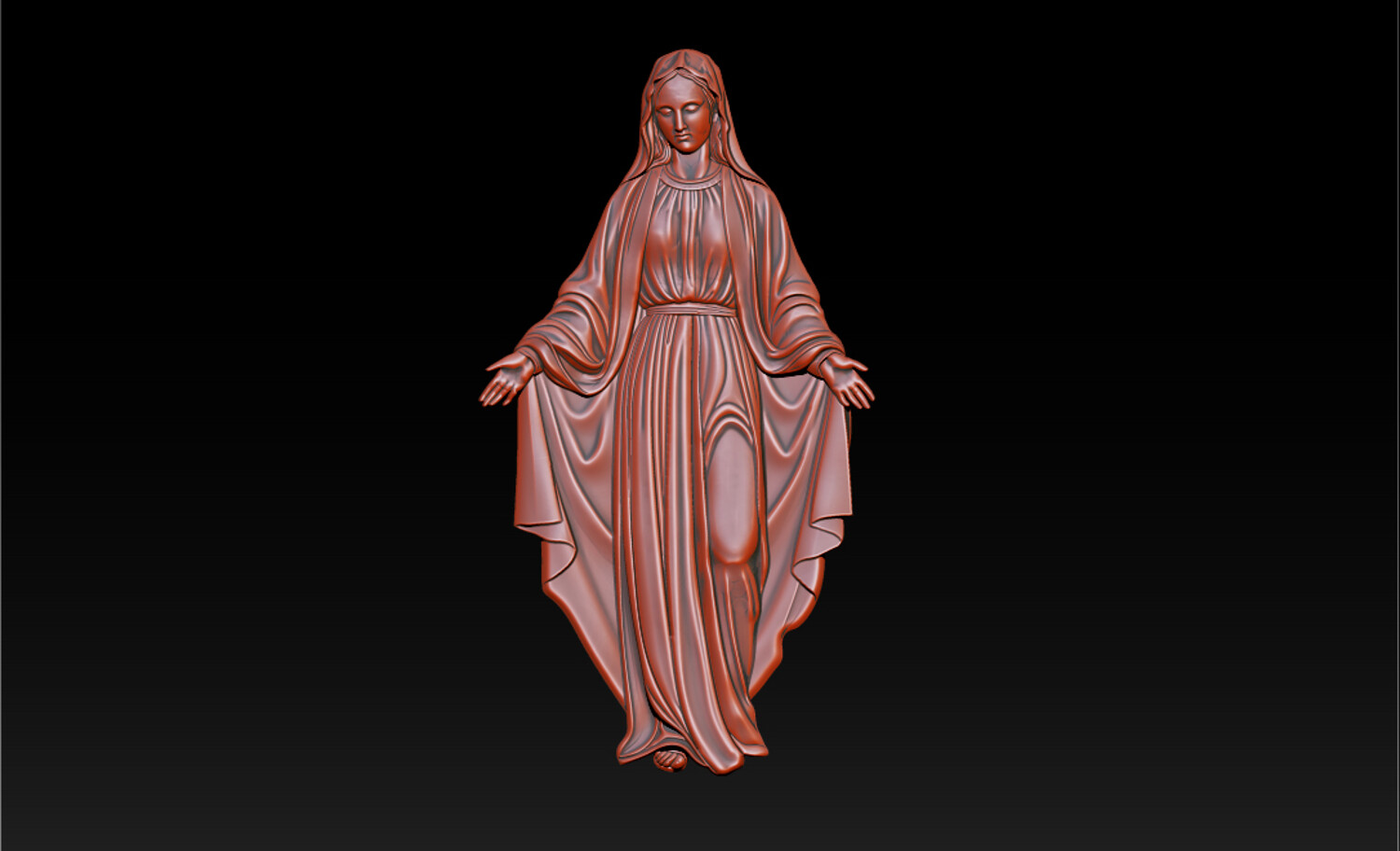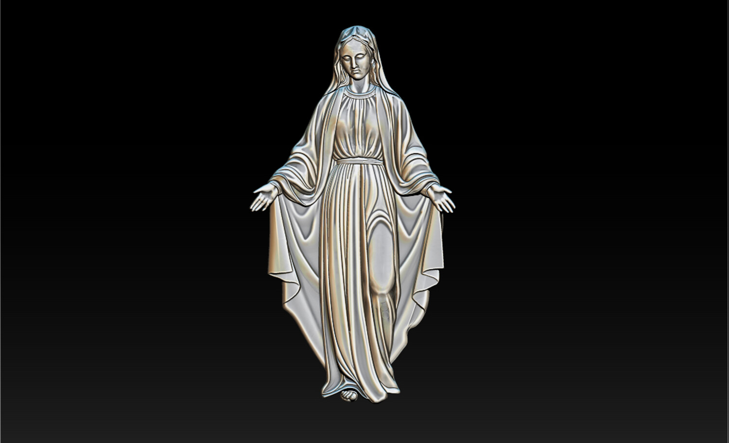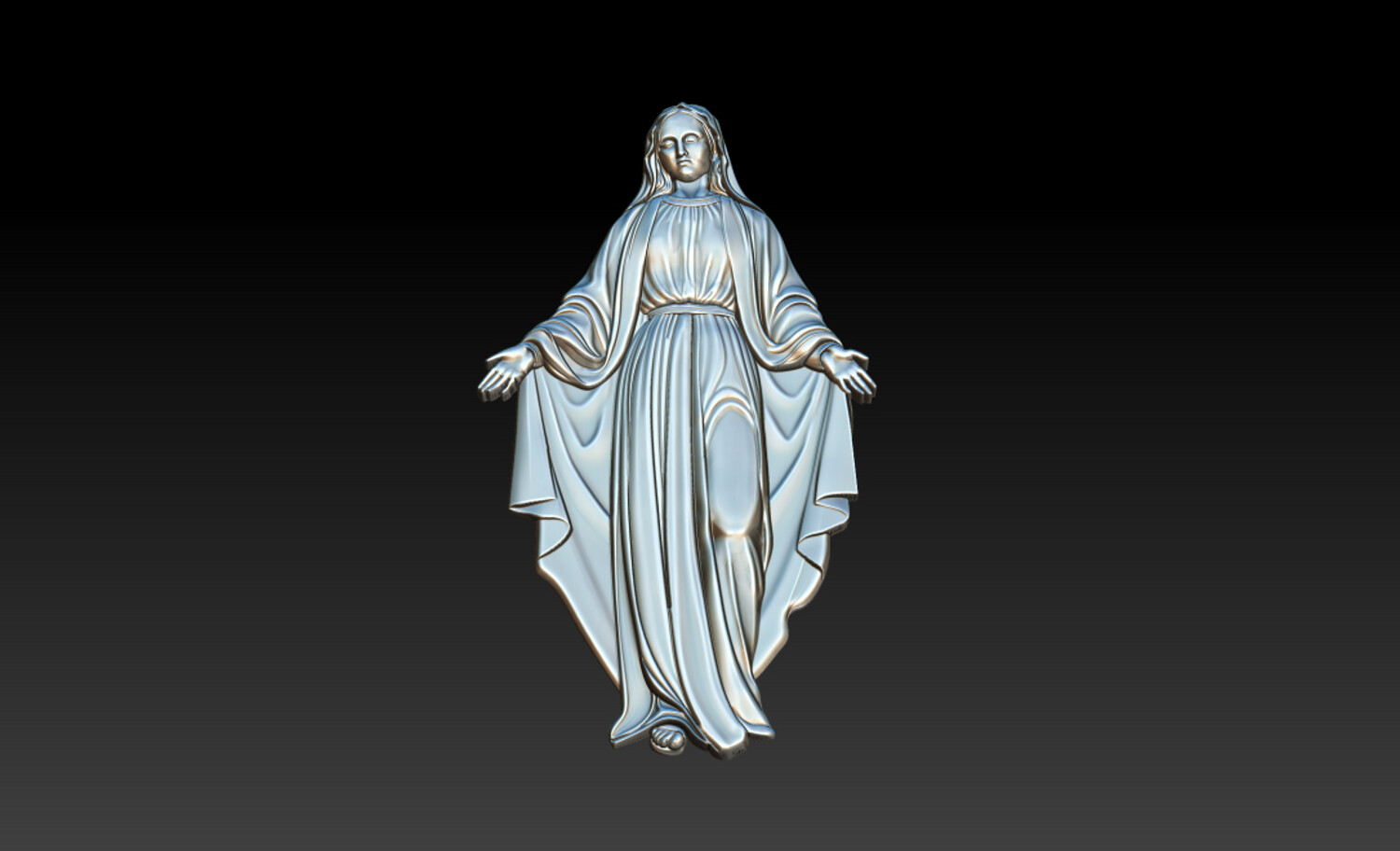 Virgin Mary Relief – 3D Model for CNC Carving and Religious Art This Virgin Mary 3D Relief Model presents a graceful and serene representation of the Blessed Mother with open arms, symbolizing love, compassion, and divine protection. The sculpture features beautifully flowing robes with soft natural folds, carefully sculpted to create depth and elegance in the relief. The gentle expression and balanced posture convey peace and spiritual comfort, making this design perfect for religious artworks and sacred decorations. Every detail has been crafted to ensure clean carving results and smooth surfaces, making the model ideal for both CNC machining and high-resolution 3D printing. This design is perfect for creating religious wall art, church decorations, memorial plaques, and devotional sculptures.