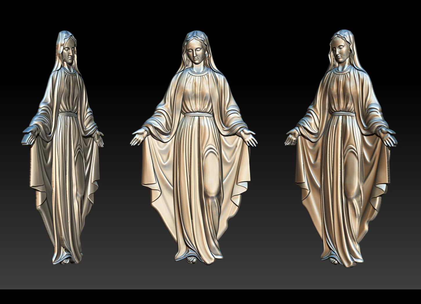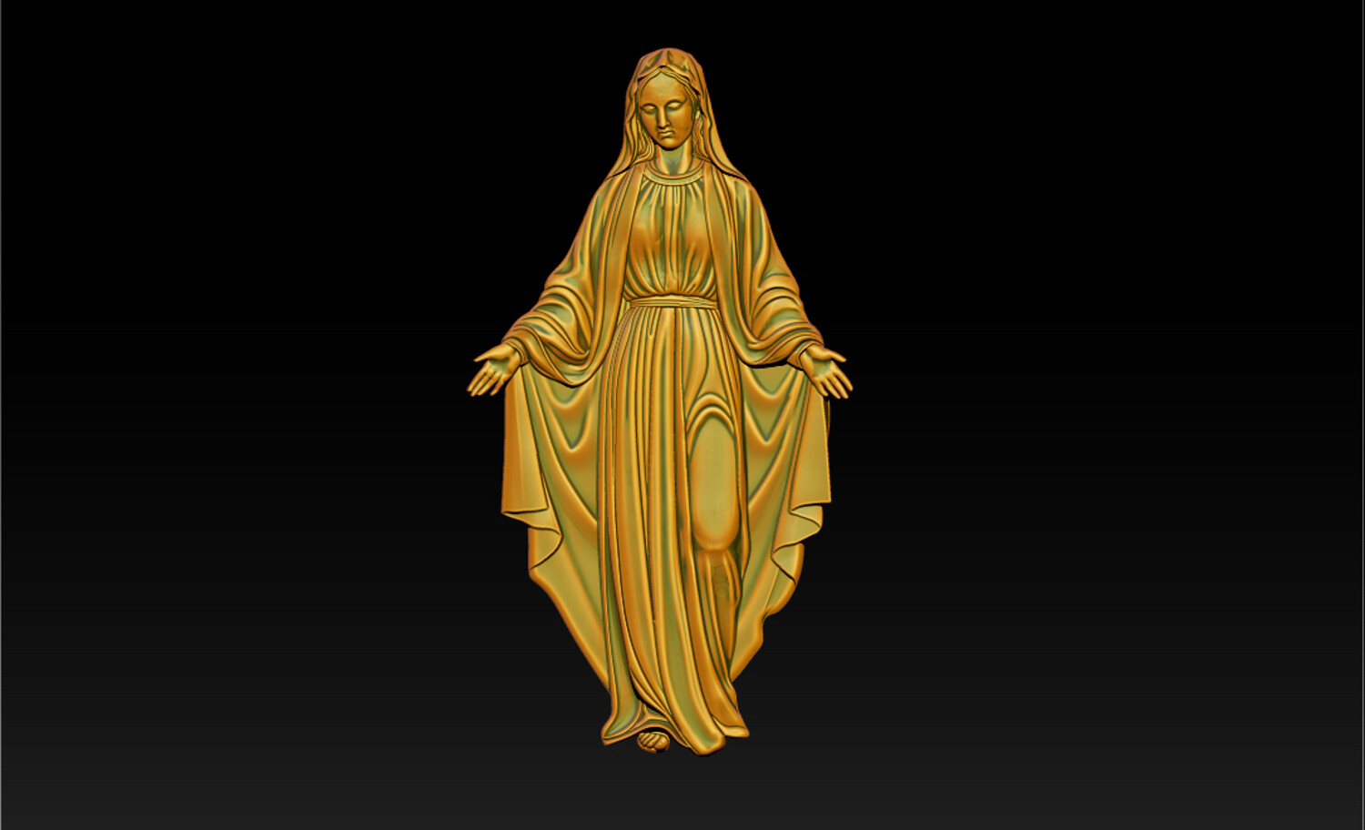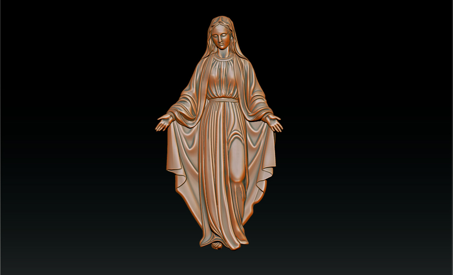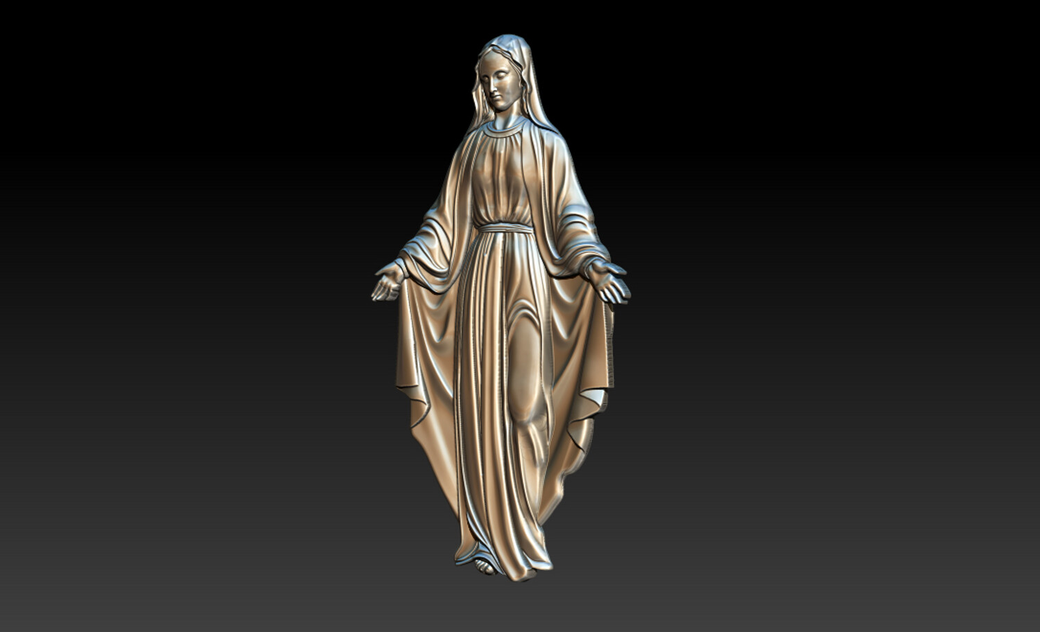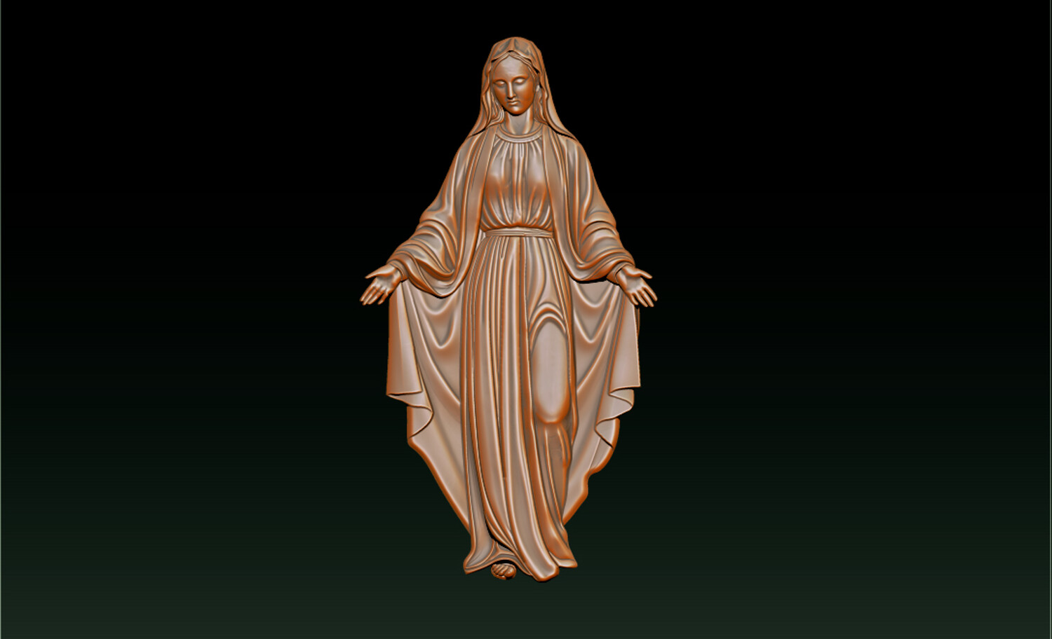 Virgin Mary Relief – 3D Model for CNC Carving and Religious Art This Virgin Mary 3D Relief Model presents a graceful and serene representation of the Blessed Mother with open arms, symbolizing love, compassion, and divine protection. The sculpture features beautifully flowing robes with soft natural folds, carefully sculpted to create depth and elegance in the relief. The gentle expression and balanced posture convey peace and spiritual comfort, making this design perfect for religious artworks and sacred decorations. Every detail has been crafted to ensure clean carving results and smooth surfaces, making the model ideal for both CNC machining and high-resolution 3D printing. This design is perfect for creating religious wall art, church decorations, memorial plaques, and devotional sculptures.