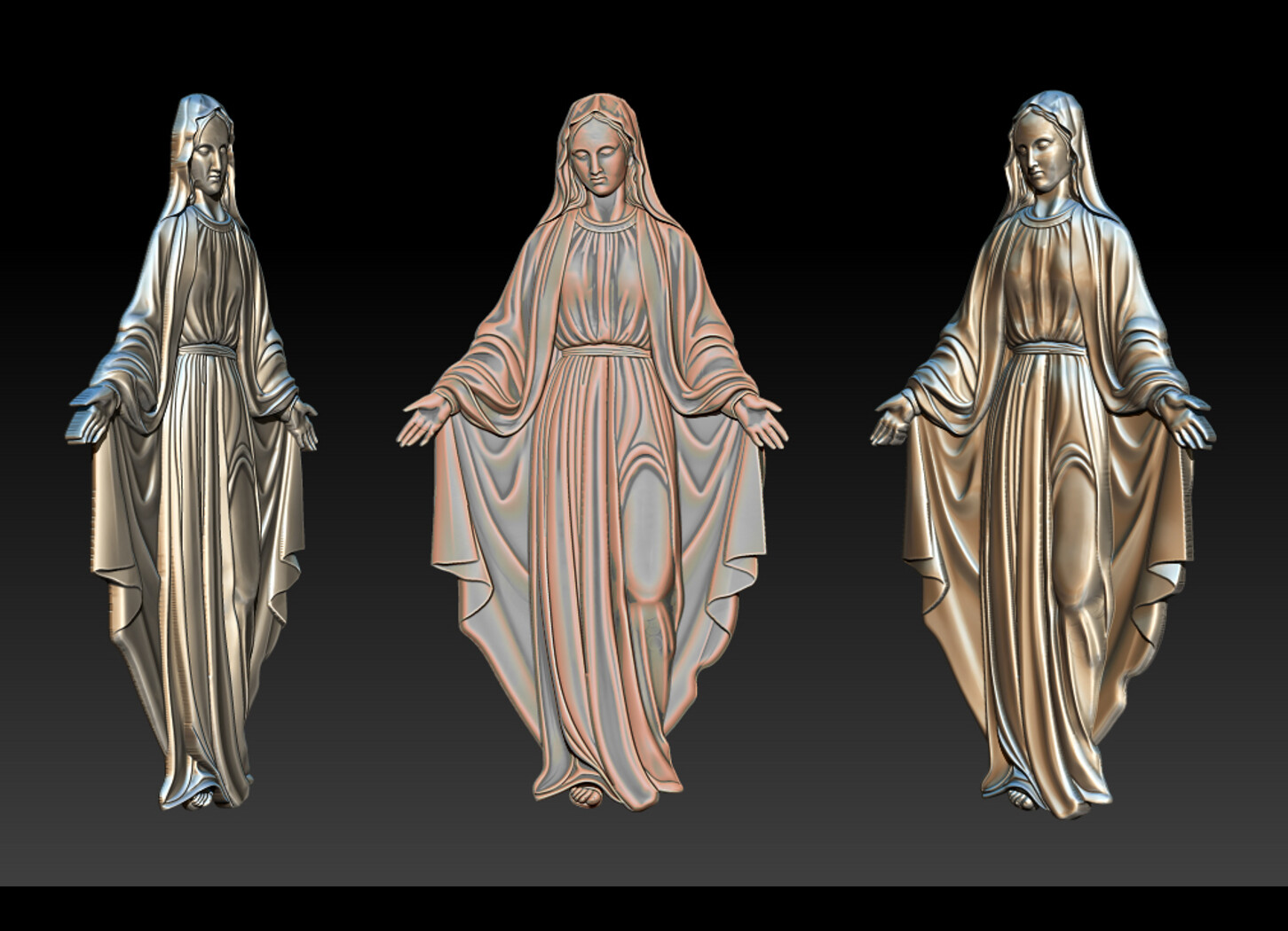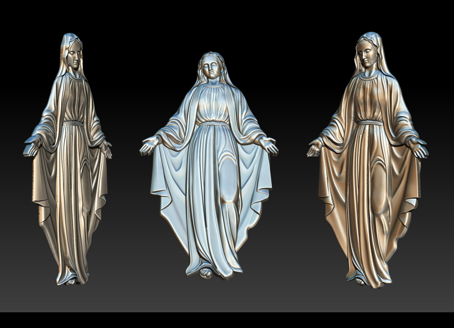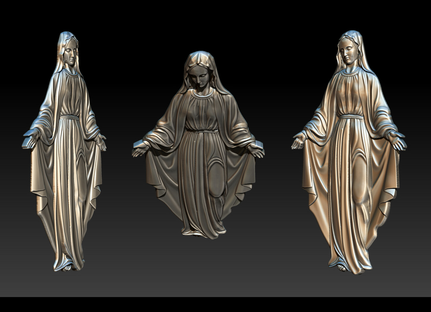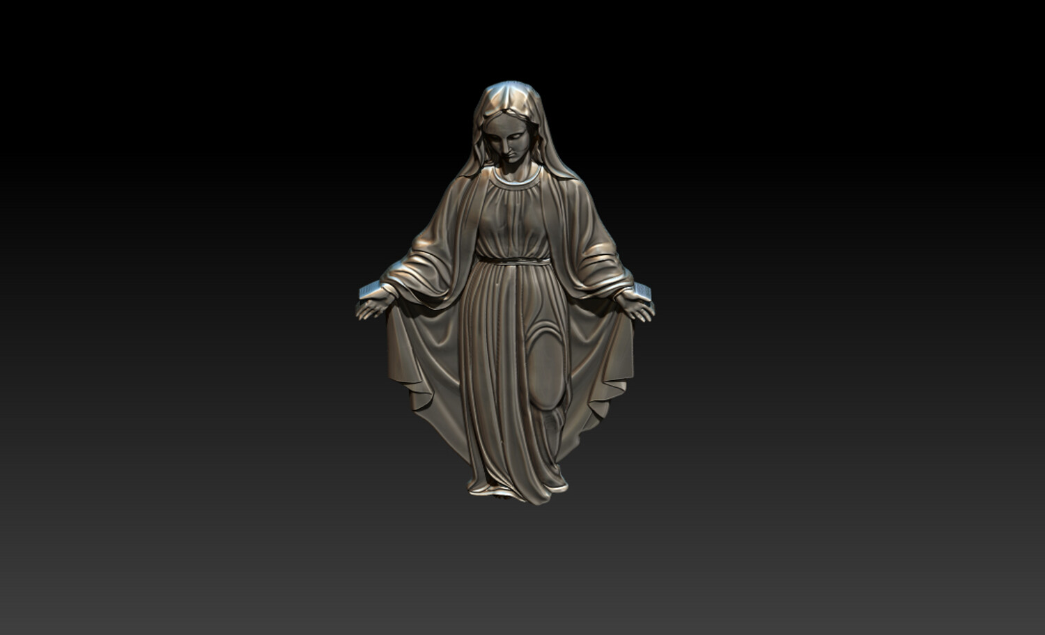 Virgin Mary Relief – 3D Model for CNC Carving and Religious Art This Virgin Mary 3D Relief Model presents a graceful and serene representation of the Blessed Mother with open arms, symbolizing love, compassion, and divine protection. The sculpture features beautifully flowing robes with soft natural folds, carefully sculpted to create depth and elegance in the relief. The gentle expression and balanced posture convey peace and spiritual comfort, making this design perfect for religious artworks and sacred decorations. Every detail has been crafted to ensure clean carving results and smooth surfaces, making the model ideal for both CNC machining and high-resolution 3D printing. This design is perfect for creating religious wall art, church decorations, memorial plaques, and devotional sculptures.