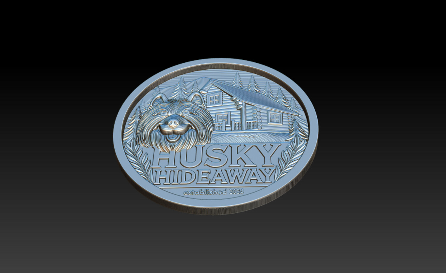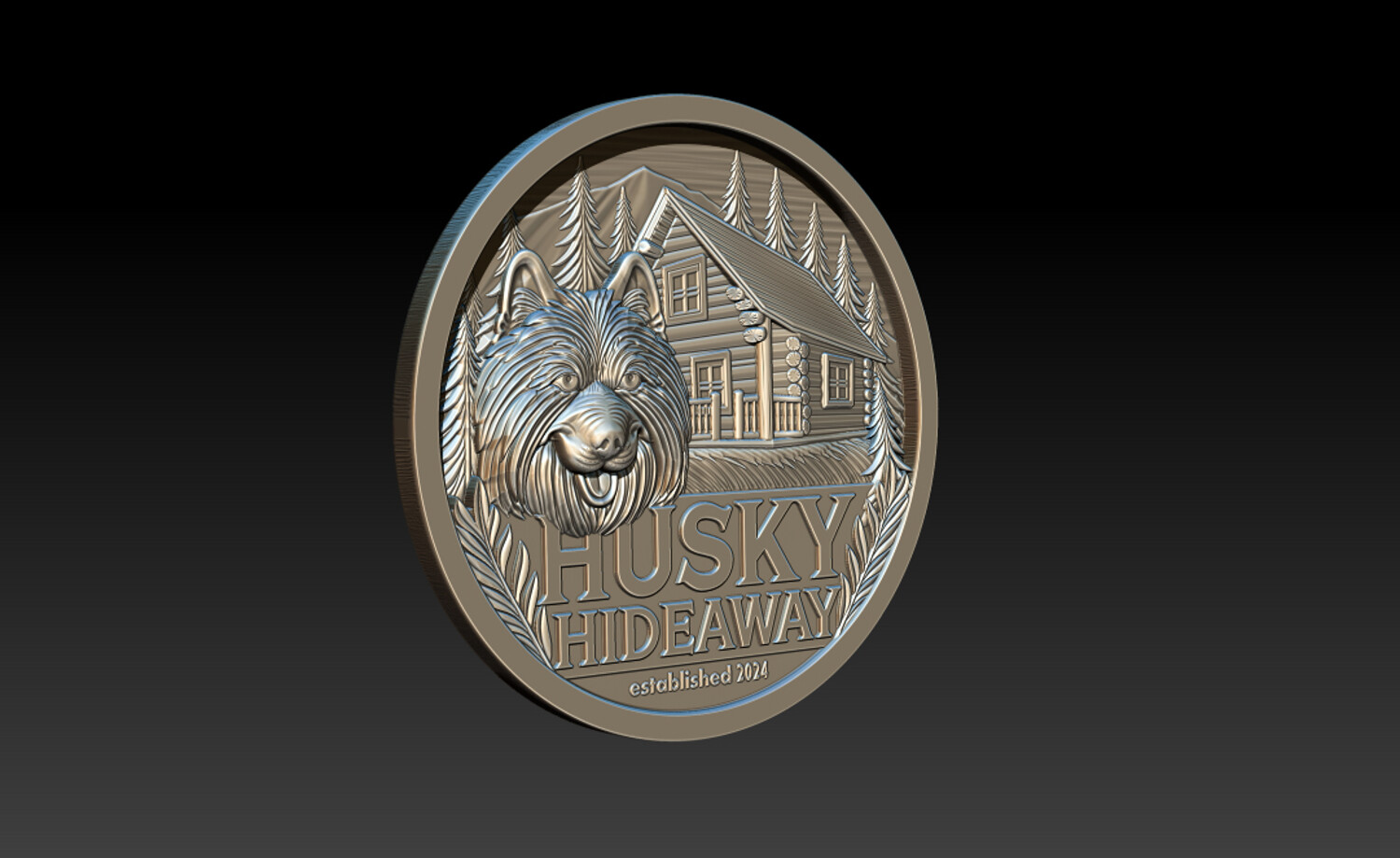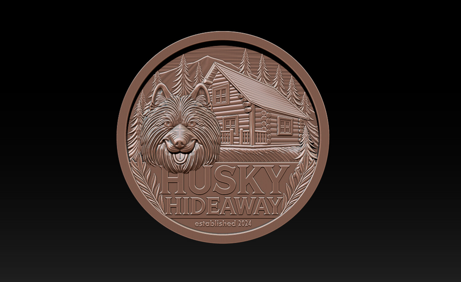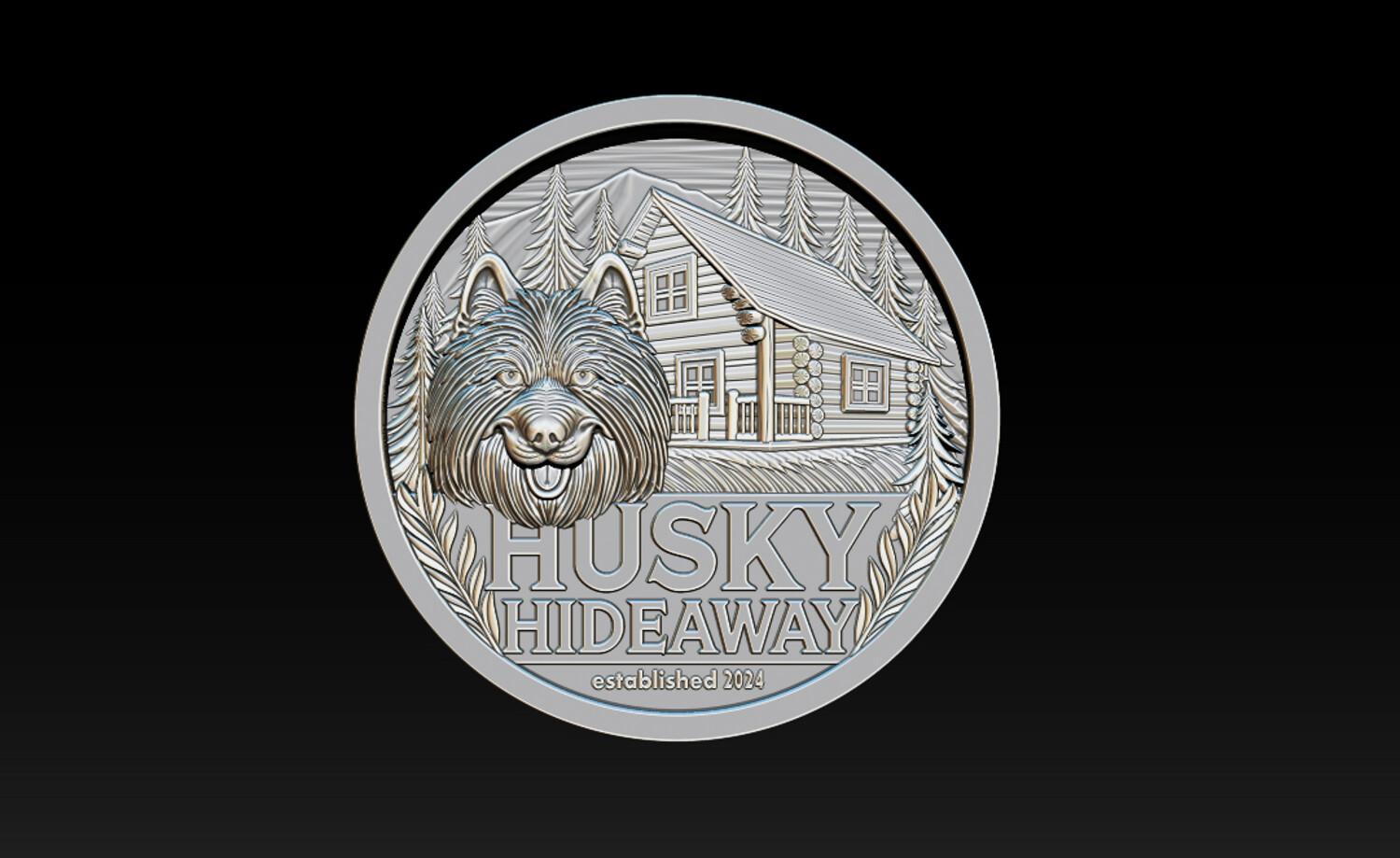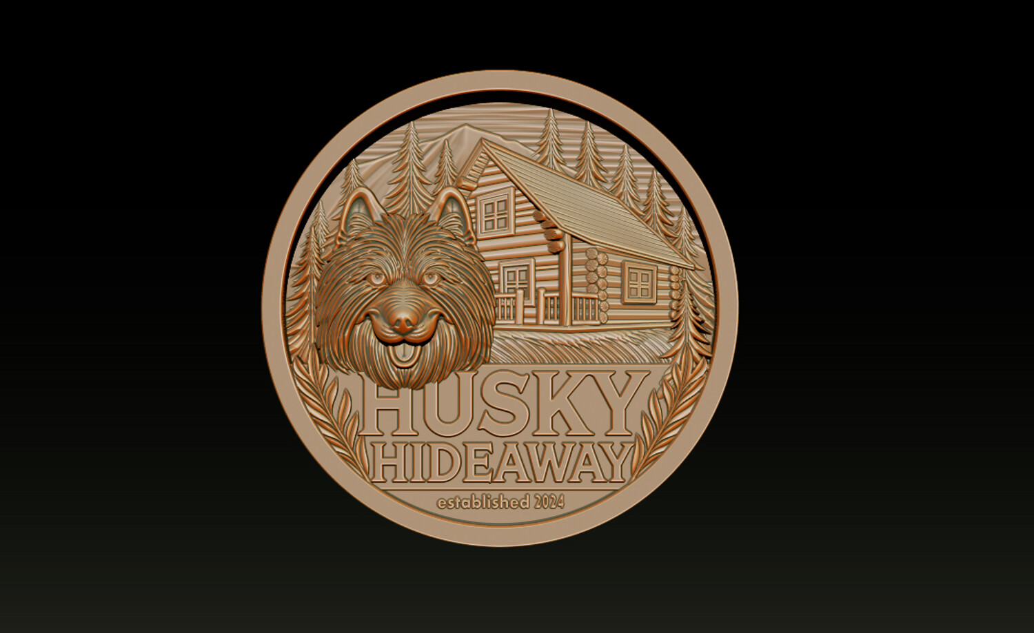 Husky Hideaway 2.5D Bas Relief – STL | OBJ | ZTL – CNC, 3D Print, Laser Engraving File