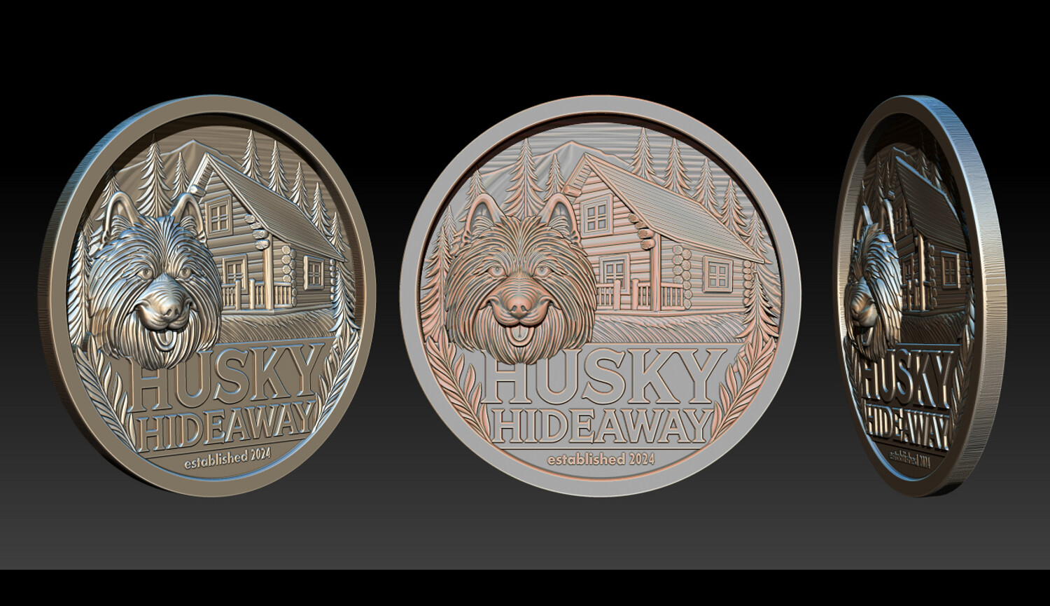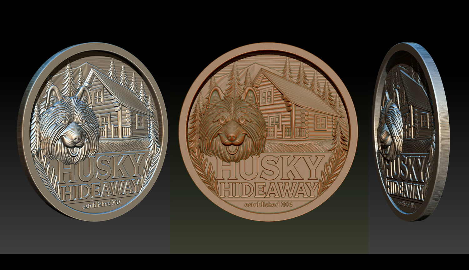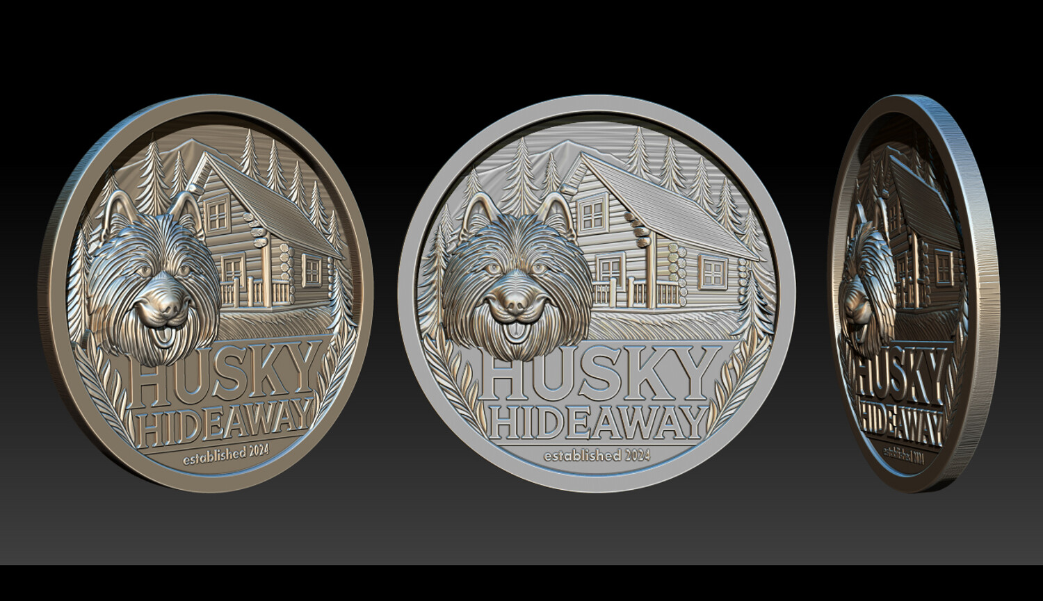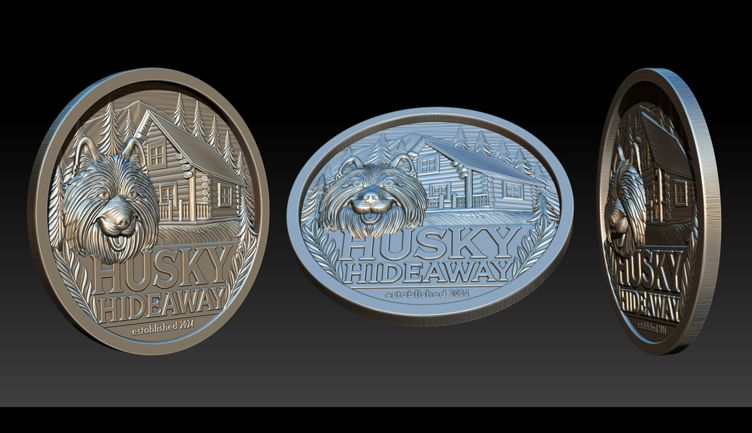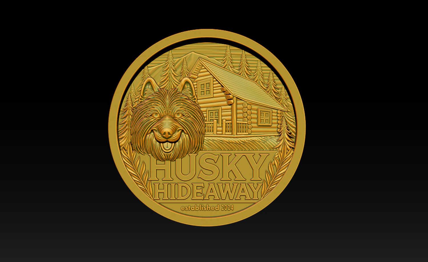 Husky Hideaway 2.5D Bas Relief – STL | OBJ | ZTL – CNC, 3D Print, Laser Engraving File