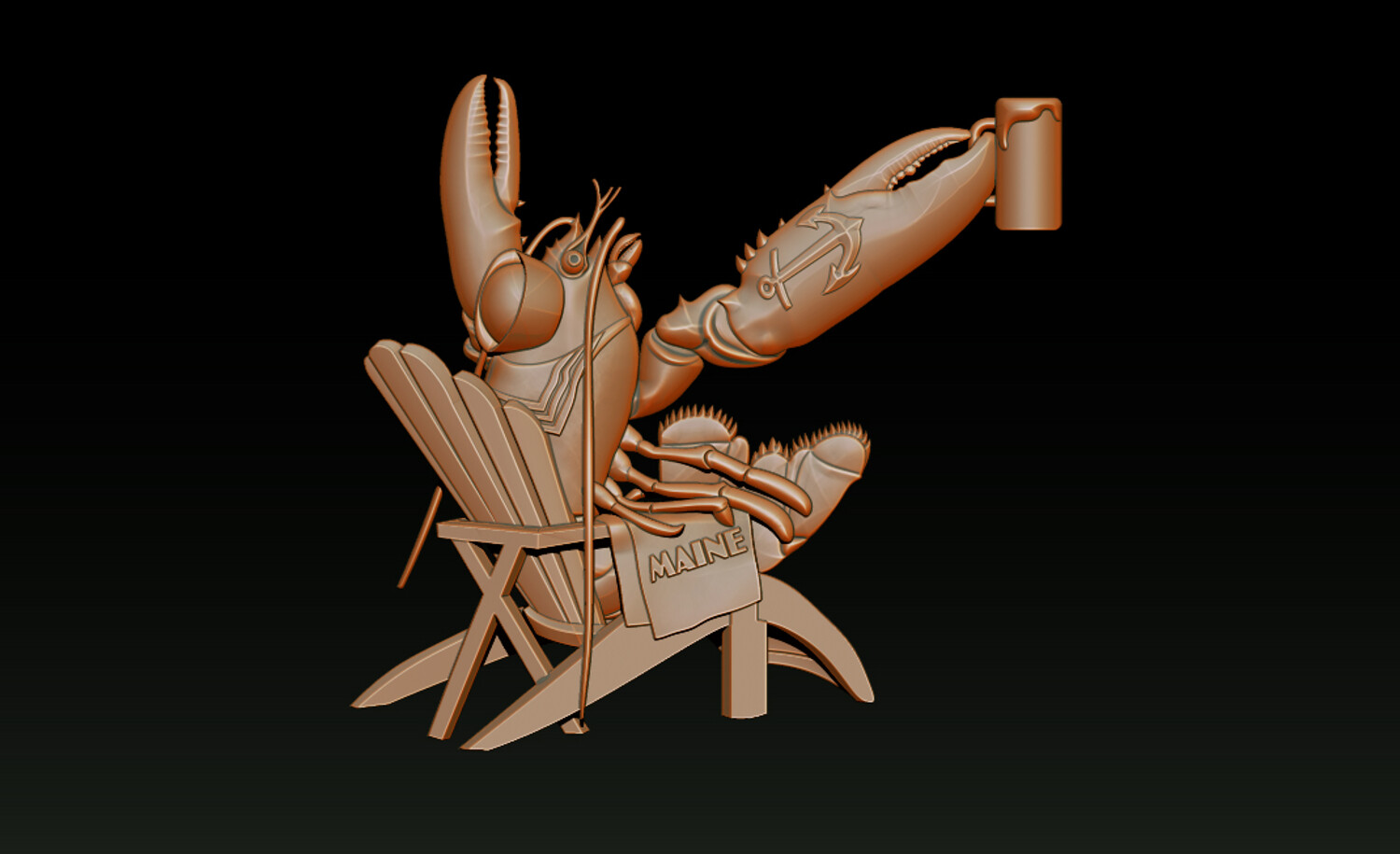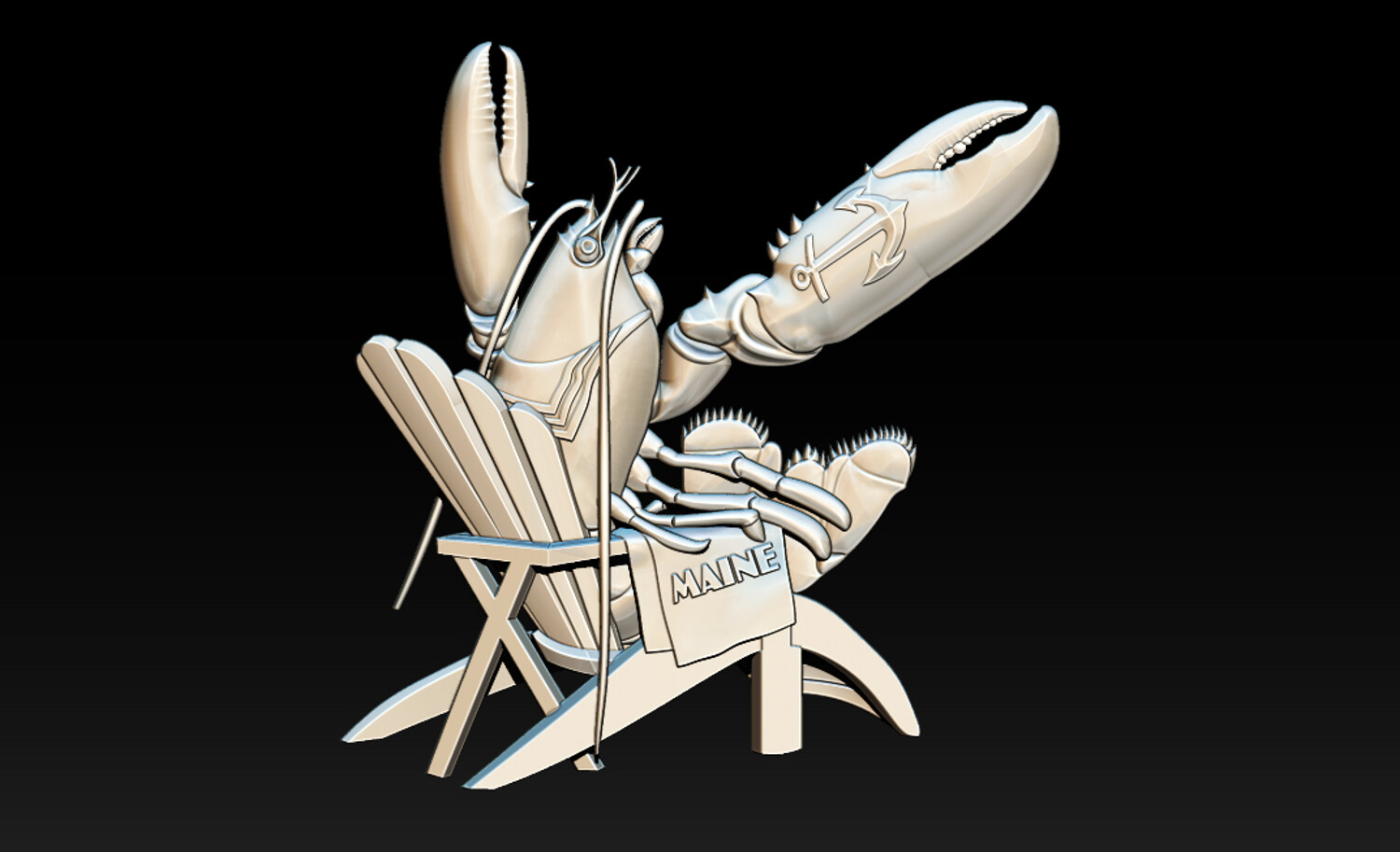 Bring a touch of coastal elegance to your craftsmanship with this premium Lobster Relief 3D model. Featuring a unique and artistic composition, a detailed lobster relaxing on a beach chair with a "MAINE" towel and a symbolic anchor on its claw, this model is a perfect blend of nautical charm and technical precision.