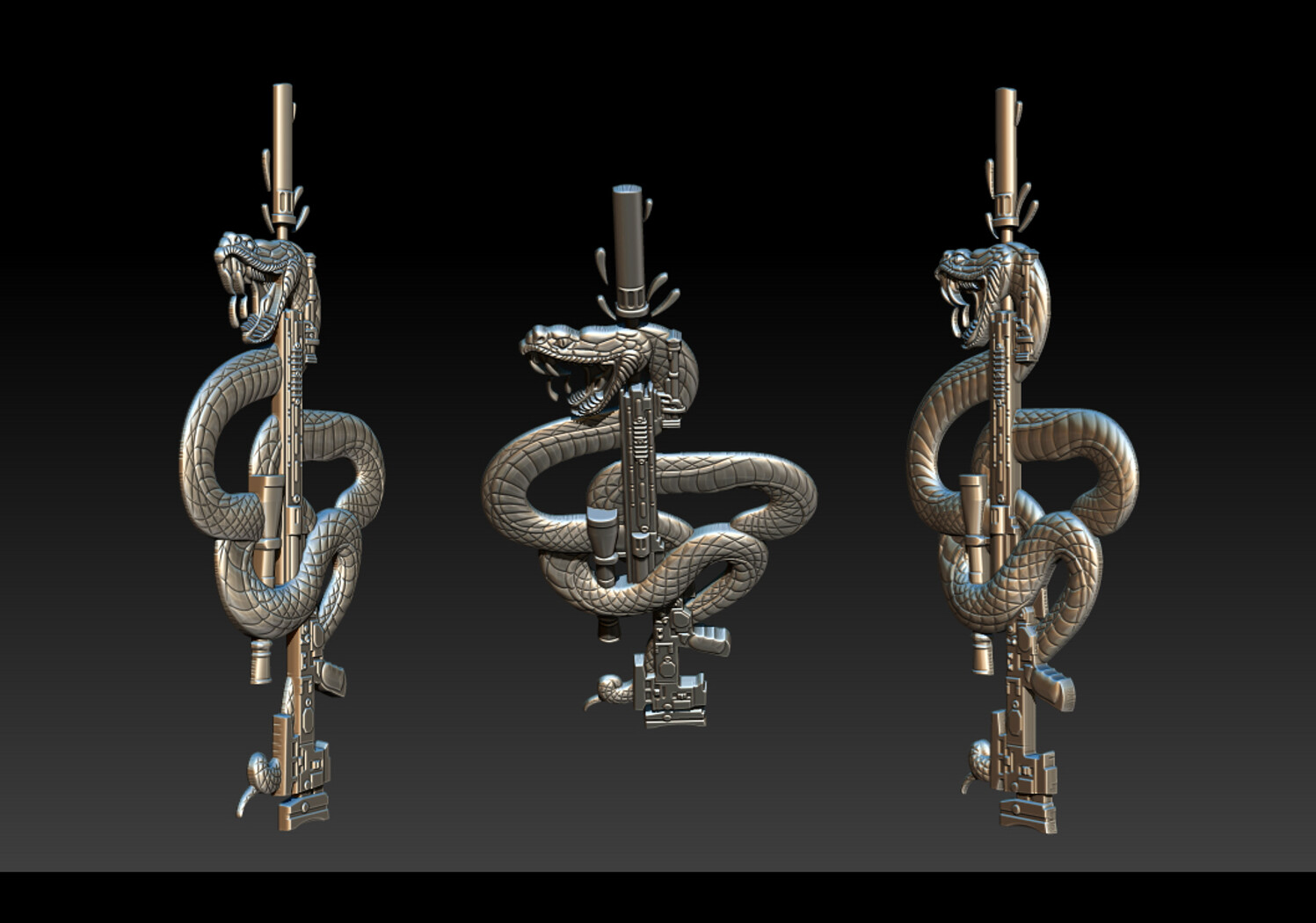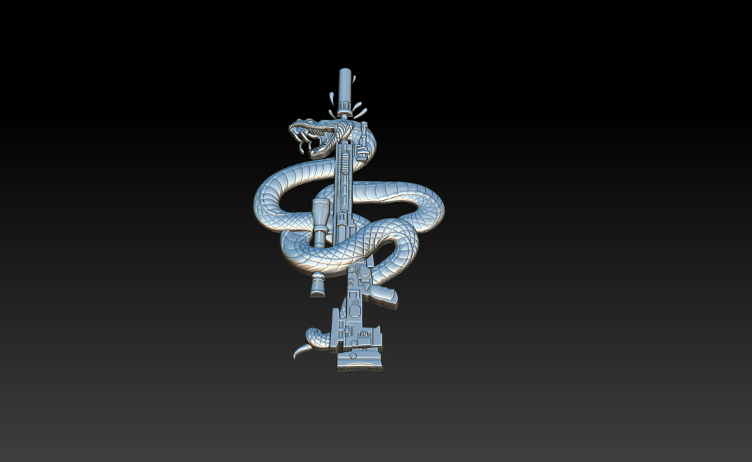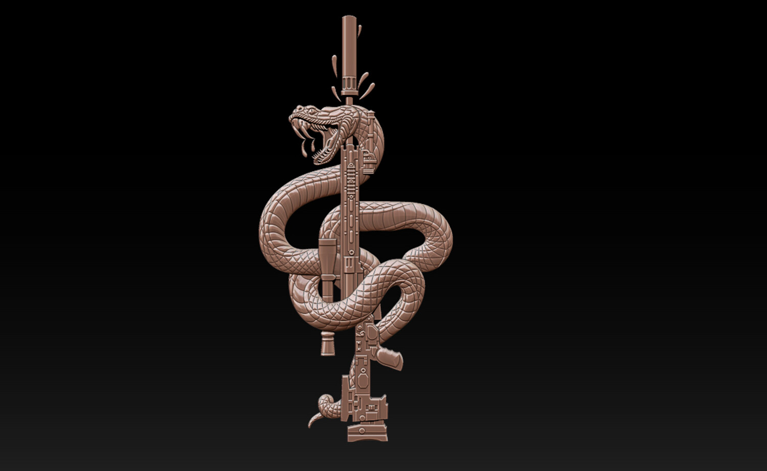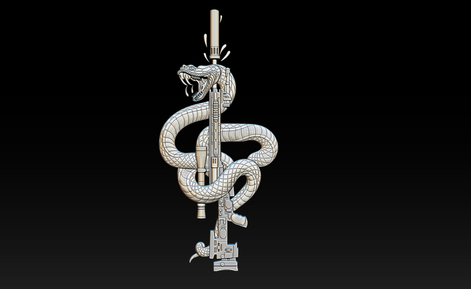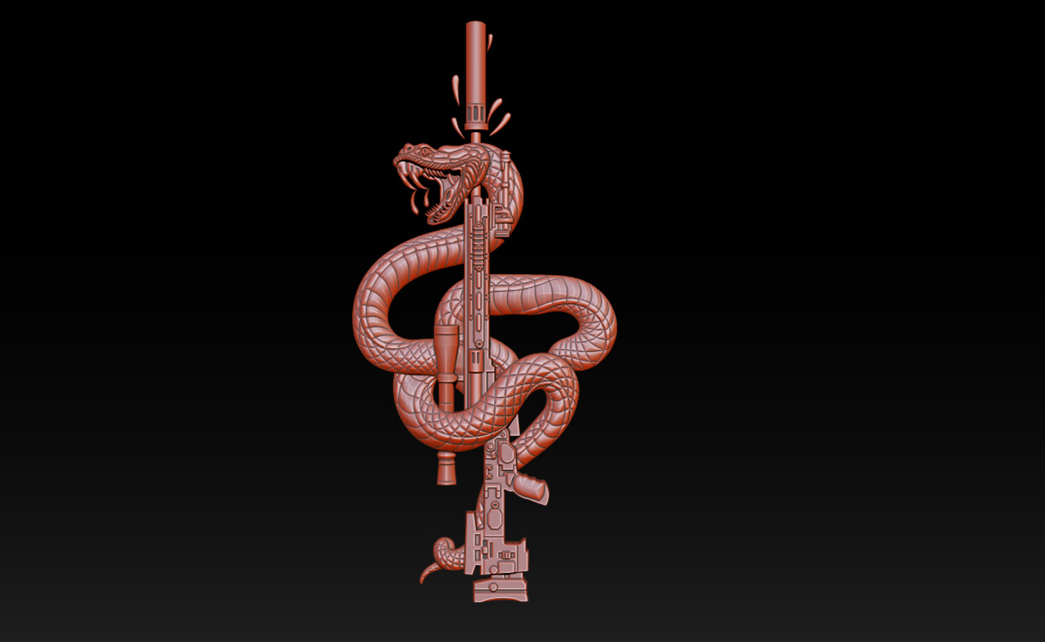 High-detail Snake Wrapped Rifle 3D bas-relief for CNC carving, 3D printing, and laser engraving. Includes STL, OBJ, ZTL. Clean mesh, ready for production. Digital download only. This is a high-detail 3D bas-relief model featuring a powerful design of a serpent wrapped around a rifle. The model is crafted with sharp scales, clean forms, and optimized depth—perfect for CNC routers, 3D printing, laser engraving, and decorative wall art or tactical-themed projects. Included formats: STL, OBJ, ZTL P:413669 V:410116