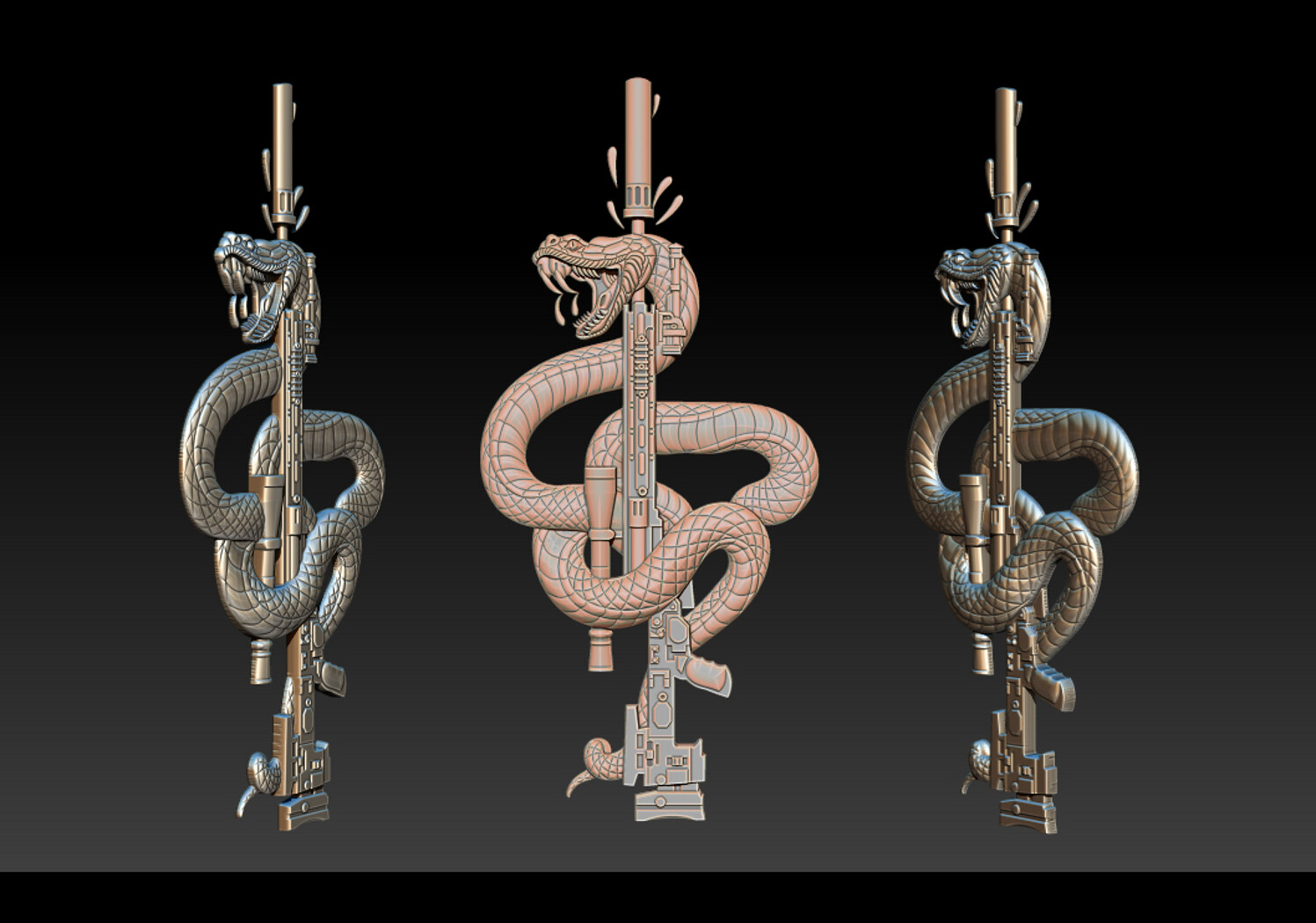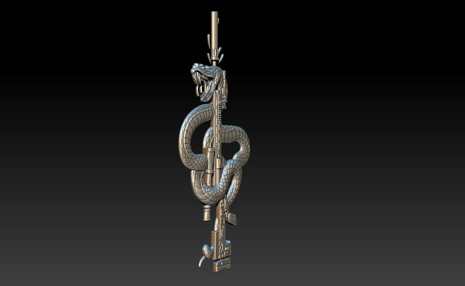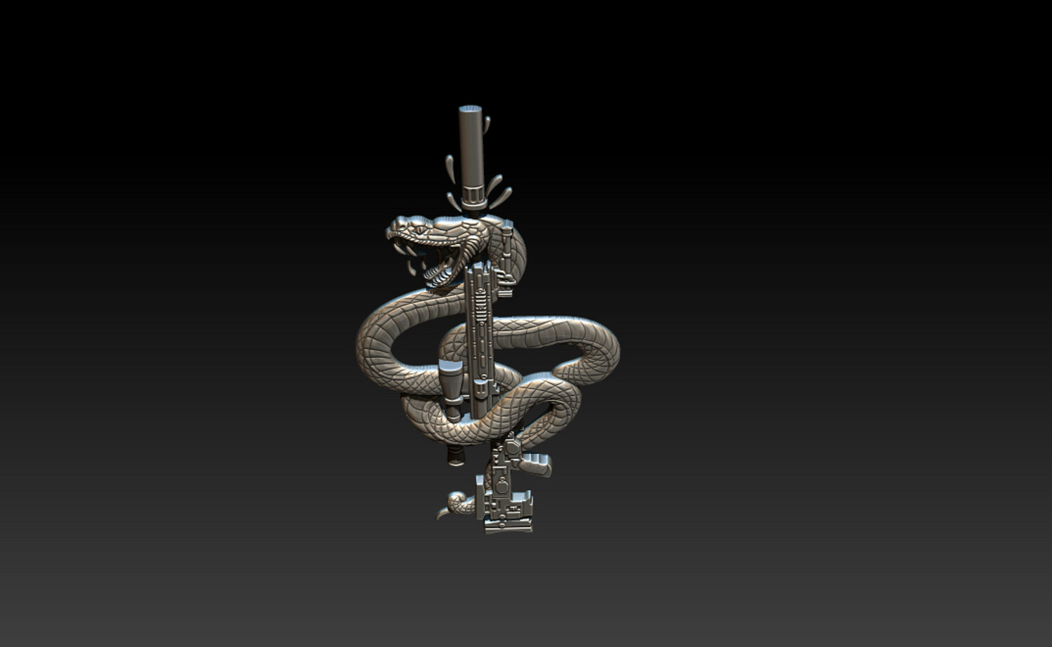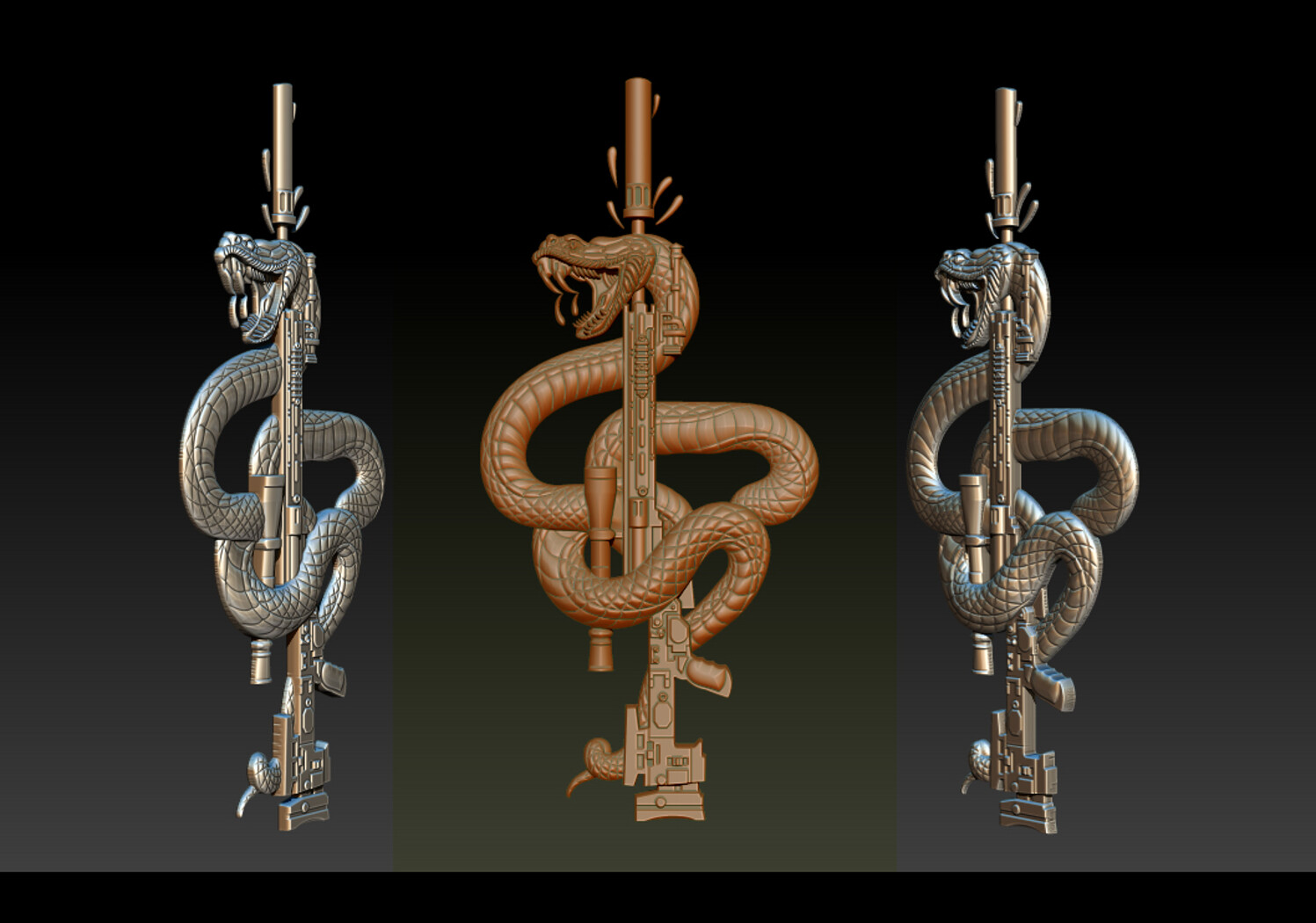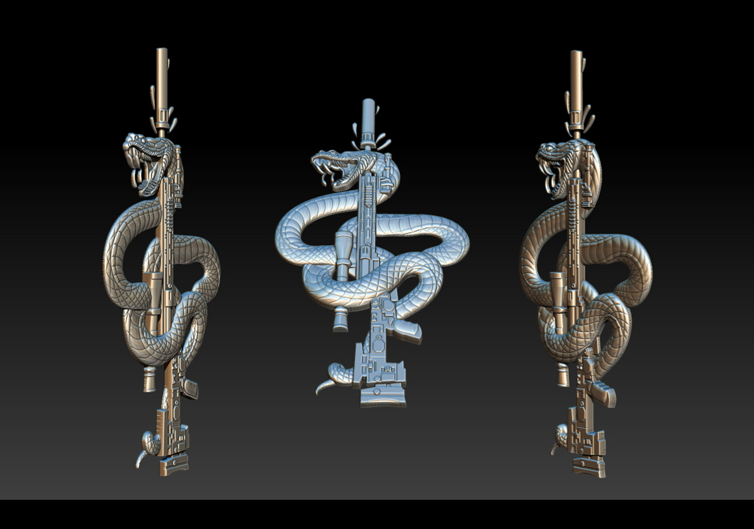High-detail Snake Wrapped Rifle 3D bas-relief for CNC carving, 3D printing, and laser engraving. Includes STL, OBJ, ZTL. Clean mesh, ready for production. Digital download only. This is a high-detail 3D bas-relief model featuring a powerful design of a serpent wrapped around a rifle. The model is crafted with sharp scales, clean forms, and optimized depth—perfect for CNC routers, 3D printing, laser engraving, and decorative wall art or tactical-themed projects. Included formats: STL, OBJ, ZTL P:413669 V:410116