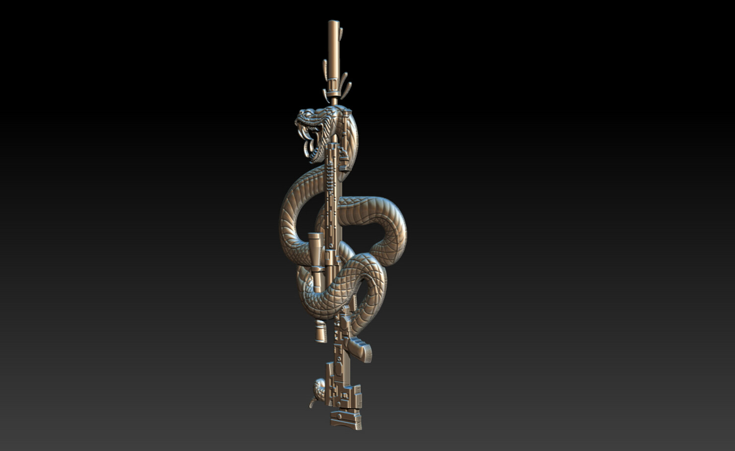 Snake Wrapped Rifle 3D Bas Relief - STL - OBJ - ZTL - CNC Carving