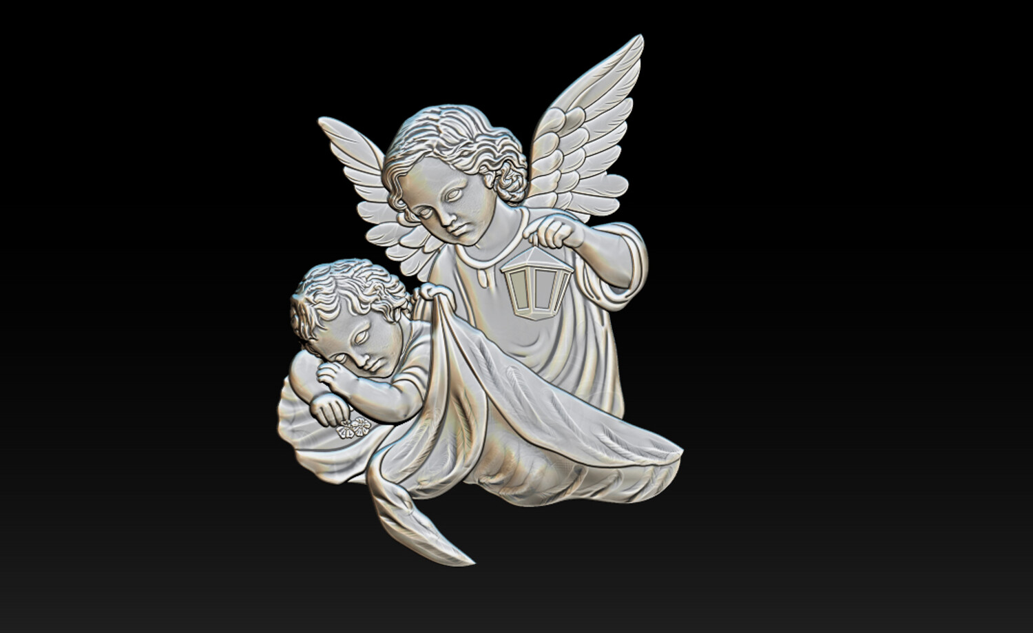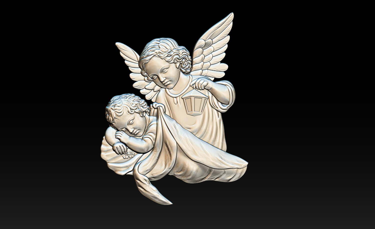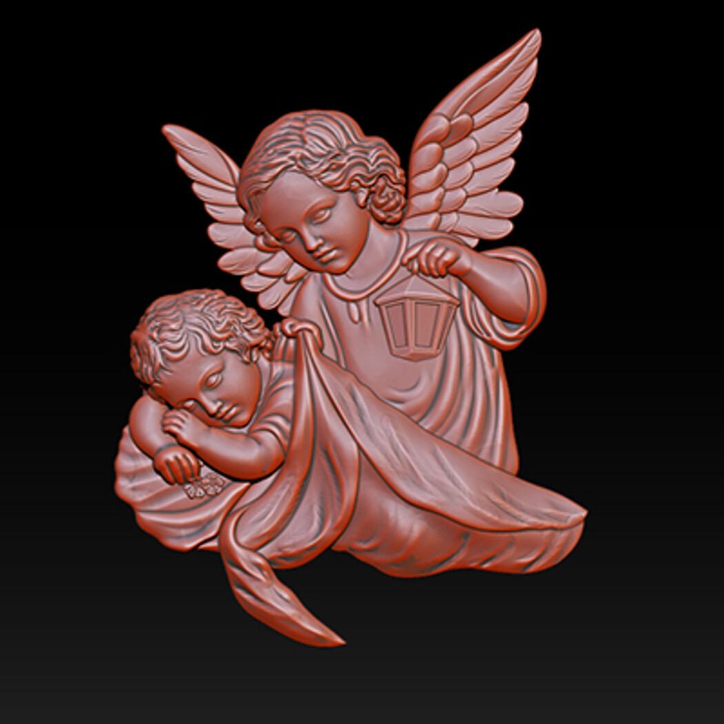 Guardian Angel with Child CNC Relief 3D Model STL OBJ ZTL Product Description This Guardian Angel with Child CNC Relief 3D Model is a beautifully detailed 2.5D bas-relief depicting a gentle angel protecting a sleeping child while holding a lantern, symbolizing care, guidance, faith, and protection. The soft facial expressions, flowing drapery, and finely sculpted wings make this model ideal for religious CNC carvings, memorial art, wall decorations, and spiritual interior projects. Optimized relief depth ensures smooth toolpaths and excellent carving results on CNC routers. Perfect for church decor, memorial plaques, home altars, wall panels, and fine wood or stone carving.
