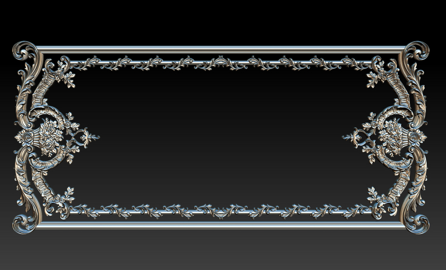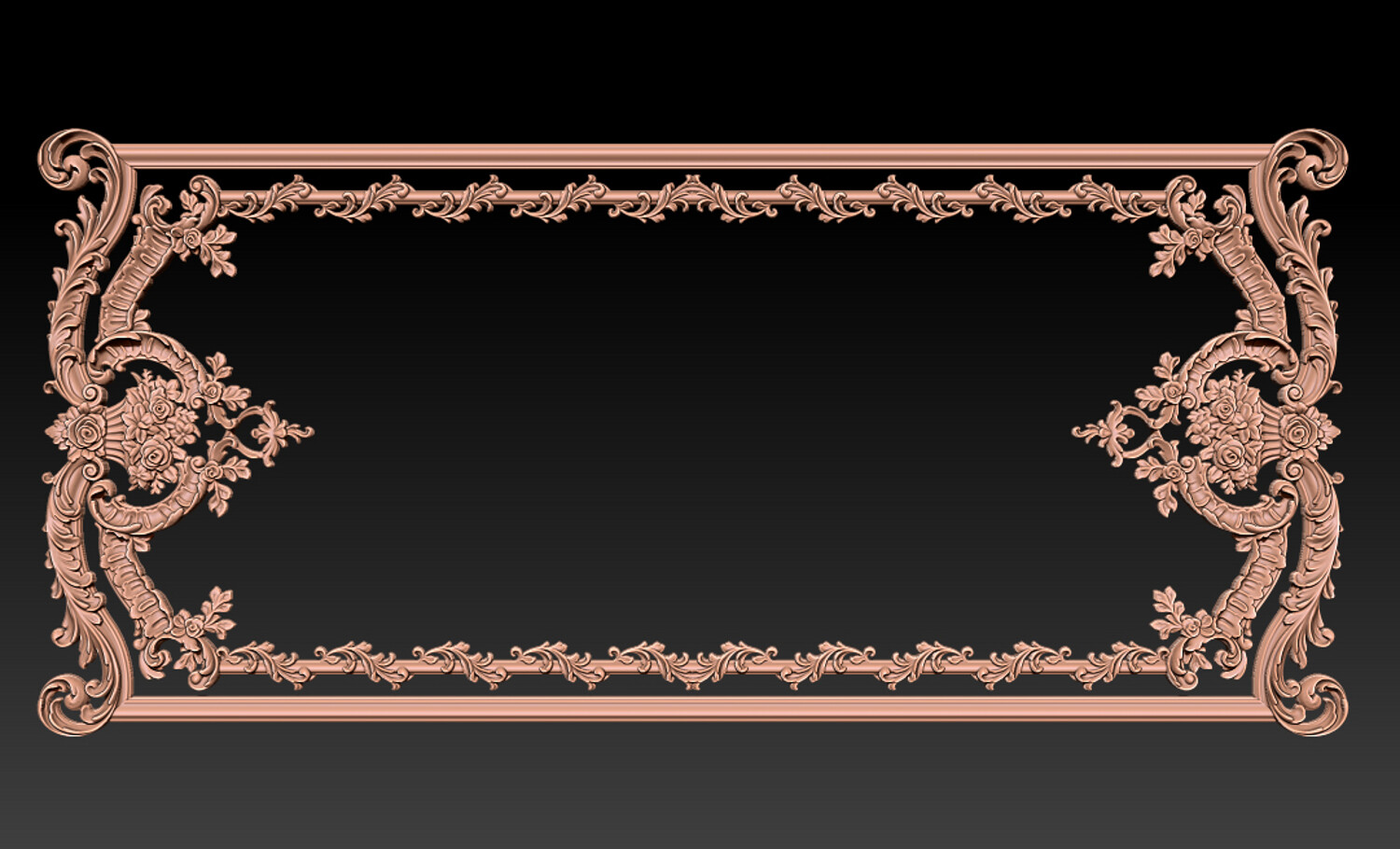 Ornamental Relief CNC Model for Wooden Doors and Wall Panels This Ornamental Relief features a refined European classic / Baroque design, with a symmetrical layout, flowing scrolls, and richly detailed floral elements. The relief depth is carefully balanced to ensure clean carving results and a strong three-dimensional appearance.