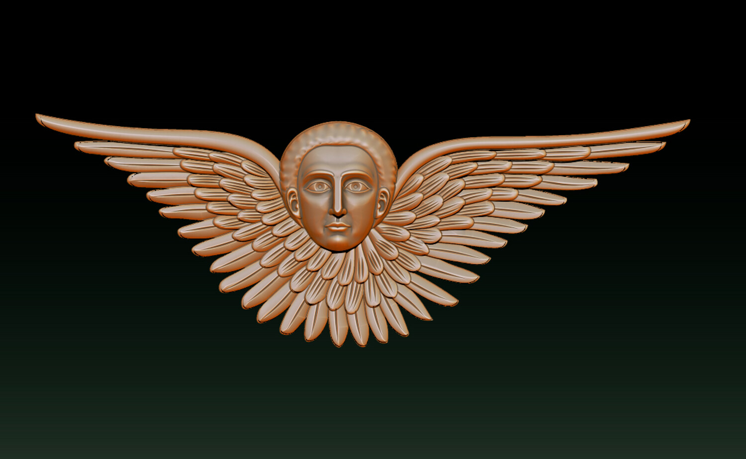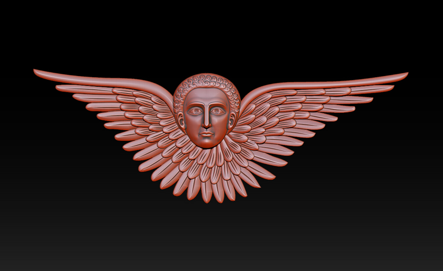 Celestial Angel Wings Relief – 3D Model for CNC & Jewelry Design This Celestial Angel Wings Relief 3D Model is inspired by classical sacred art, symbolizing divine protection, purity, and heavenly beauty. The design features a peaceful angelic face surrounded by layered feathers that radiate like a celestial halo, while large symmetrical wings extend gracefully on both sides. The balanced composition creates a powerful spiritual symbol often seen in classical churches and sacred artworks. Every element of this model is carefully sculpted: Elegant angel face with calm expression Large symmetrical wings with detailed feather layers Decorative feather halo surrounding the face Smooth relief depth designed for clear carving Balanced artistic proportions This combination of classical design and modern digital sculpting makes the model ideal for both artistic and spiritual projects.