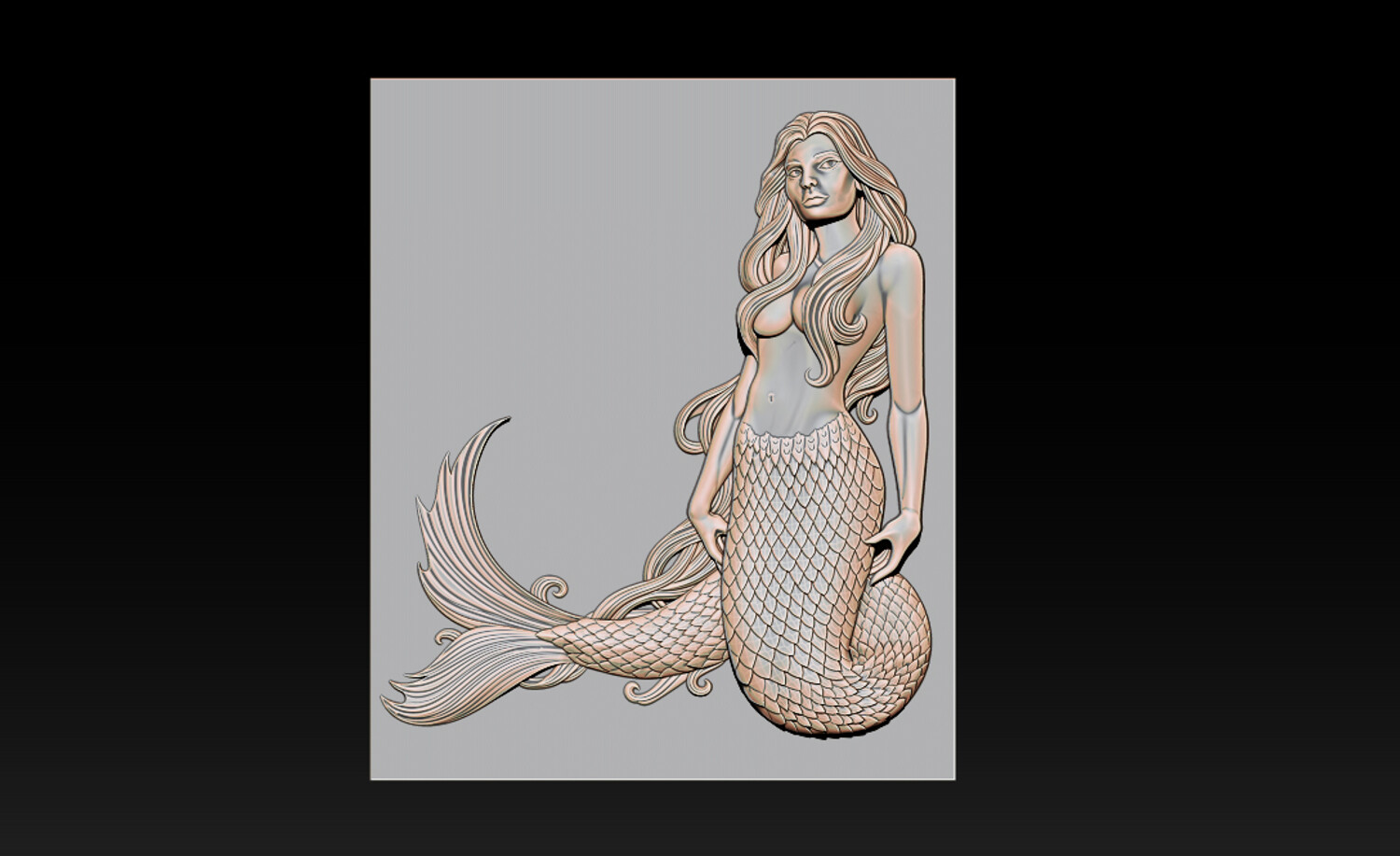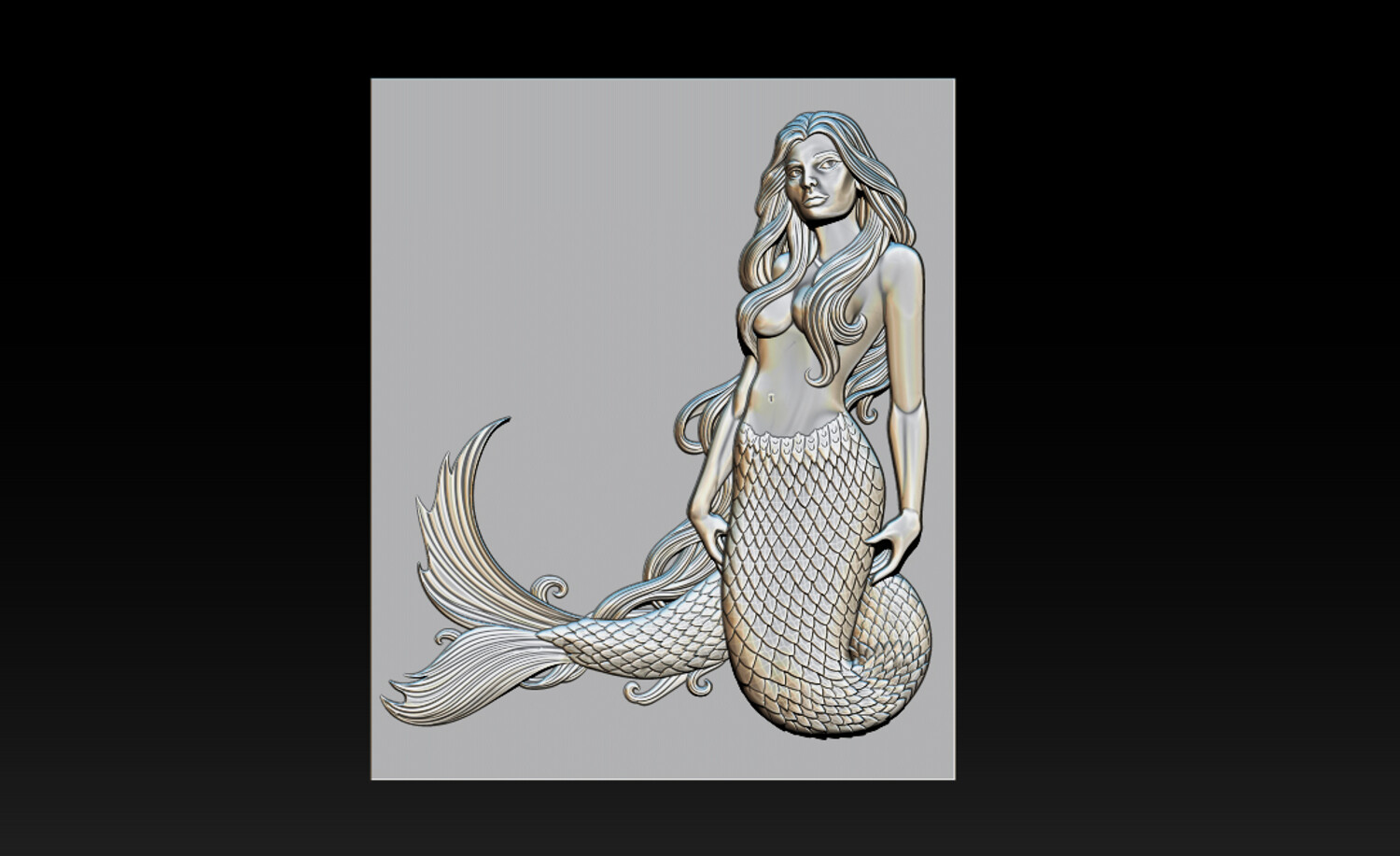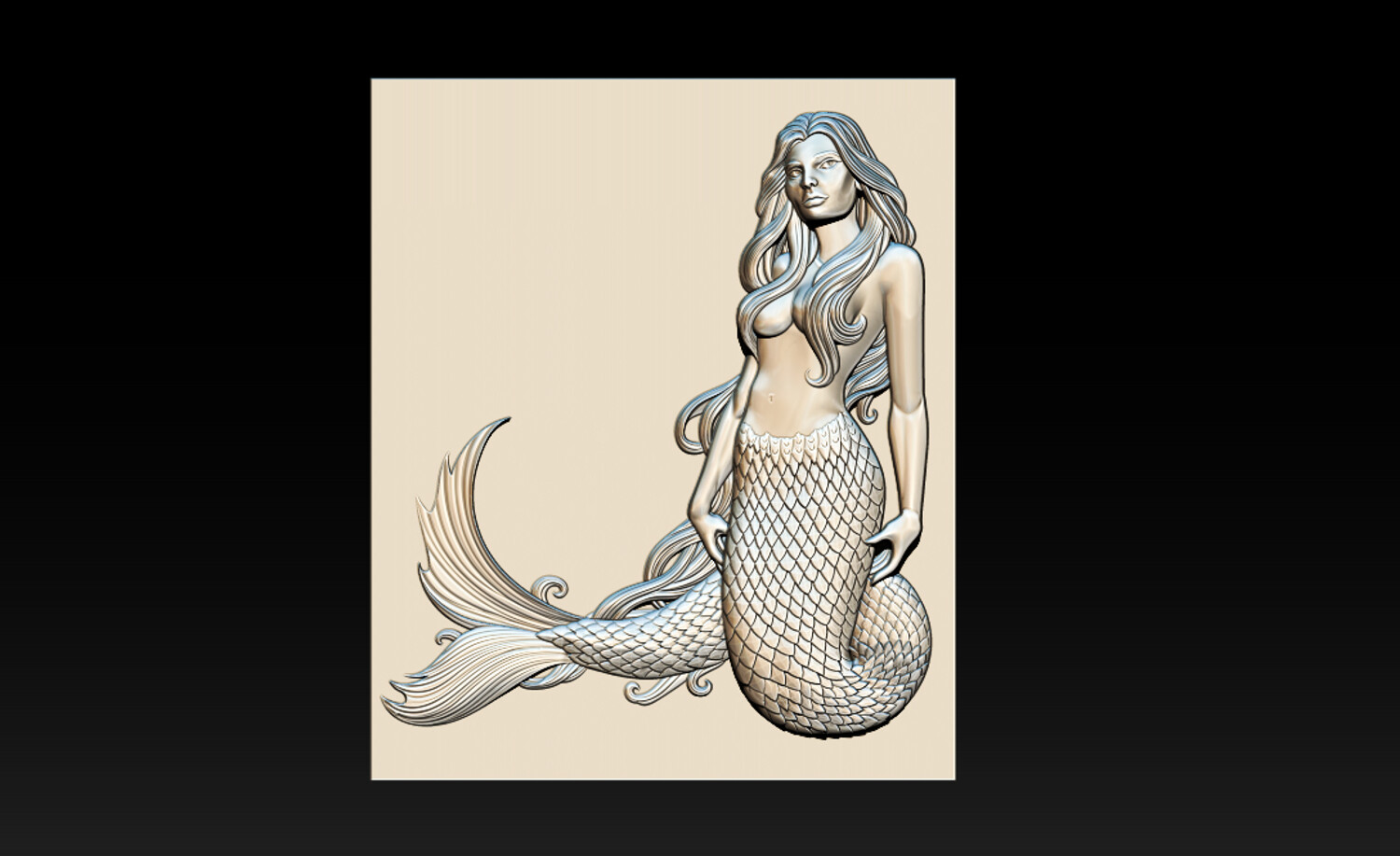 Mermaid Relief 2.5D Model for CNC & 3D Carving This Mermaid Relief 2.5D model features an elegant and artistic female mermaid with flowing hair, detailed fish scales, and a dynamic tail design. The model is carefully sculpted for high-quality CNC carving, ensuring smooth depth transitions and clean details even on wood, MDF, stone, or resin.