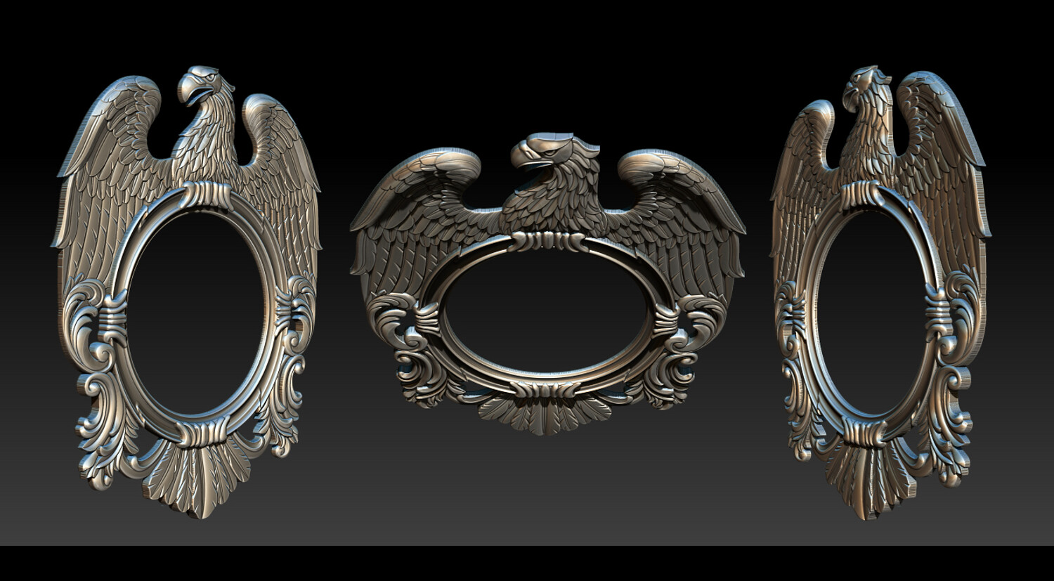 “High-detail Eagle Mirror Frame 3D model for CNC carving and 3D printing. Includes STL, OBJ, and ZTL. Perfect for wooden mirrors, wall clocks, decorative wall art, and luxury home décor. Sharp details, clean mesh, and production-ready for professionals and hobby makers.”