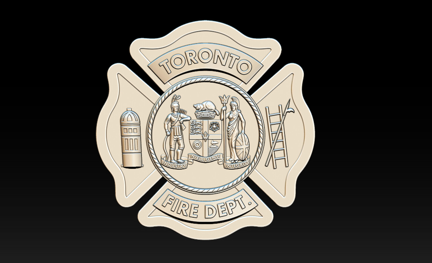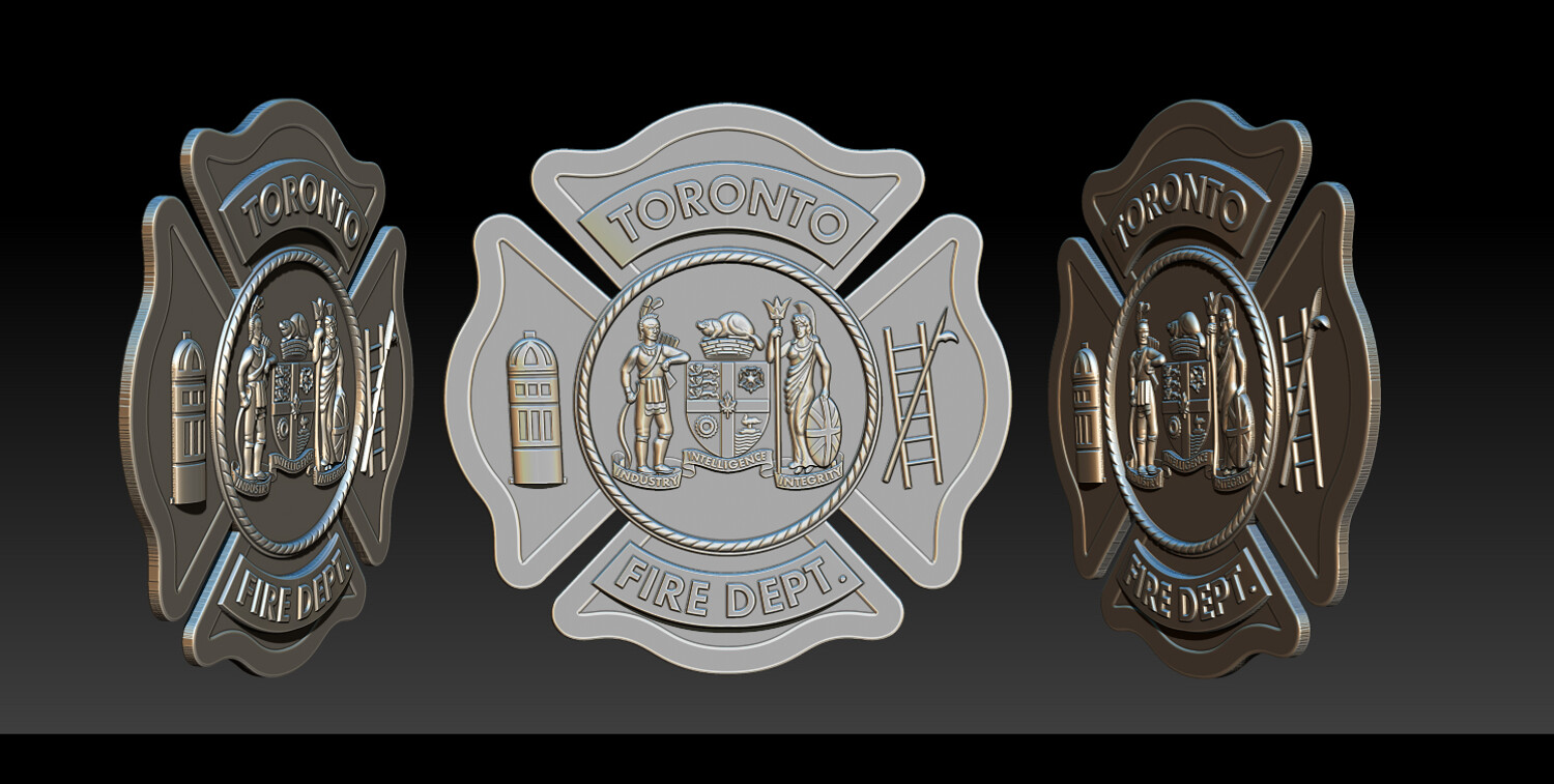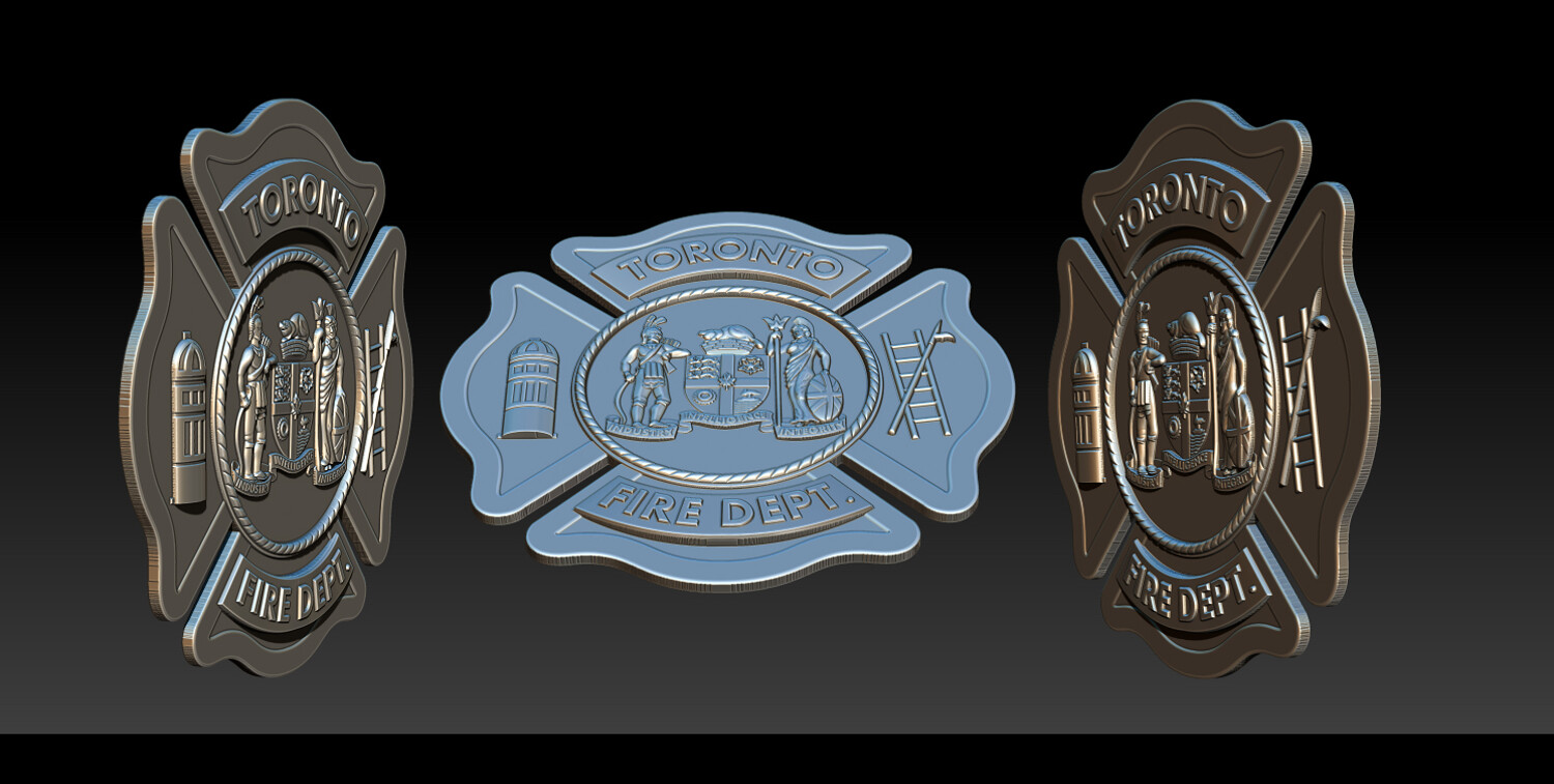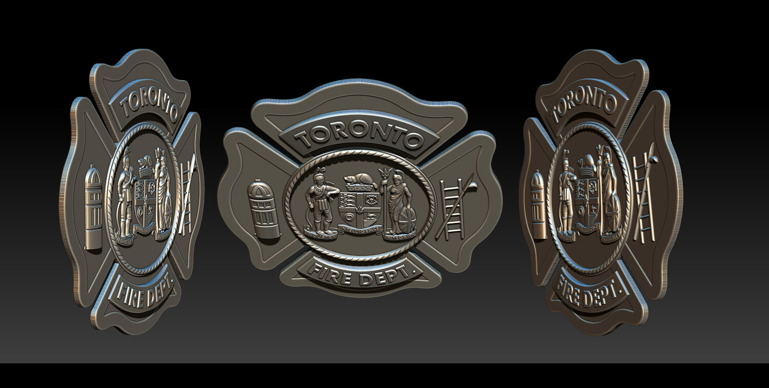 TORONTO FIRE DEPT. RELIEF MODEL CNC Carving - 3D Printing - Laser Engraving / Fiber Laser Ready This Toronto Fire Dept. relief model is a production-ready emblem design, suitable for CNC carving, 3D printing, and laser engraving (fiber & CO?). The model is carefully structured to ensure clean depth transitions, readable details, and real-world manufacturability, making it ideal for actual badge and emblem production, not just visualization.