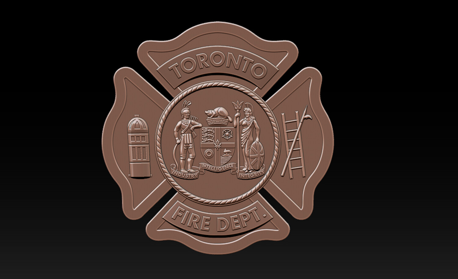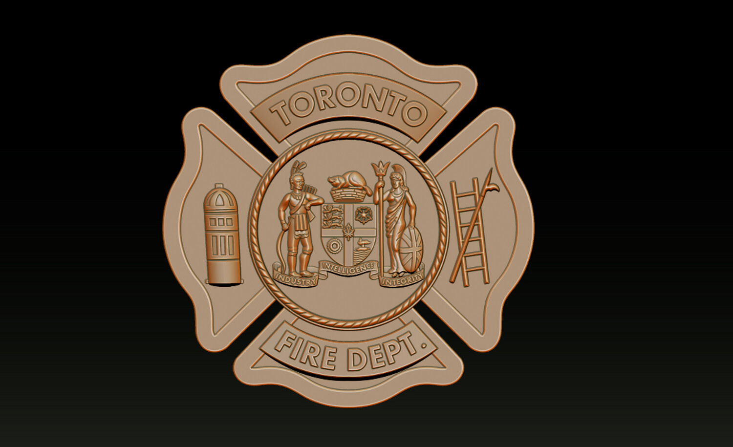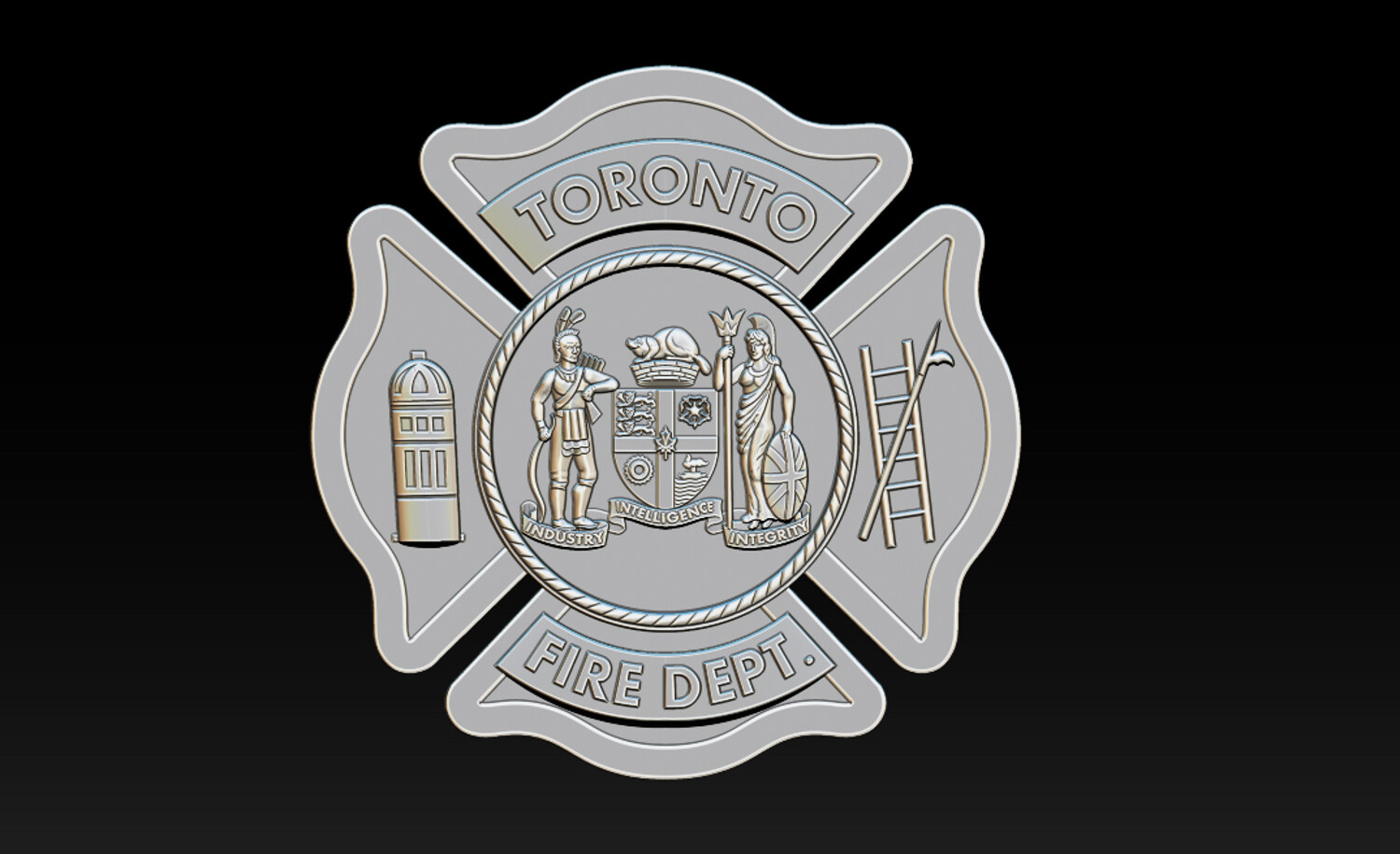 TORONTO FIRE DEPT. RELIEF MODEL CNC Carving - 3D Printing - Laser Engraving / Fiber Laser Ready This Toronto Fire Dept. relief model is a production-ready emblem design, suitable for CNC carving, 3D printing, and laser engraving (fiber & CO?). The model is carefully structured to ensure clean depth transitions, readable details, and real-world manufacturability, making it ideal for actual badge and emblem production, not just visualization.